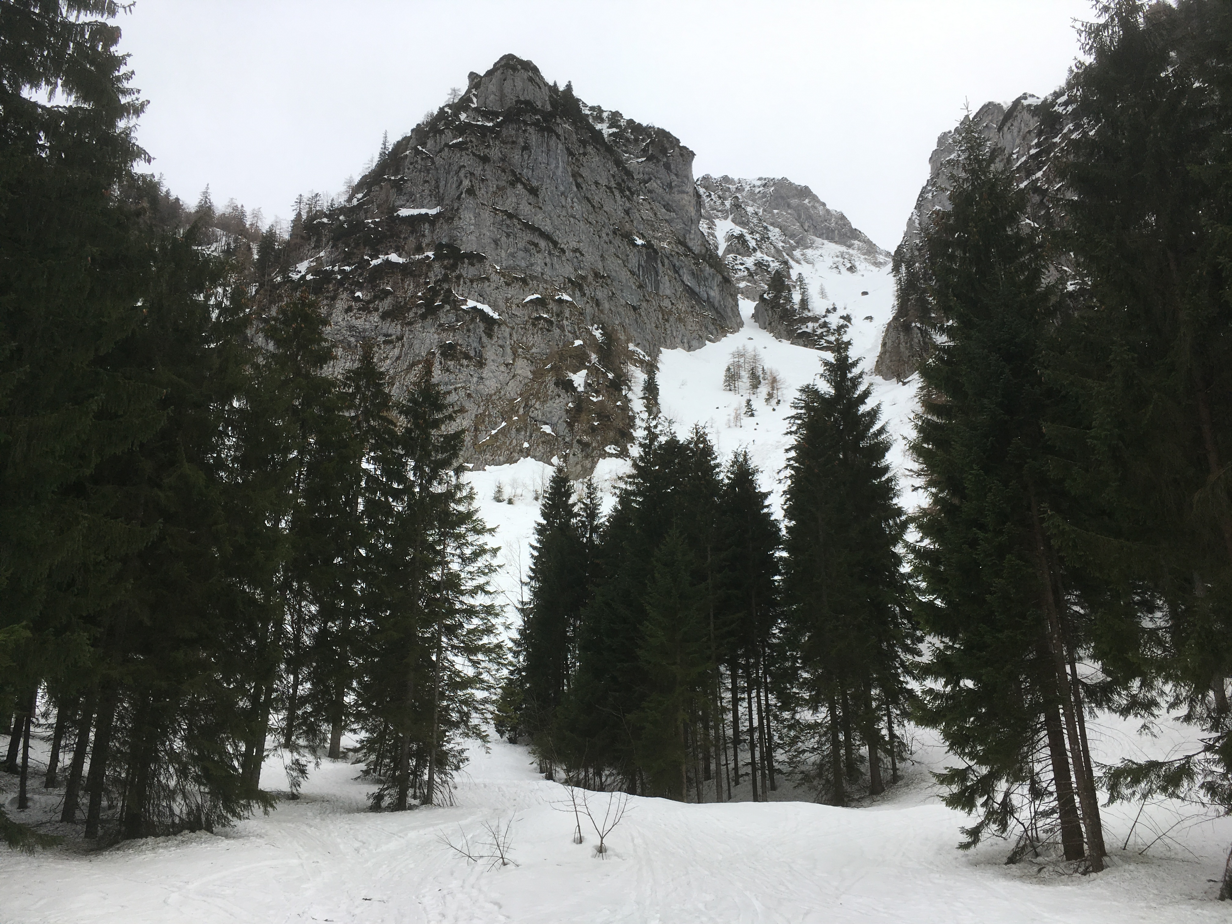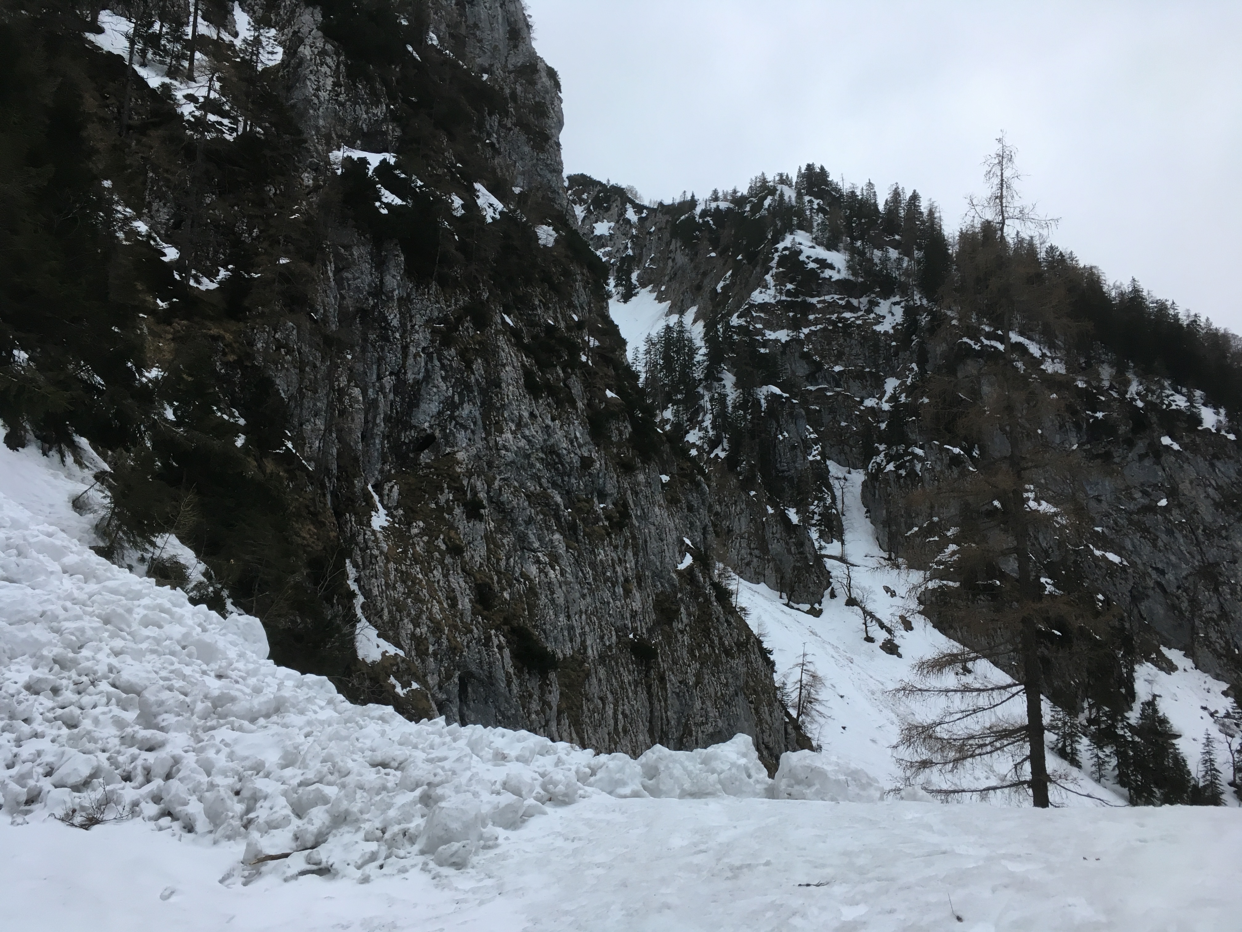 Gefahreneinschätzung: mittel wegen potentieller Gleitschneelawinen, Alternative der Roßgasse an sich hoch, aber stark eingefahren