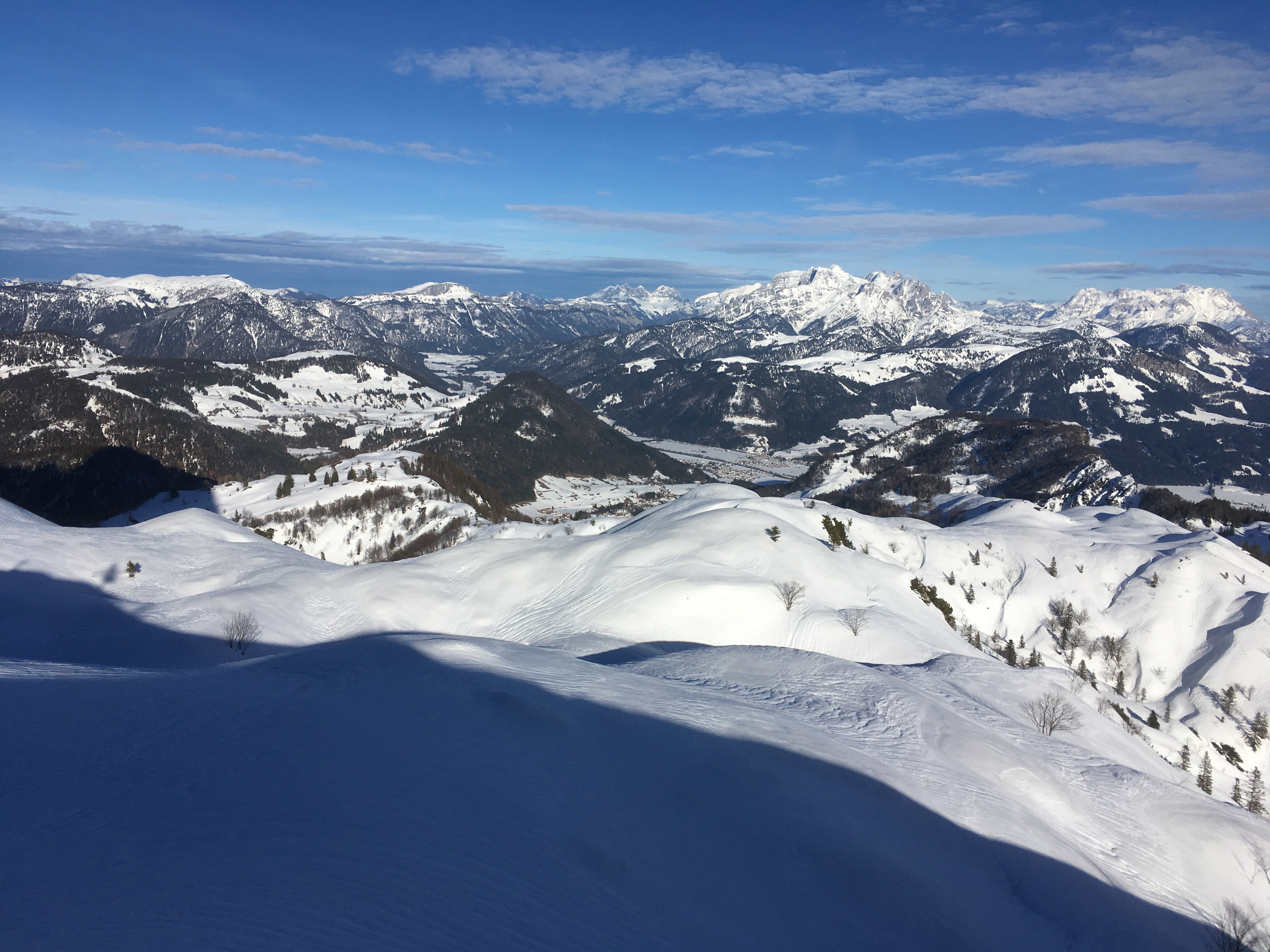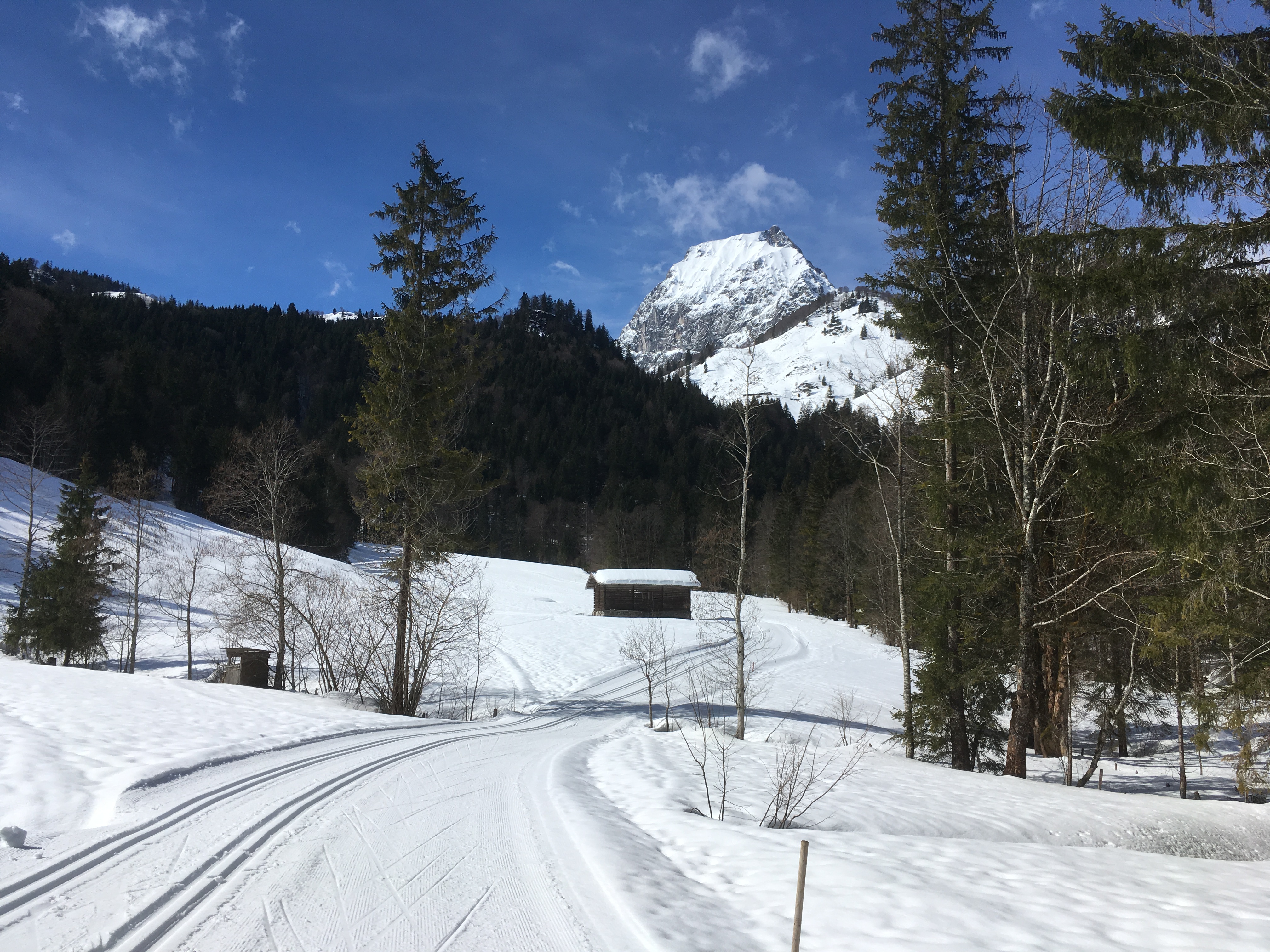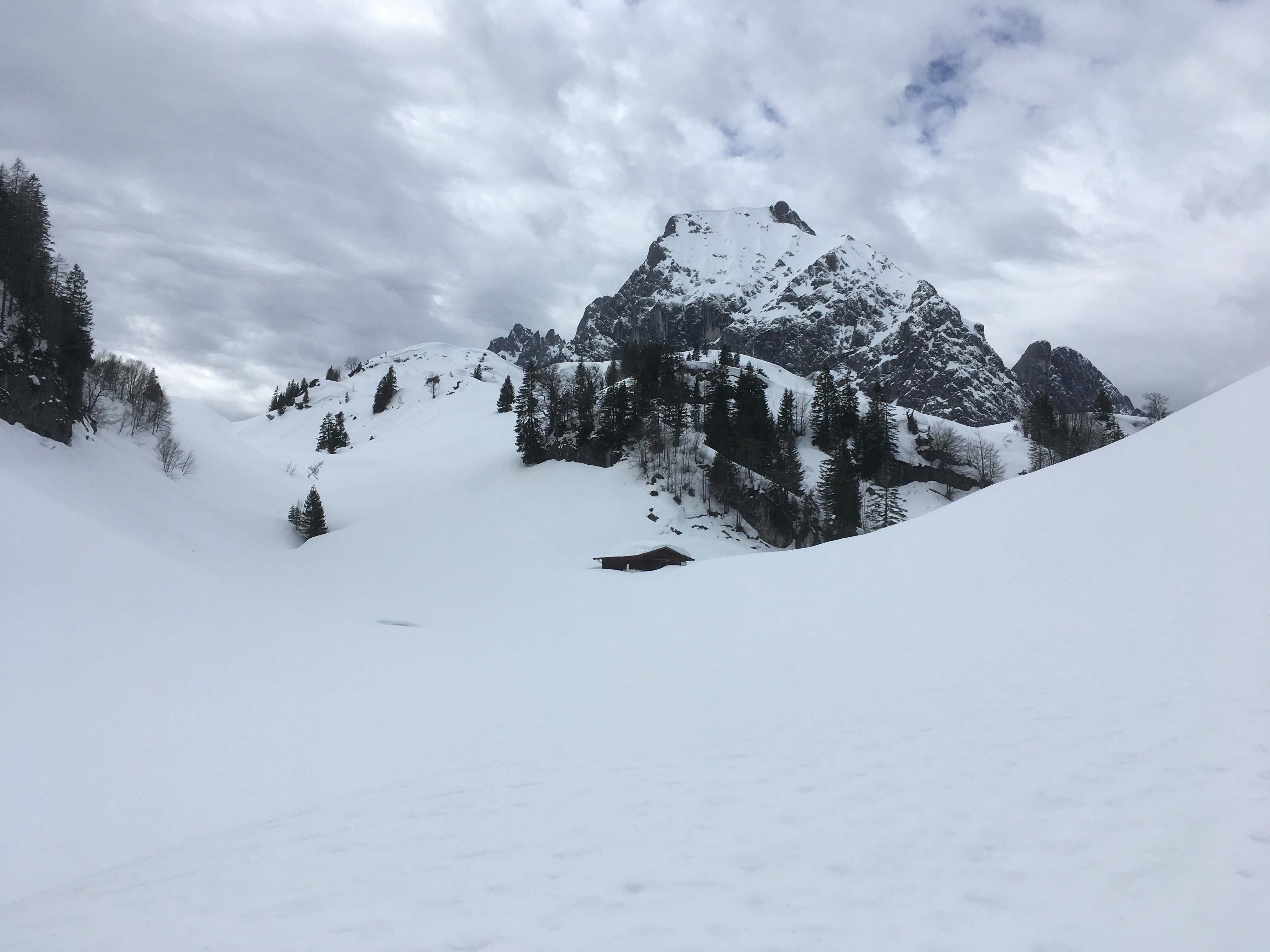 Sonstiges: Eine Tour aus dem Rother Skiführer, die ich mit gewissen Ab- und Umwegen nachging. Besser genau auf der vorgeschlagenen Route über die Hacker- und die Einödalm bleiben. Die Route zieht sich für die relativ geringe Zahl an Höhenmetern doch etwas. Die Schneelage ist in der Gegend auch unterhalb von 1.000 m noch erstaunlich gut. Am Samstag waren zwischen Kössen und Gasteig auch die Loipen noch gespurt, in Gasteig ist die auch recht ansprechend. Landschaftlich ist es v.a. im oberen Teil eine äußerst ansprechende Tour.