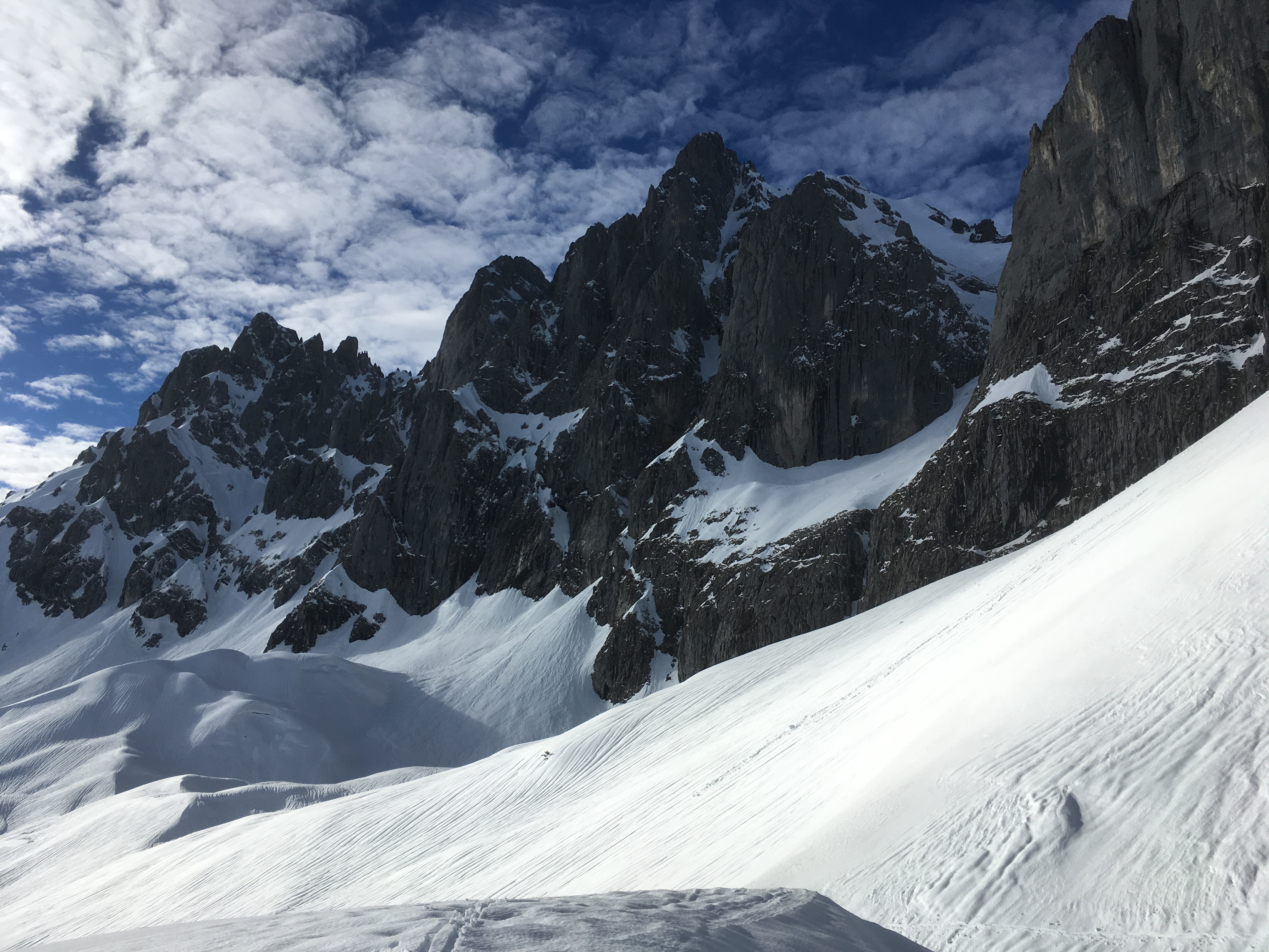 Prognose: geht noch ein bißchen, die Schneebeschaffenheit wird aber nur besser, wenn der Schnee wärmebedingt abhockt und dann nach kalten Nächten firnartig wird (oder es auch auf dieser Höhe nochmals trockenen Neuschnee gibt)
