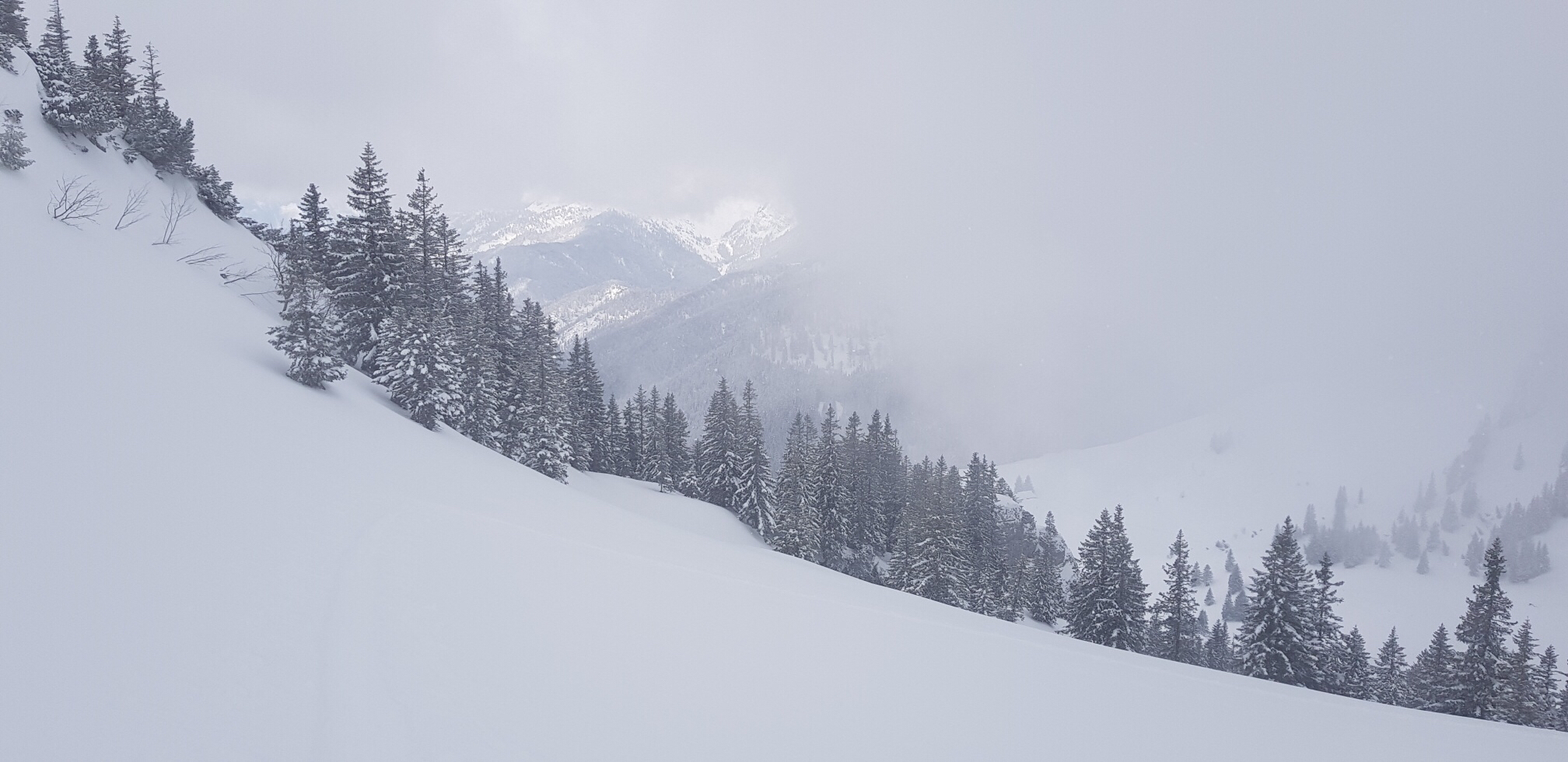 Tourenverhältnisse: Über Schönfeldalmen zum Gipfel, inzwischen Schneefall und Nebel.