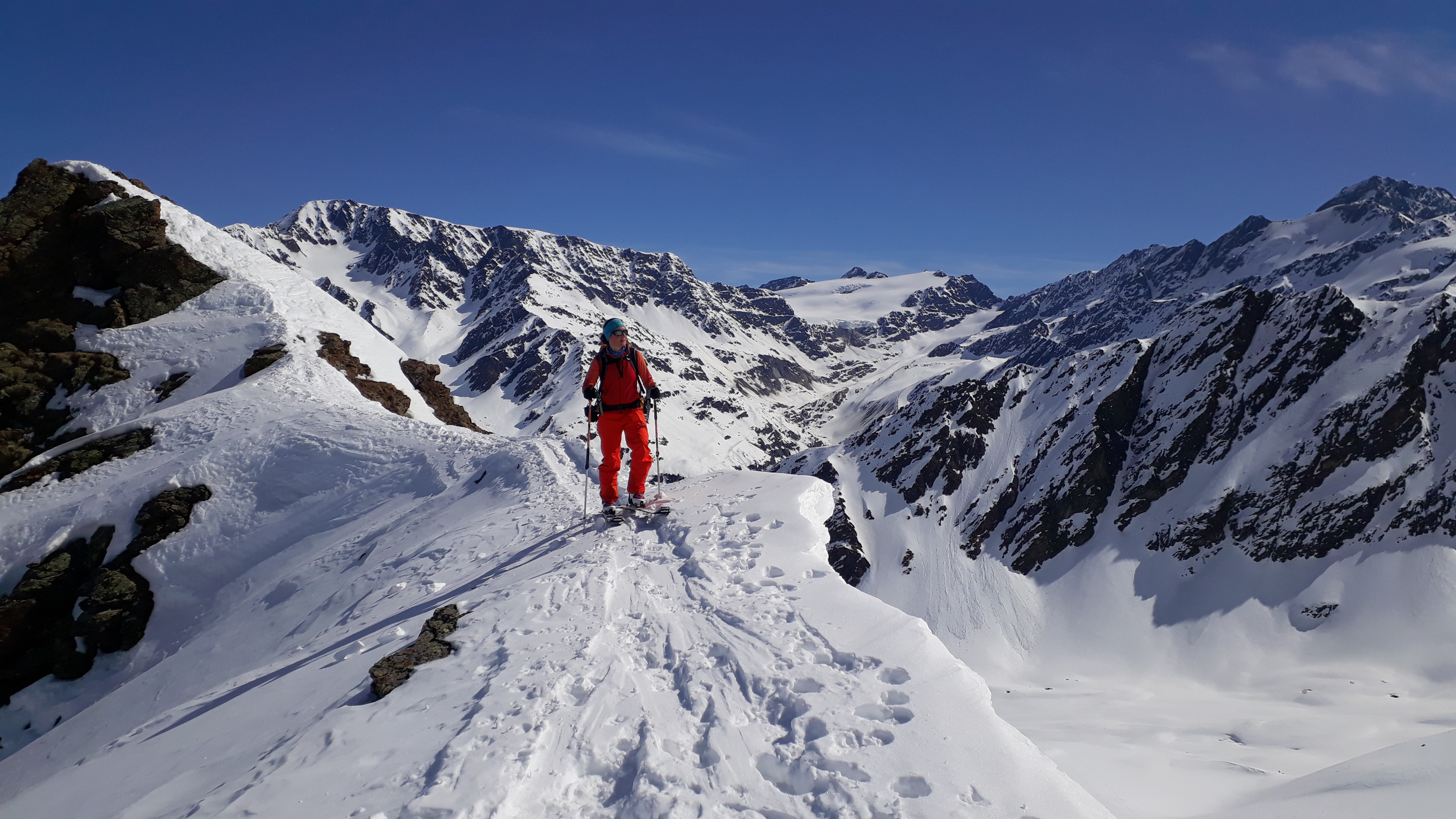 Sonstiges: Aufstieg auf Tiergartenspitze über NO Grat, Abfahrt breiter Nordhang bis ins Kar. Dann Aufstieg zur Mitterlochspitze. Ski über den Grat mit zum Gipfel genommen und Abfahrt vom Grat kurz unterhalb des Gipfels durch die Nordflanke