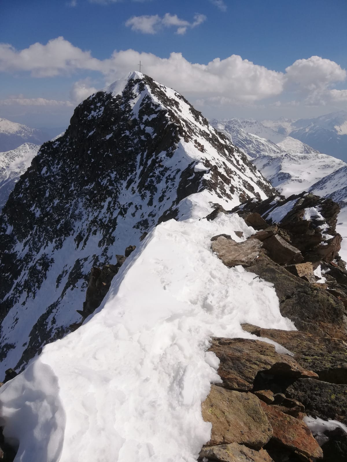 Weil ich mangels Karte beim Gipfelanstieg den Gipfel nicht als solchen erkannt habe und nebenan ein höherer Gipfel mit großem Kreuz steht, dachte ich, dieses sei die Saldurspitze und habe deshalb "aus Versehen" auch noch die benachbarte Lagaunspitze erstiegen (Kletterei Grad I, ca. 20min. einfacher Weg).