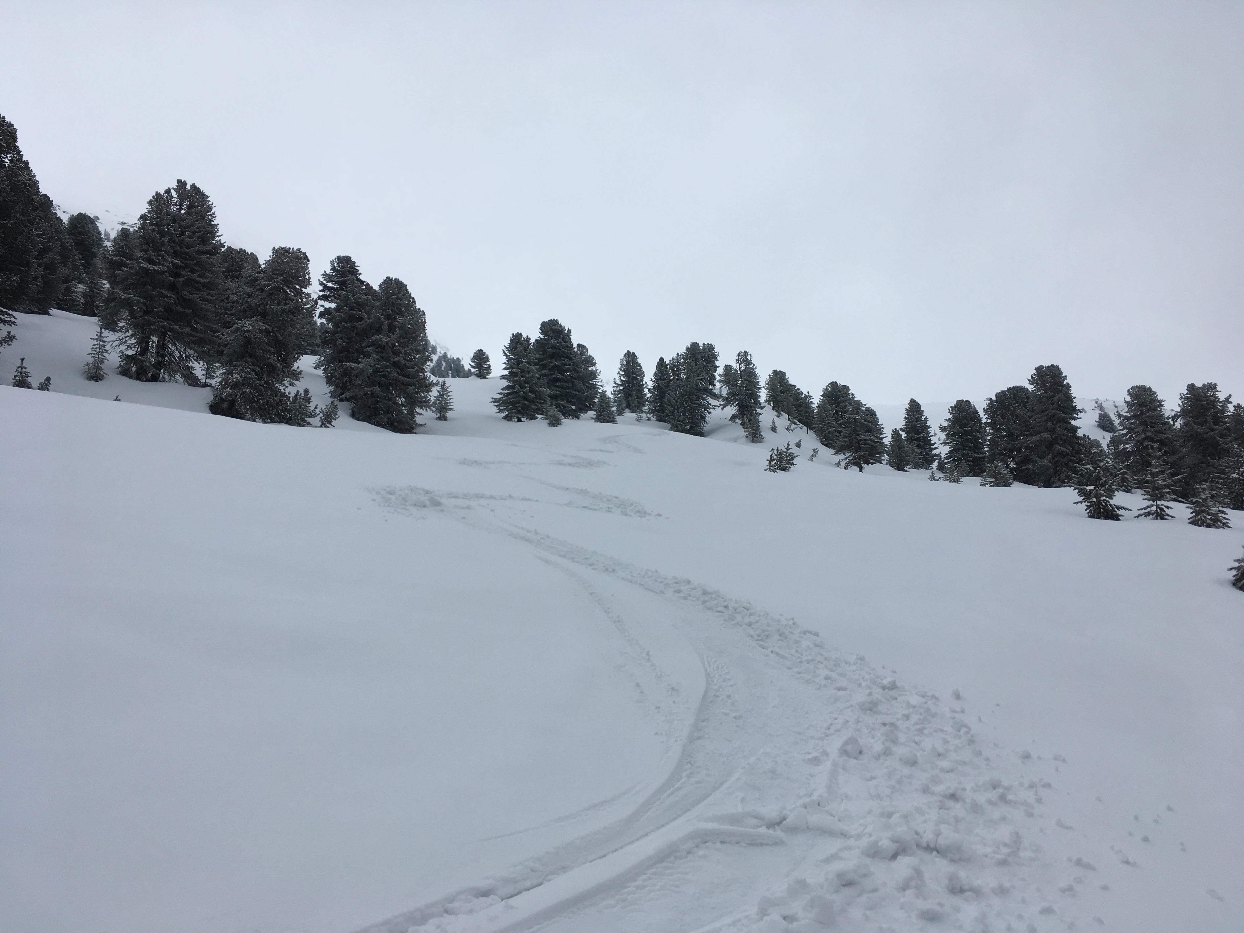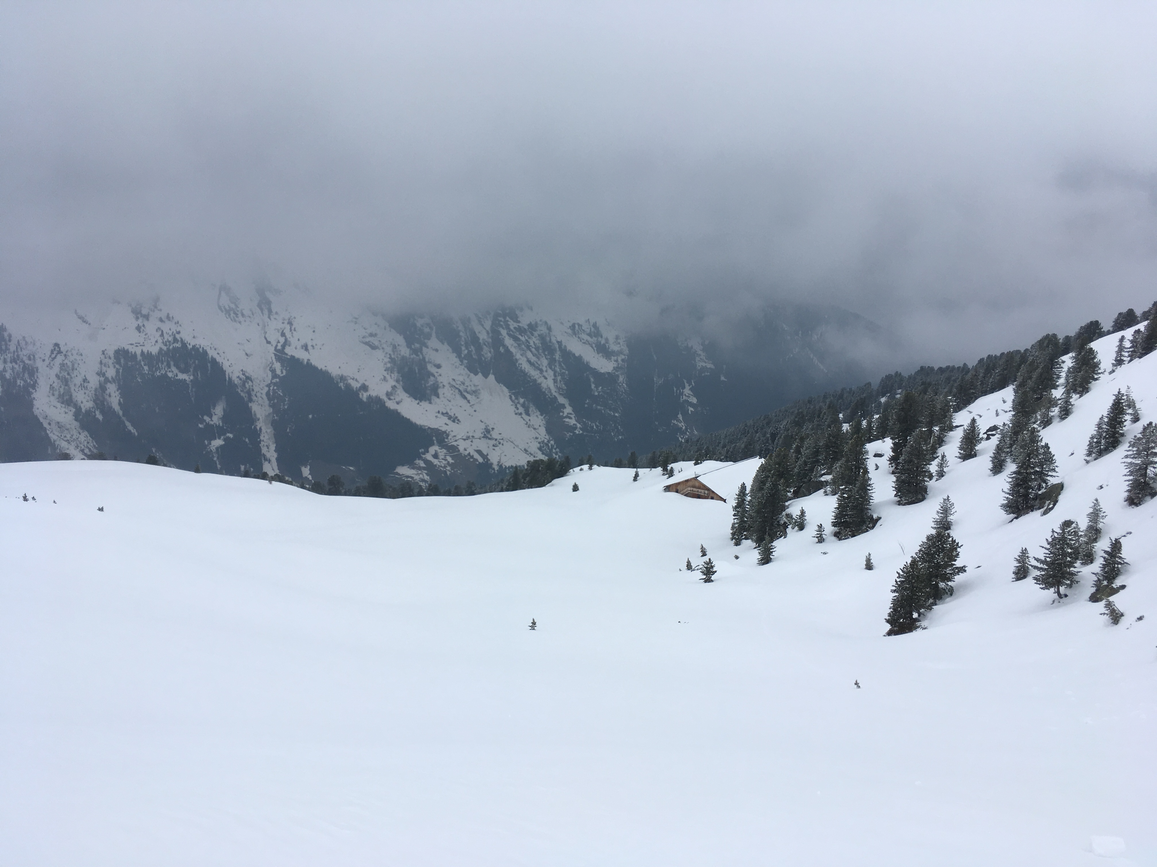 Beim Poversalm-Niederleger trifft einen der Schlag - selbst auf 1.600 m wenig Schnee, und das obwohl ringsherum auf der Höhenlage sonst alles weiß ist - es ging heute aber noch gut hoch wie runter: