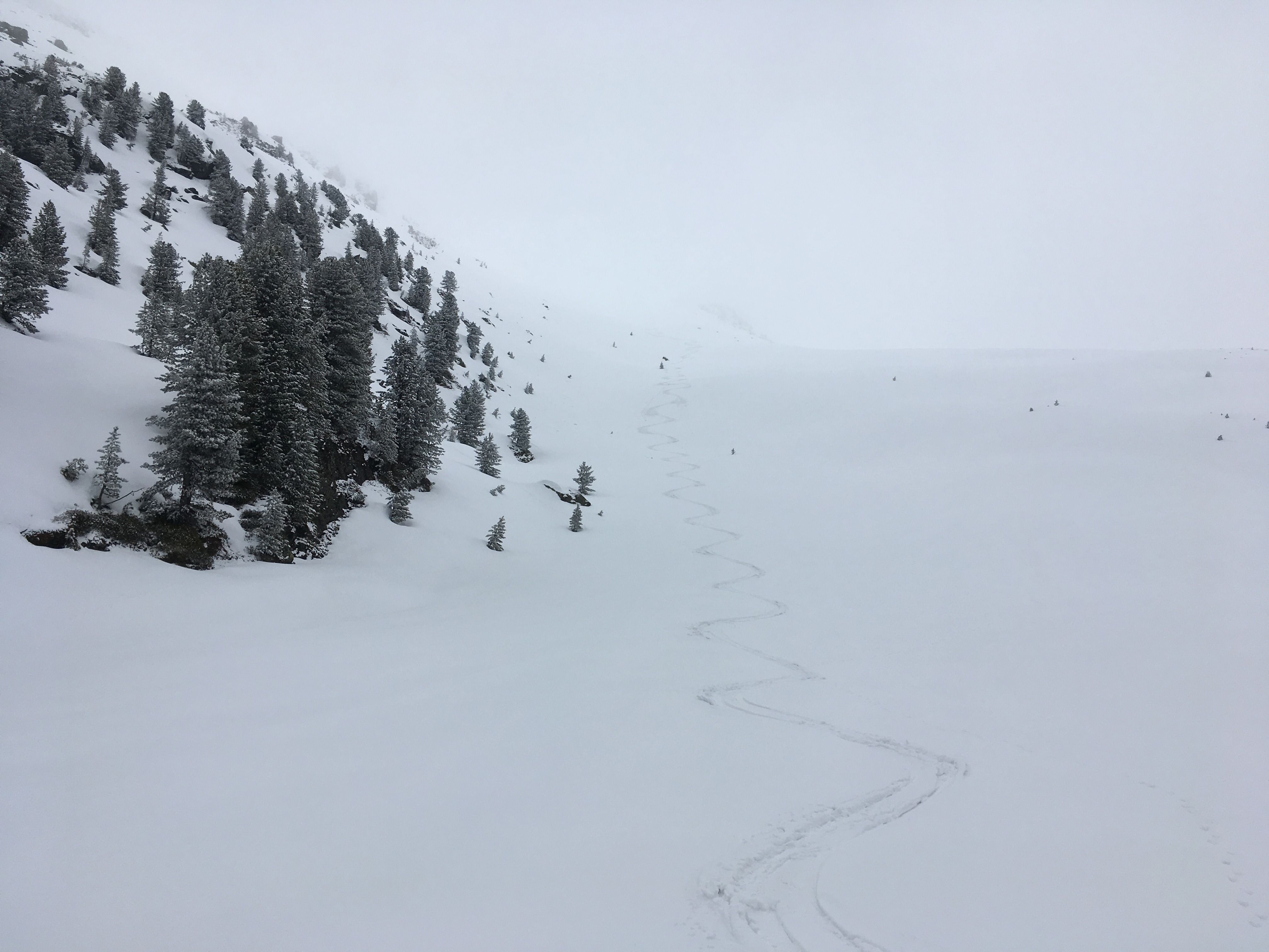 Sonstiges: Heute eine völli einsame Tour, aber leider oberhalb ca. 2.300 m dichter Nebel (für alle, die sich wundern wegen der komischen Spur: totales White-Out), Abfahrt unterhalb des Nebels sehr gut. Wegen der Hatscherei am Anfang ist offenbar kaum mehr jemand unterwegs.