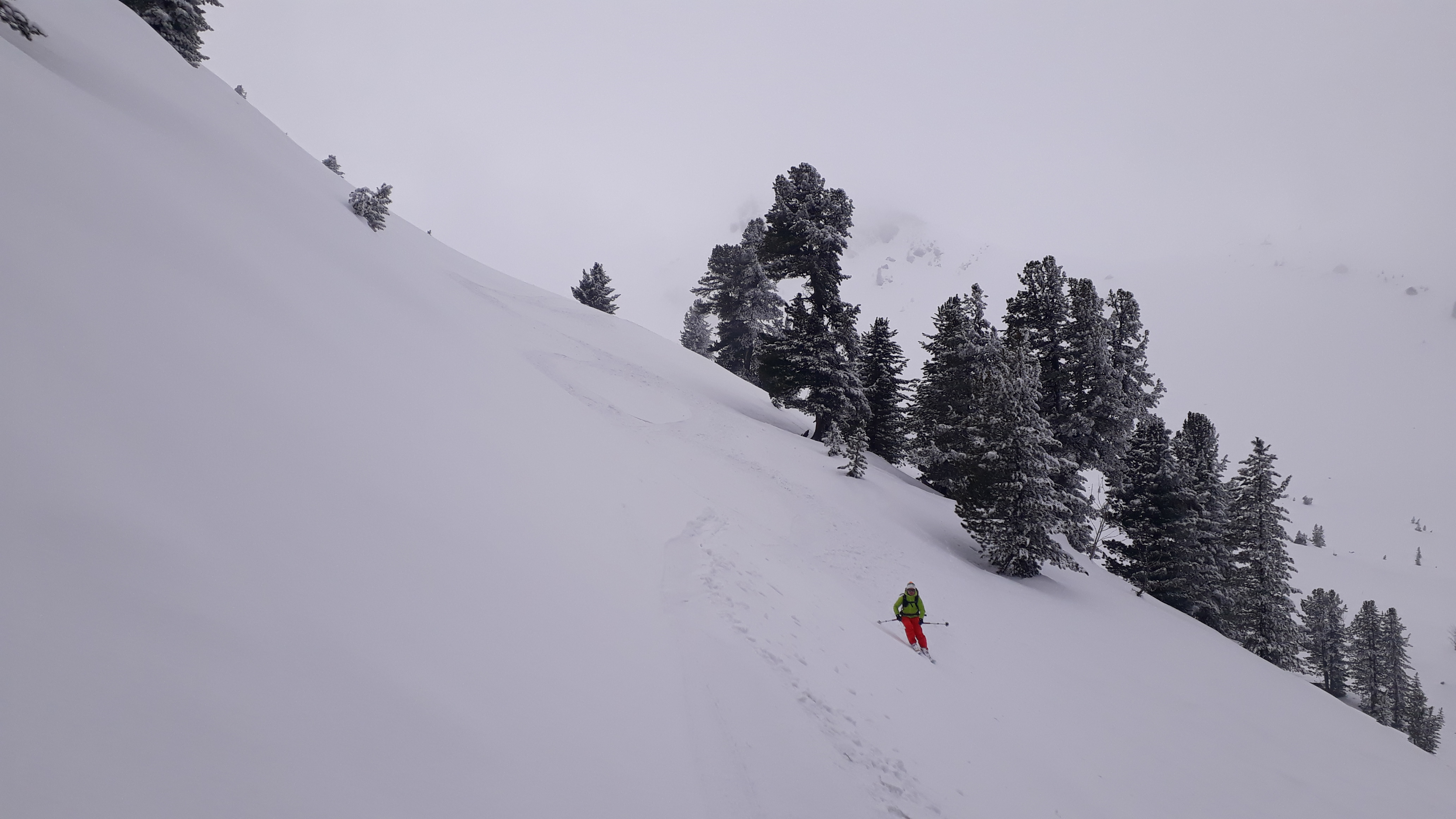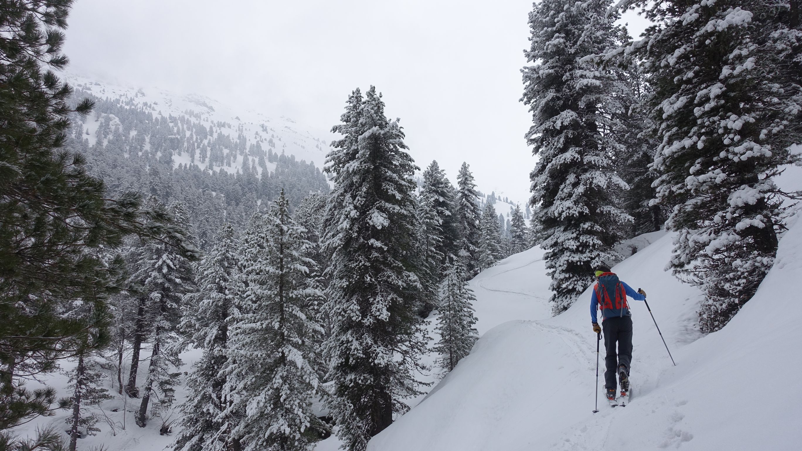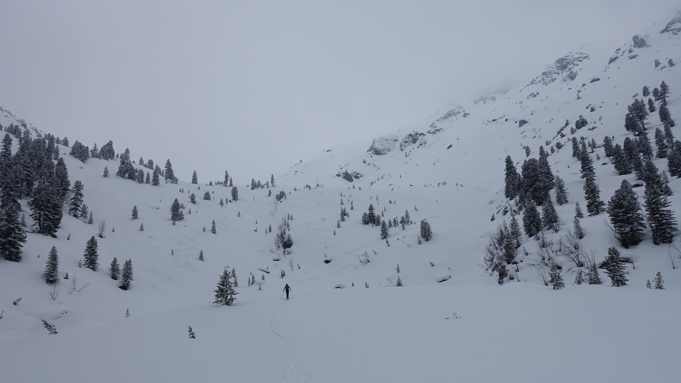 Sonstiges: ca. 250hm muss man die Ski tragen, kaum jemand unterwegs, ab ca. 2300m leider im Nebel, unterhalb aber schön zu fahren