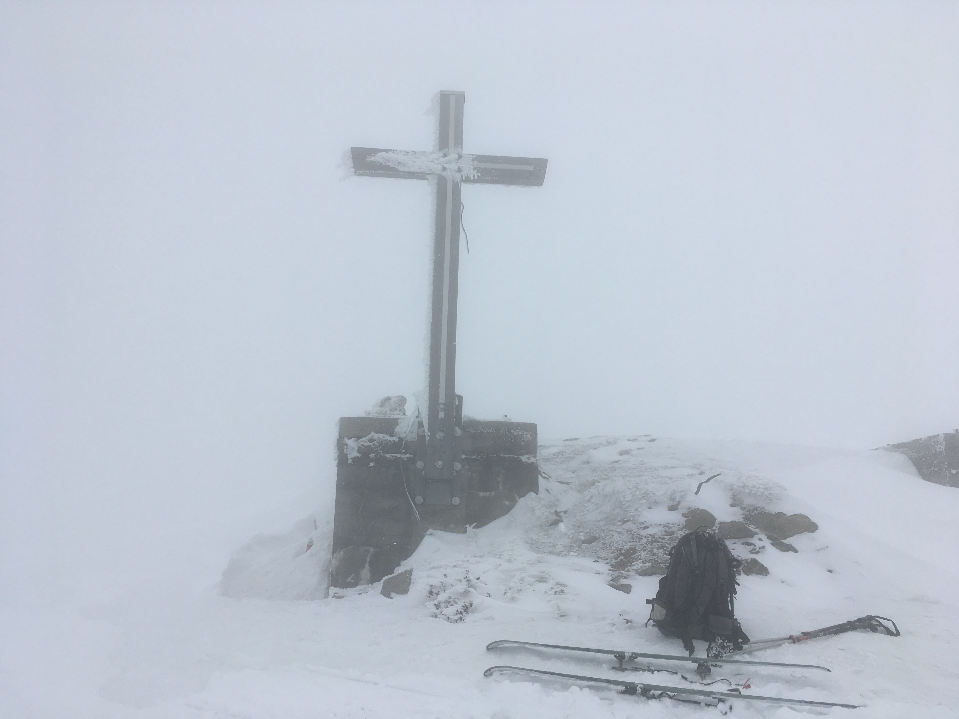 Auch heute wieder das Gipfelkreuz im dichten Nebel: