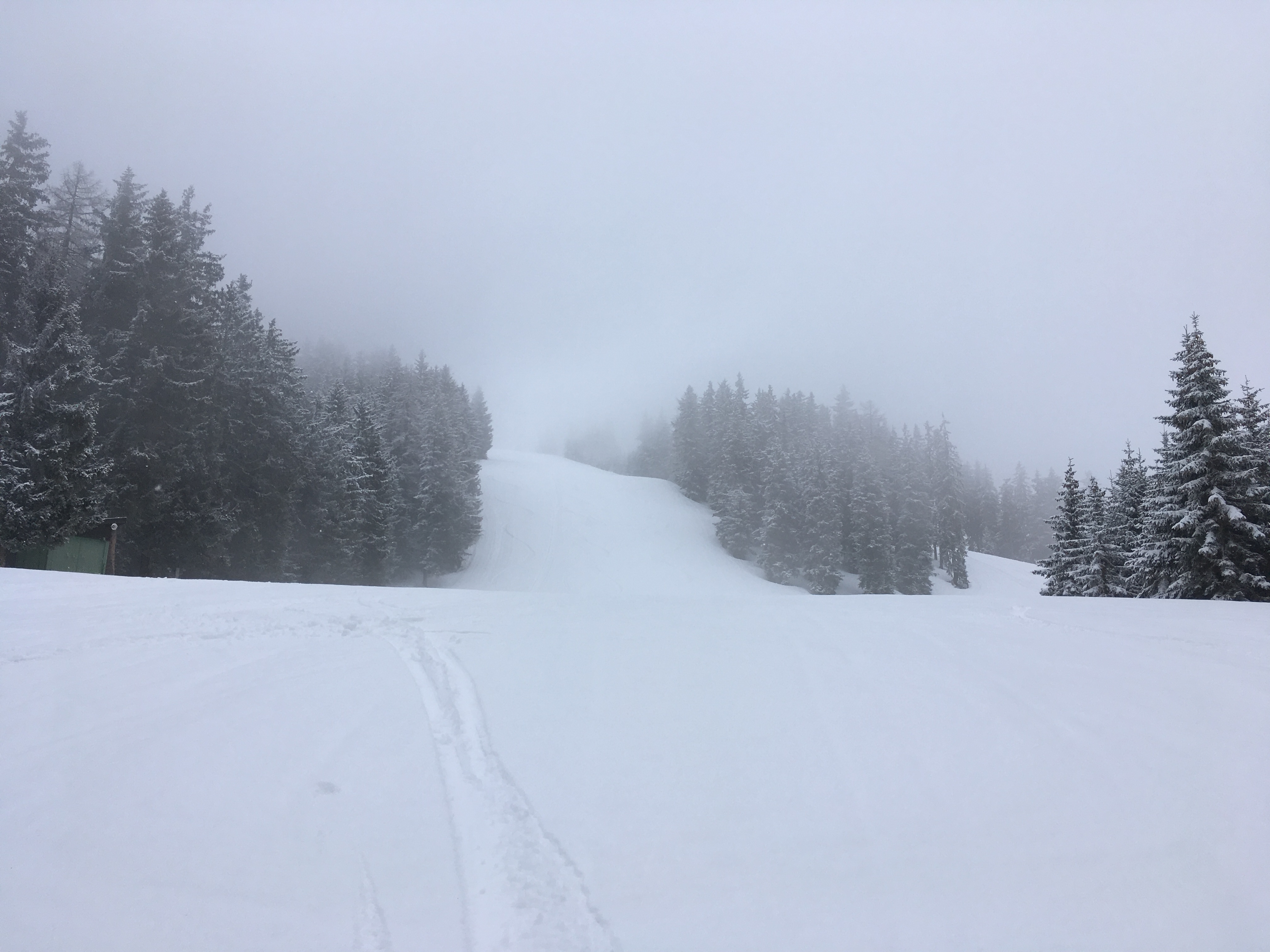 Sonstiges: Angesichts des angekündigten Nebels erschien mir eine einfache Route ohne Abbrüche sinnvoll. So ging es durch das geschlossene Kellerjoch-Skigebiet hoch zum Hecherhaus und noch weiter zum Arbeserkogel. Weil es recht kurz ist noch ein zweites Mal einen Teil hinauf. Auf der alten Abfahrt von Grafenast nach Arzberg lag nur oben noch etwas Altschnee, sonst nur Neuschnee (nicht sinnvoll). Parkgebühr 3 € bzw. direkt am Lift 5 €.