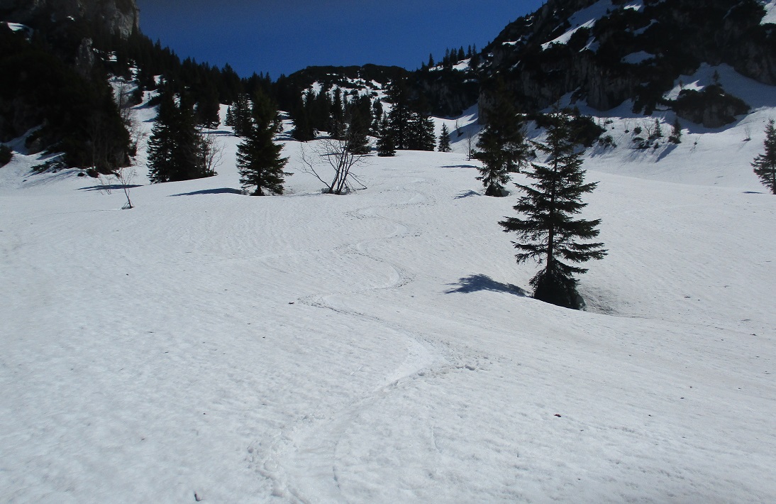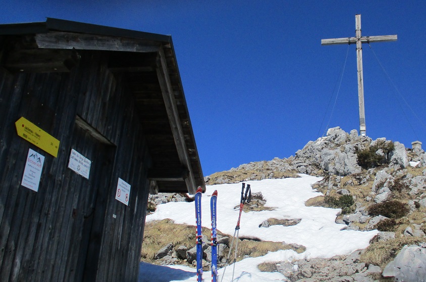 Tourenverhältnisse: Sehr gut / problemlose Auffahrt zur Hint. Längentalalm / ab hier geschlossene Schneedecke / Skiaufstieg komplett bis zum Gipfelhütterl / sehr schöne Firnabfahrt / nochmaliger Aufstieg durch den Westhang zum Sattel zwischen Latschenkopf und Achselköpf : auch von hier geplegte Abfahrt / KEIN SUMPF