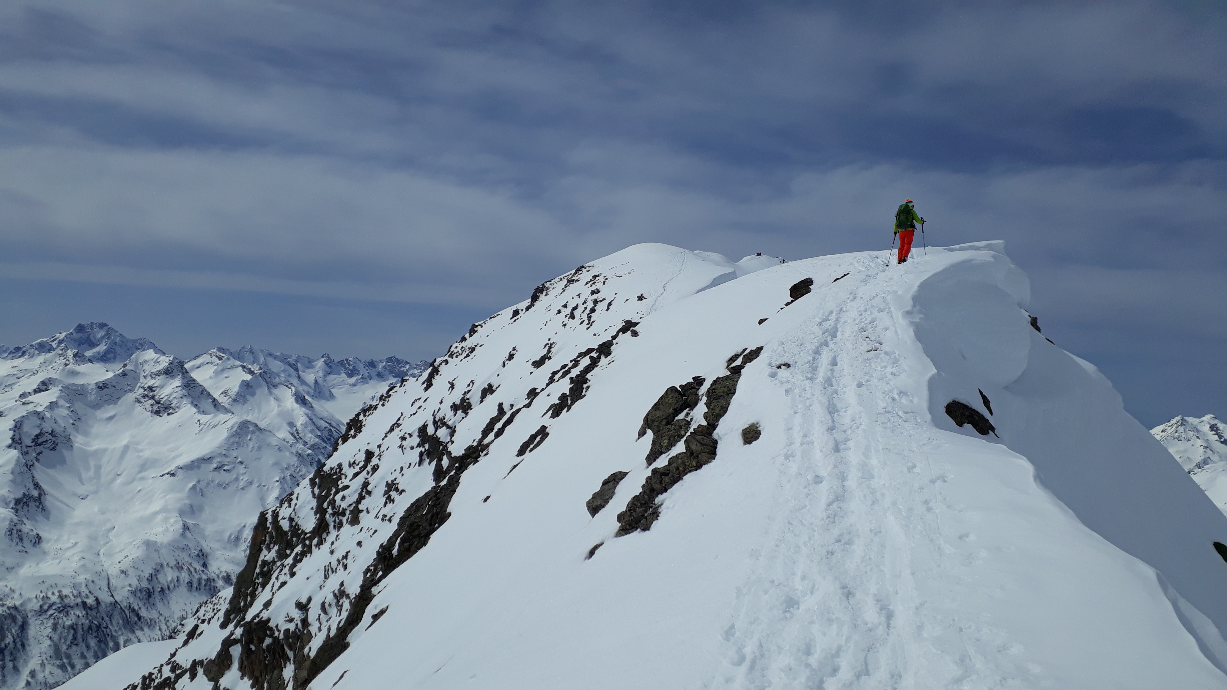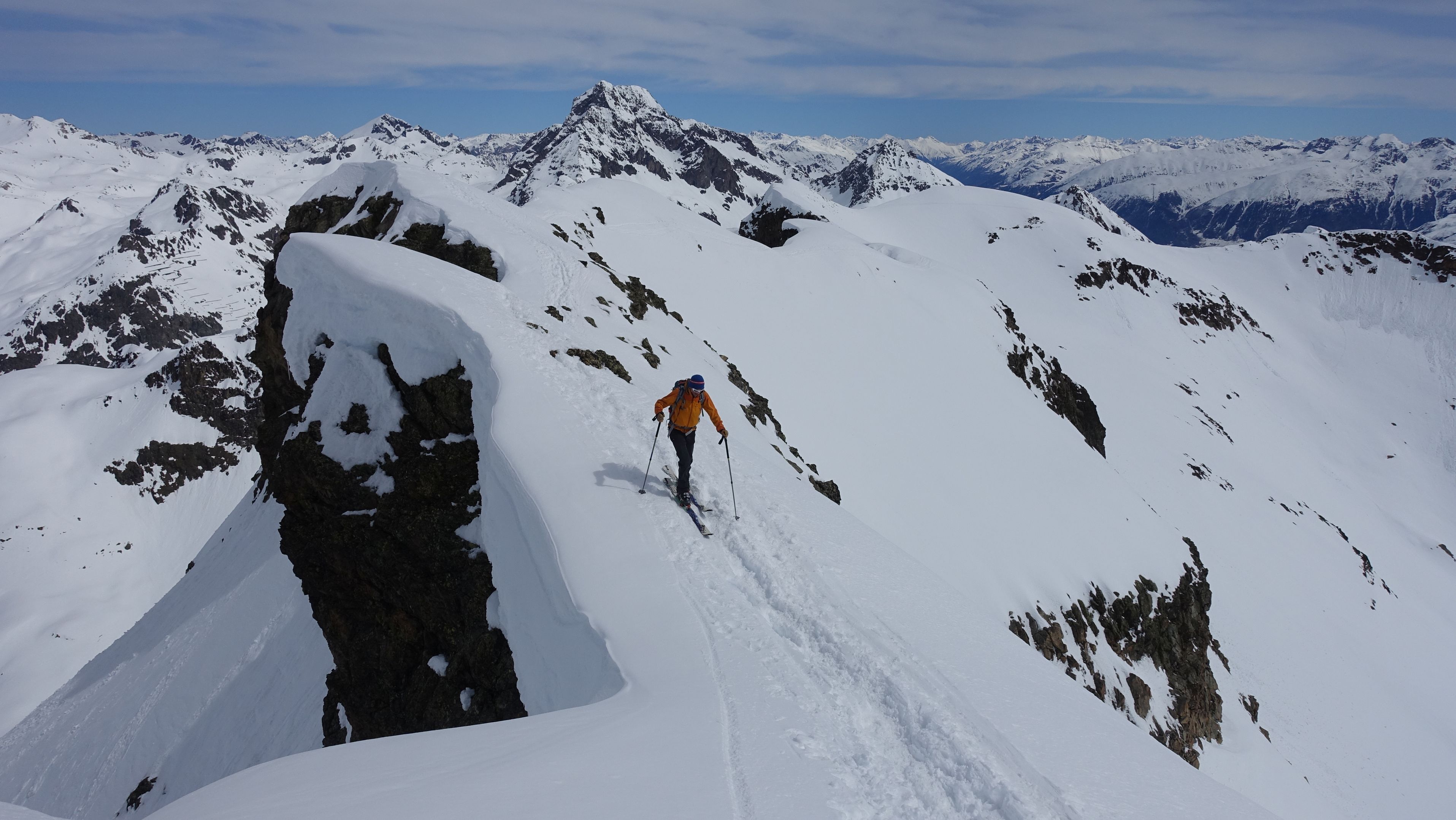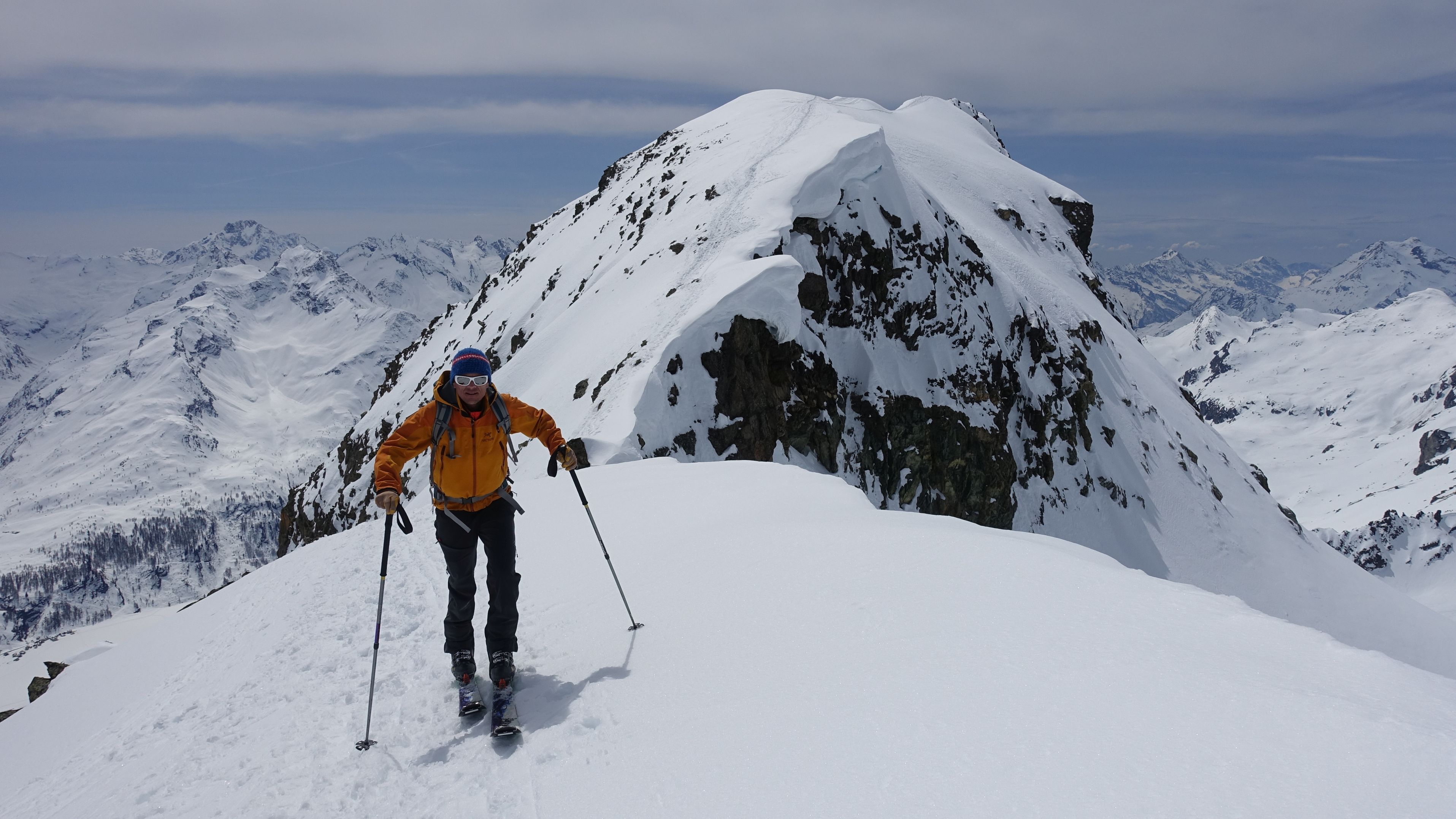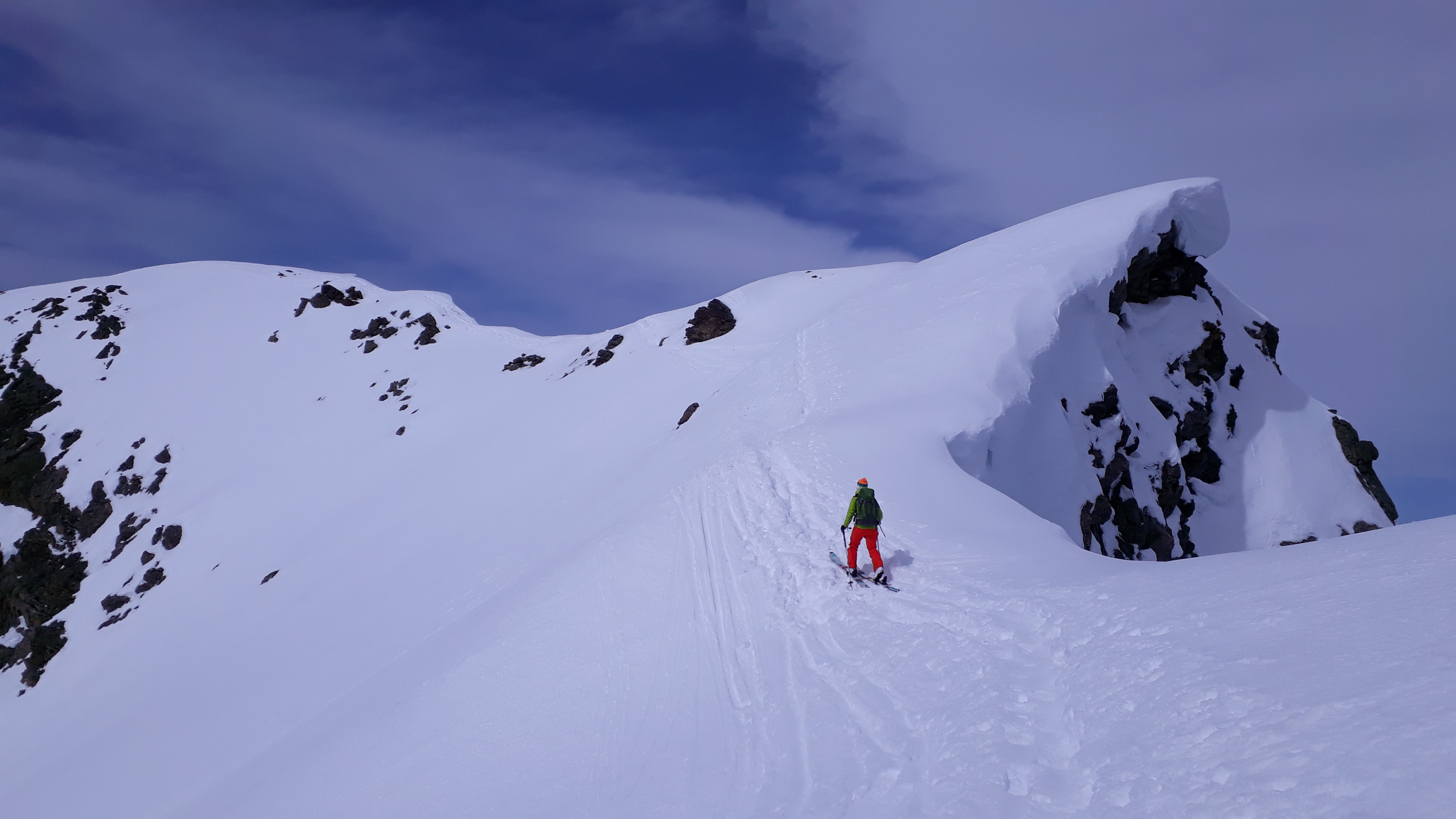 Tourenverhältnisse: Pulver und Firn, man konnte mit Skiern bis zum Hauptgipfel gehen