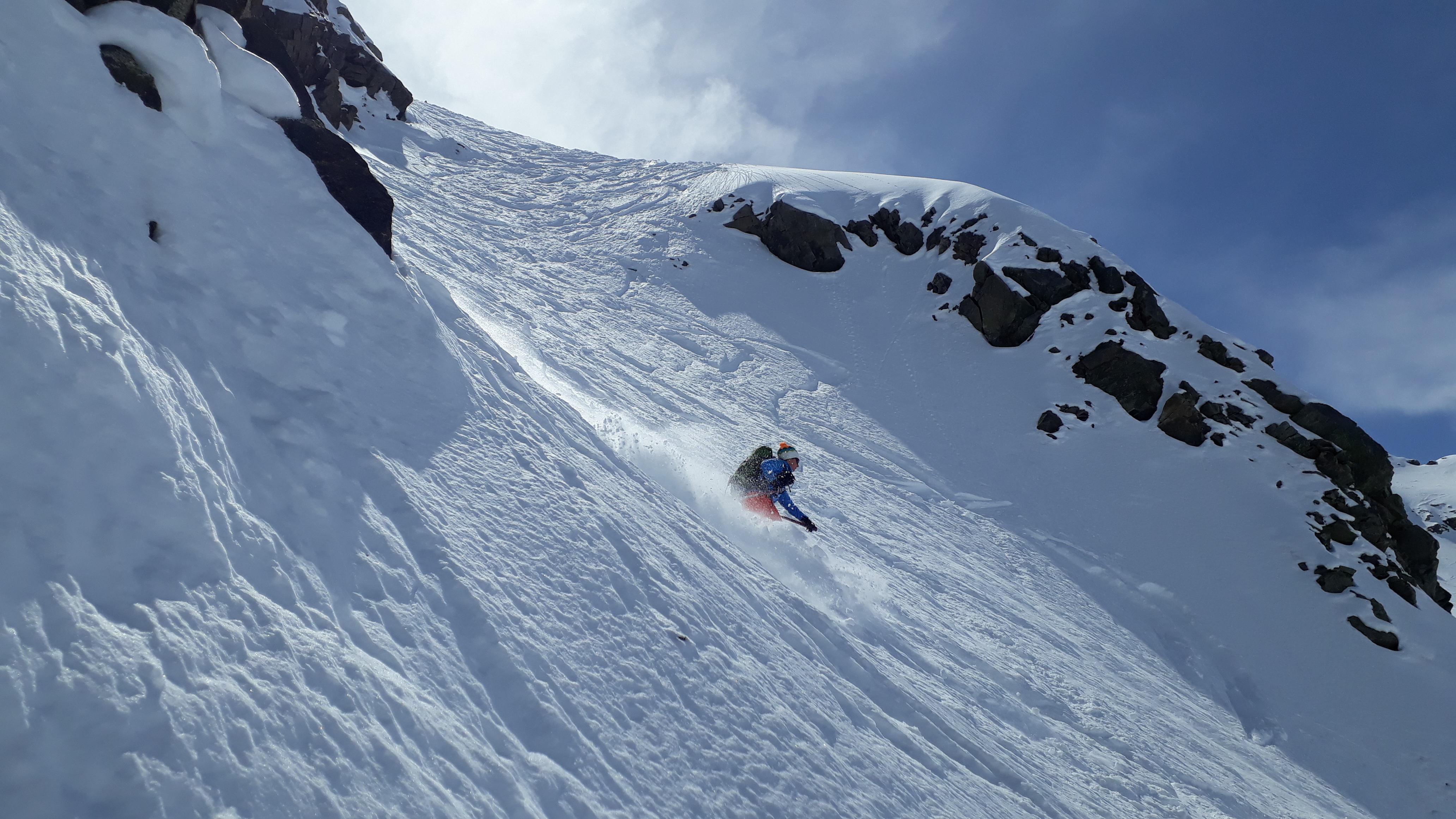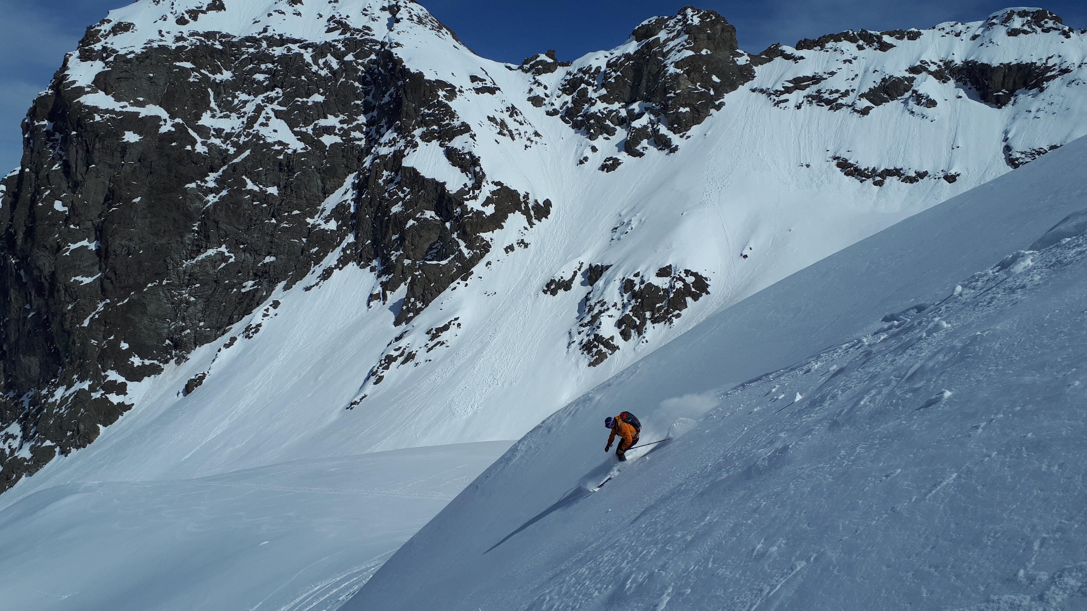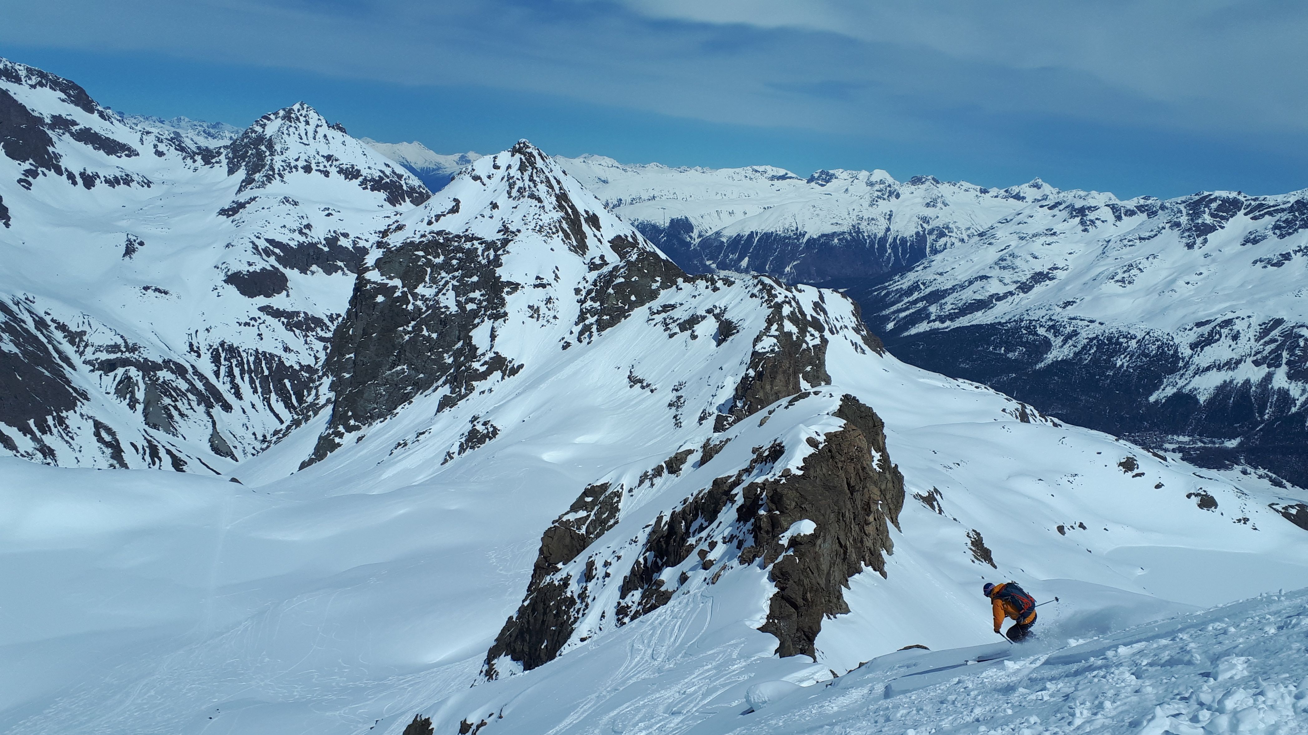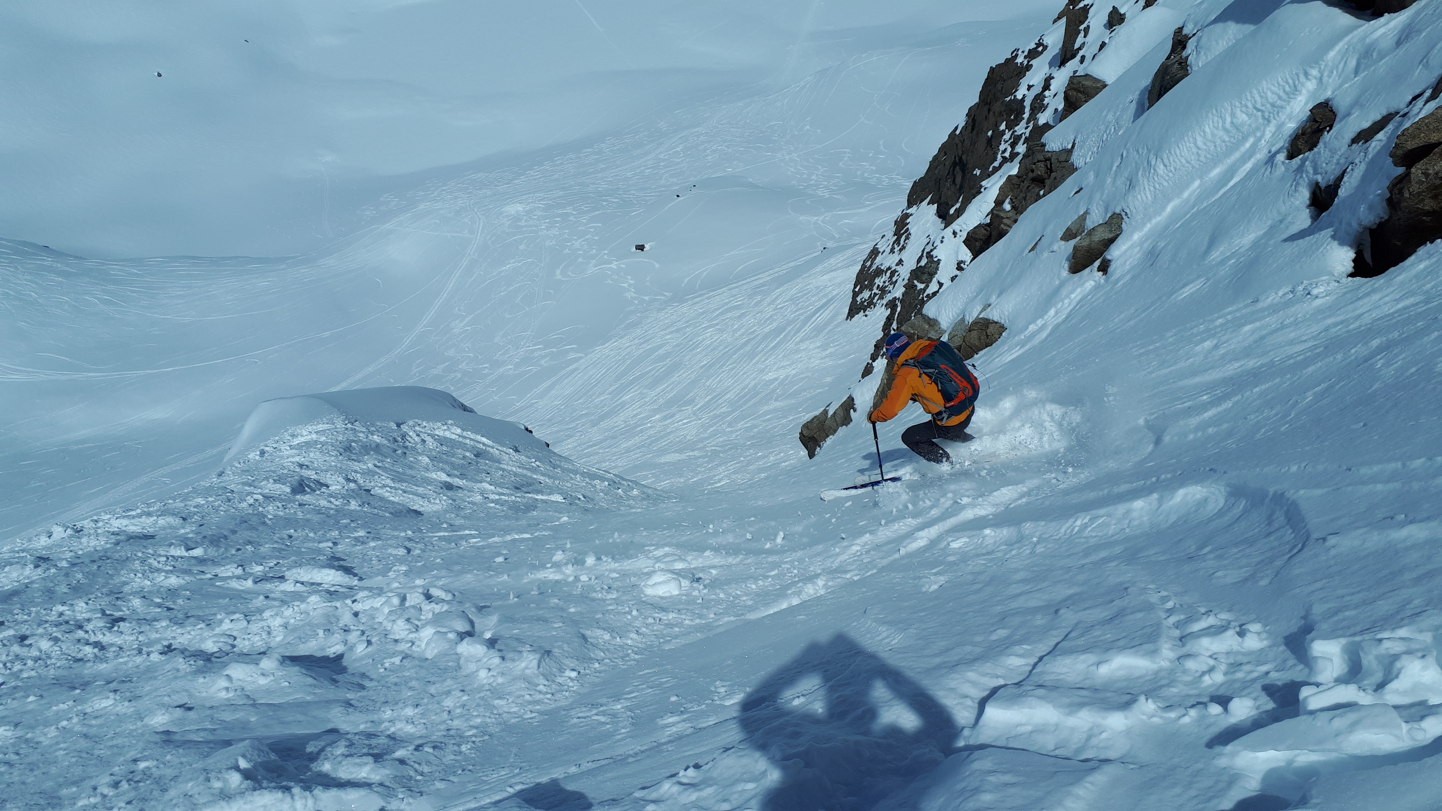 Tourenverhältnisse: Pulver und Firn, man konnte mit Skiern bis zum Hauptgipfel gehen