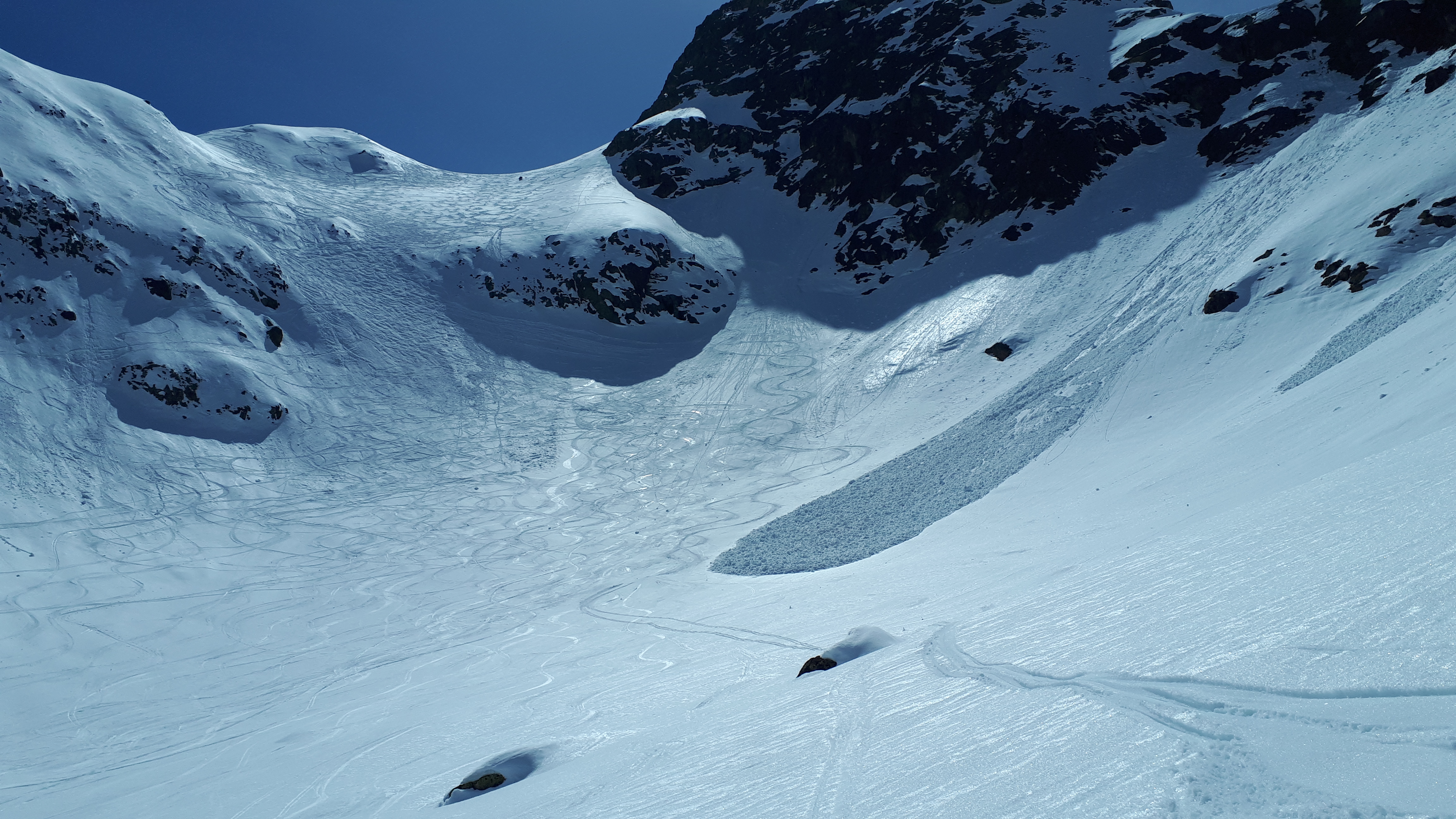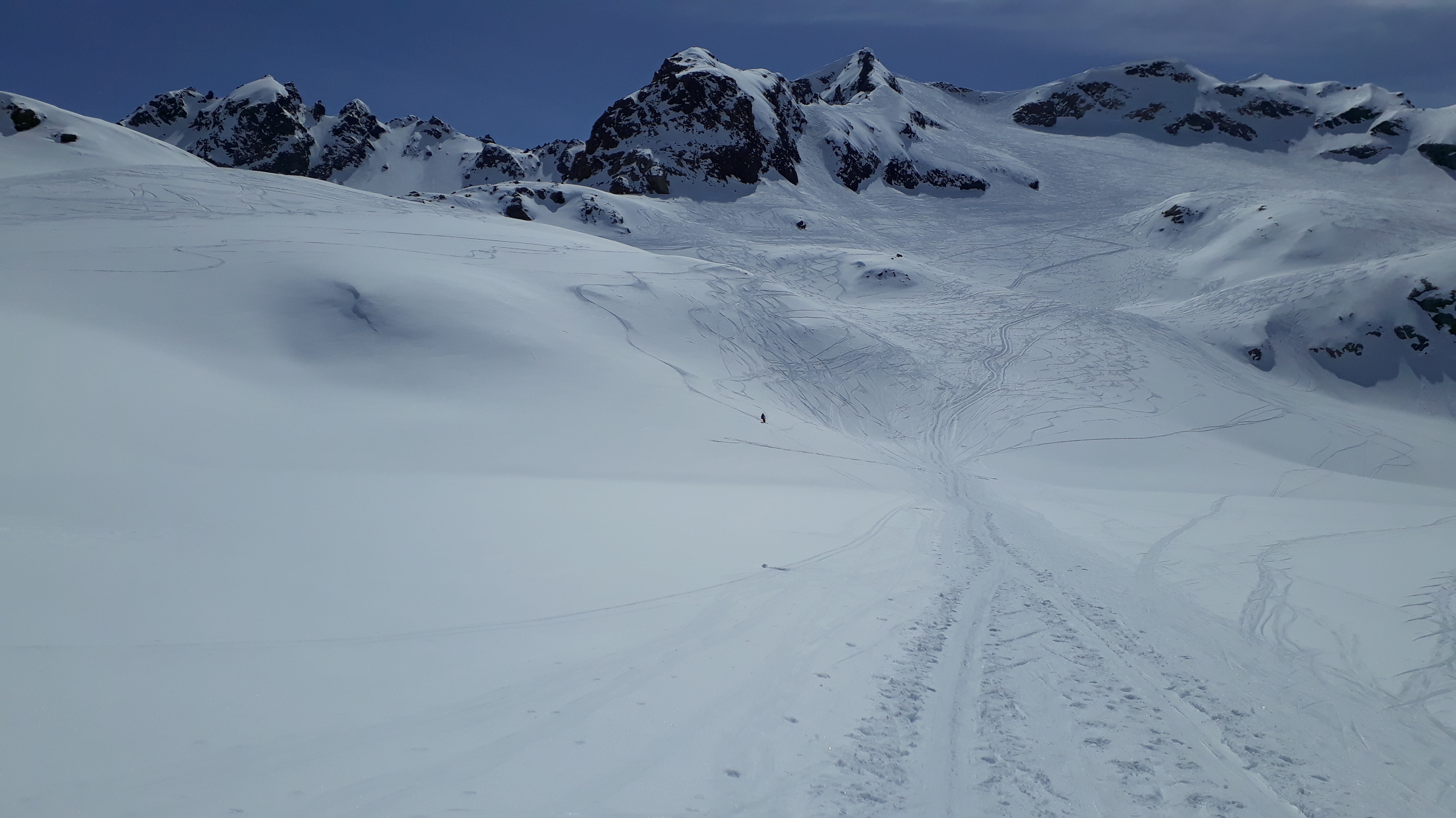Sonstiges: kleine Extrarunde: vom Grat ein kurzes Stück nach Süden abgefahren und auf einen Vorgipfel des Piz Lagrev aufgestiegen (P.3085), Von dort Abfahrt nach Süden bis in die Mulde unterhalb des Lagrev Wintergipfels. Aufstieg zum Grat und von dort nordseitige Abfahrt bis zum Auto