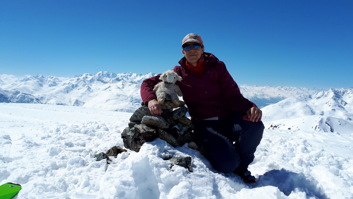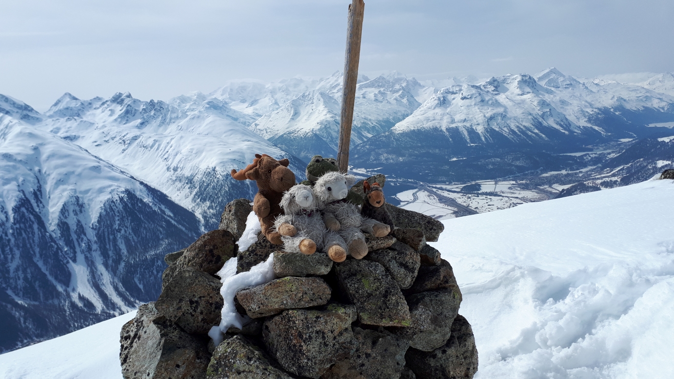 Nach klarer Nacht ist der Schnee gut durchgefroren. Wir starten direkt hinter dem Haus durch das Skigebiet von Zuoz (kein Betrieb mehr) Richtung Pizzet. Der Aufstieg auf der Piste geht sehr gut, ist aber von der ersten Minute an in der Sonne. Oberhalb der Bergstation kommt zum Glück ein leichter Wind auf. Der Gipfelhang ist um halb 11 Uhr schon recht weich. Die Abfahrt erfolgt daher erst Richtung Nord und in das Tal zwischen Pizzet und Belvair. Dann geht es auf dem Südrücken das Pizzet direkt ins Tal. Ab der Hälfte fahren wir auf der Piste ab. Dort ist der Firn optimal und das bis in den Ort hinein. Optisch nicht ganz so ansprechend, aber dafür 1200 Hm perfekte Abfahrt.