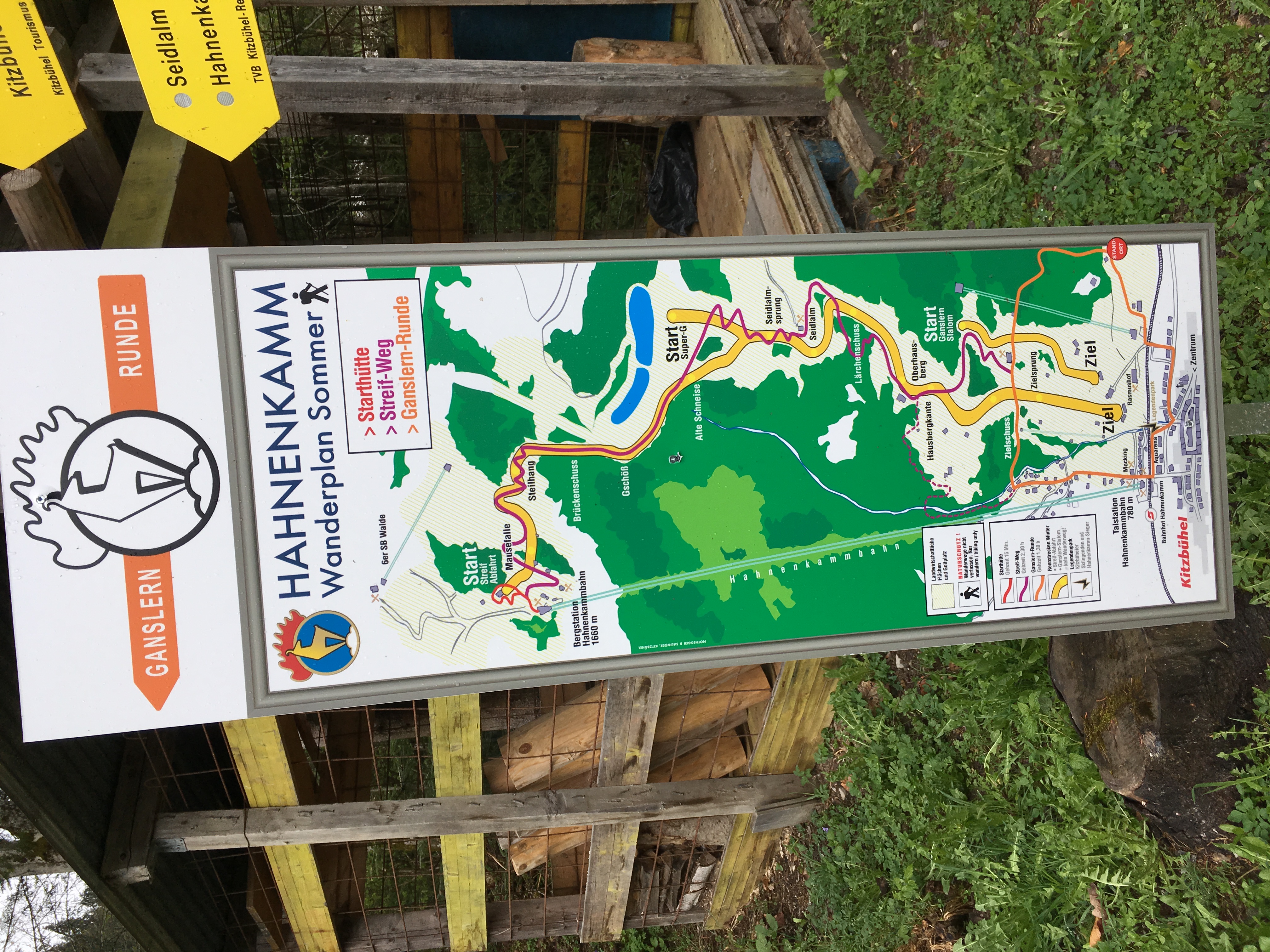 Schon beim Zustieg informiert eine Tafel über wichtige Abschnitte der Streif: