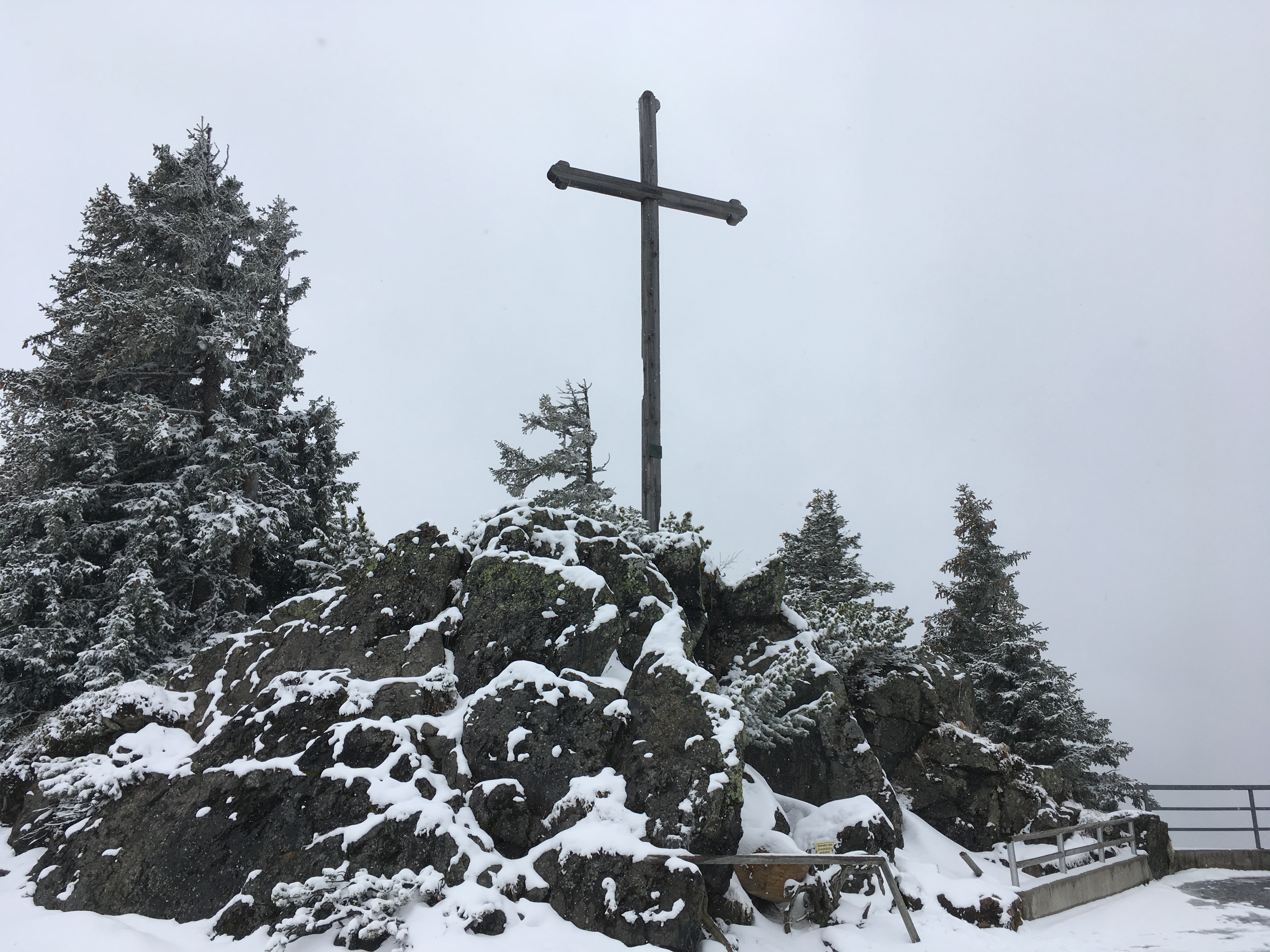 Merkwürdigerweise keine anderen Tourengeher gesichtet (nur eine andere Spur), dafür aber mehrere Wanderer im Aufstieg über die Skipisten. Ich werde den Reiz des Wanderns auf einer Skipiste allerdings nie verstehen. Wenn man schon wandern will und nicht mehr die Skier einsetzen will (obwohl zur Zeit sicherlich sinnvoll), warum dann nicht auf den jedenfalls unten schneefreien Wanderwegen?