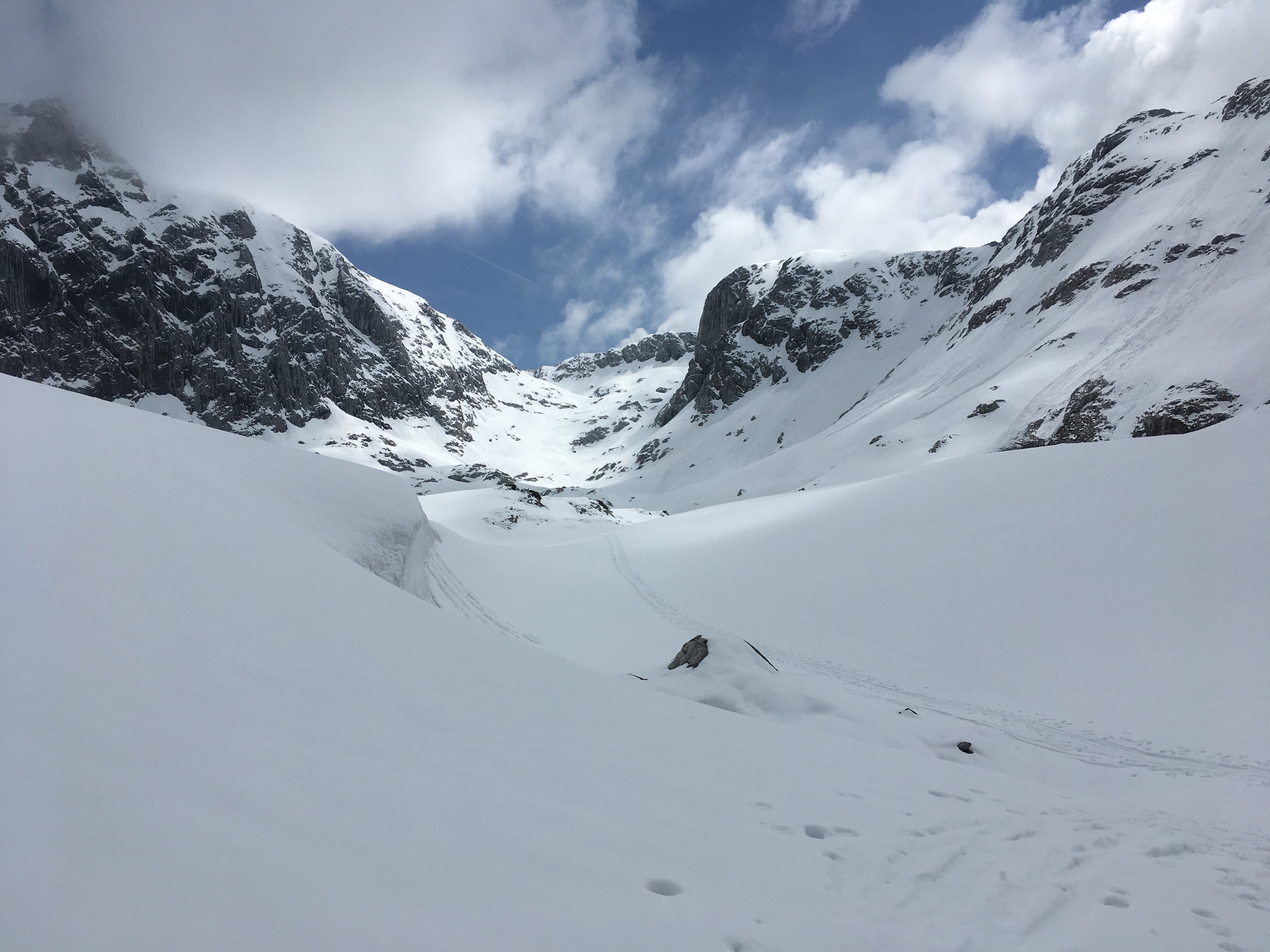 Tourenverhältnisse: (skitauglichen) Schnee auf der Route hat es ab ca. 1.370 m, bis ca. 1.800/1.900 m Sommerschnee, darüber tiefer Schnee
