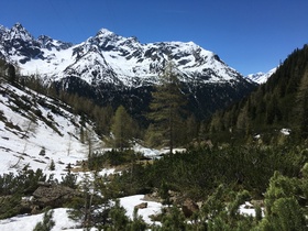 Im Tälchen bei der Hütte auf ca. 2.170 m nicht dem Sommerweg folgen, sondern weiter entlang des Baches:
