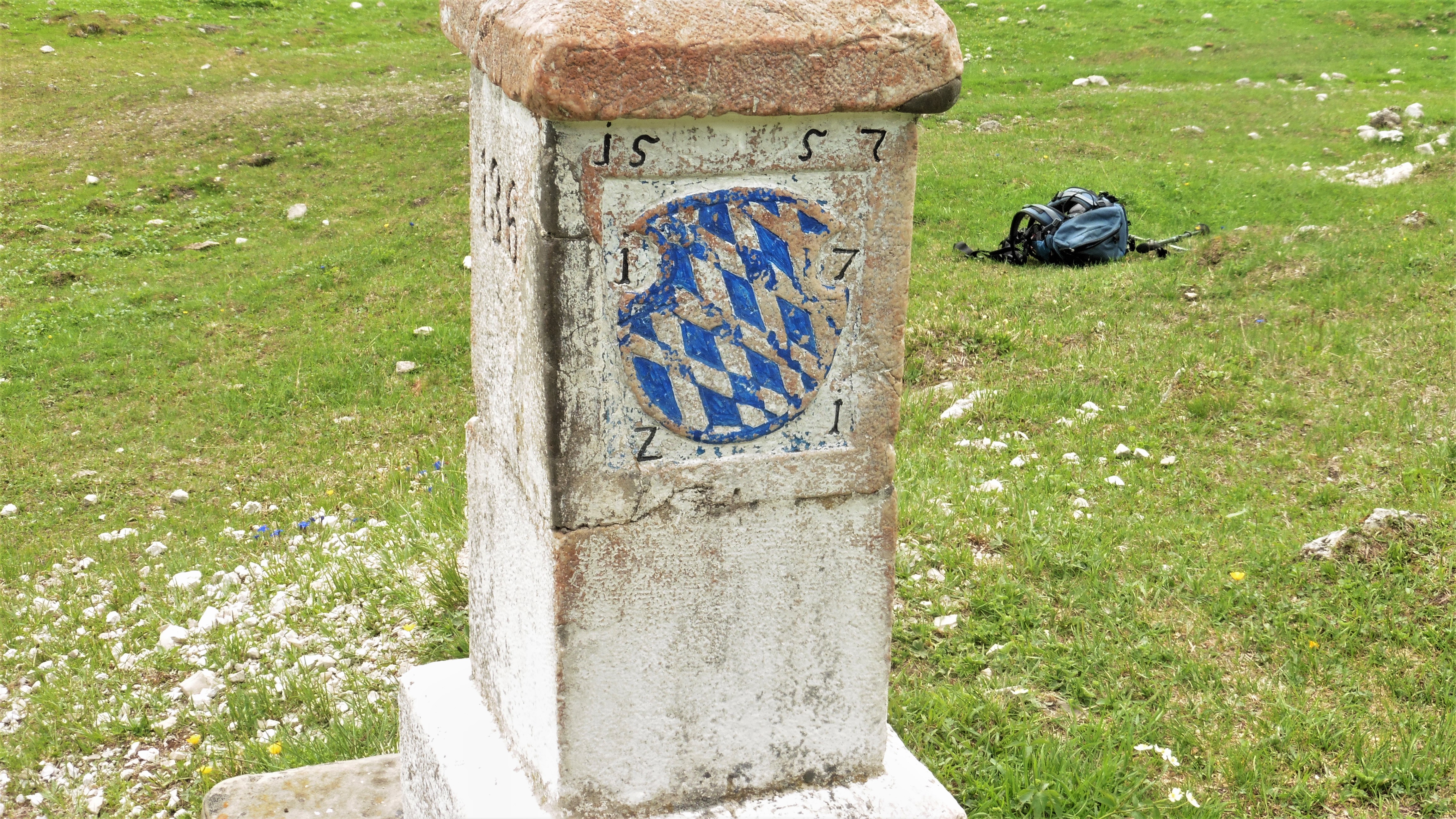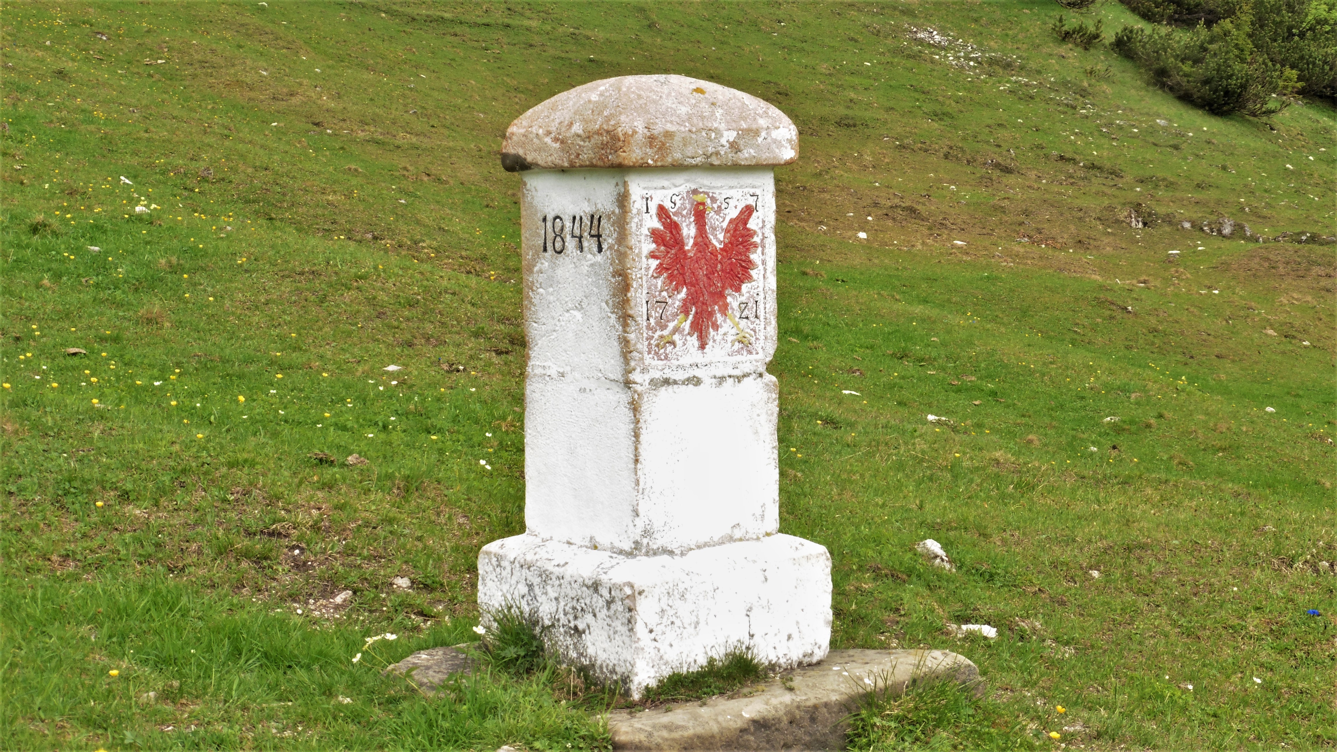 Bild 2: über die Ritzelbergalm verläuft die Grenze; auf der Vorderseite der Tiroler Adler;