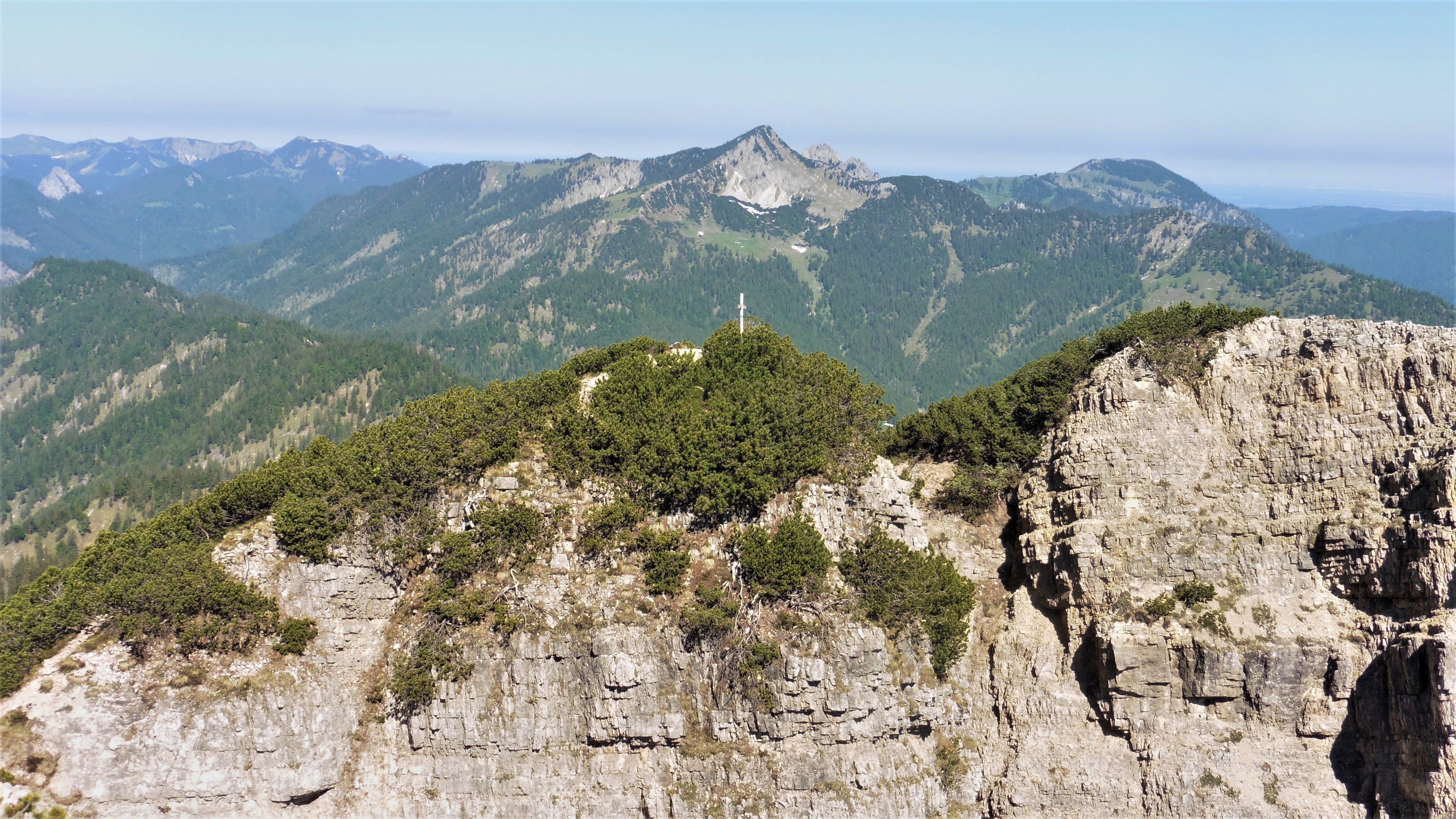 Sonstiges: mit dem Rad durch die Lange Au (ca. 10 km - die erste Hälfte flach, die zweite kontinuierlich leicht ansteigend); an der Jagdhütte auf der Bayr - Alm beginnt der Wanderweg zur Rieselsbergalm; von dort auf ein Joch und dann kurz absteigend zur Ritzelbergalm; weglos über die Alm - auf Markierungen achten - zunehmend steiler werdend zum Schindertor; auf schlechtem Steig nach links und dann durch Latschen auf den Grat; es gibt 2 Kreuzgipfel, - links der etwas niedrigere mit altem Holzkreuz, - rechts der höhere mit neuem Kreuz ( Haushamer Bergbund 2017);