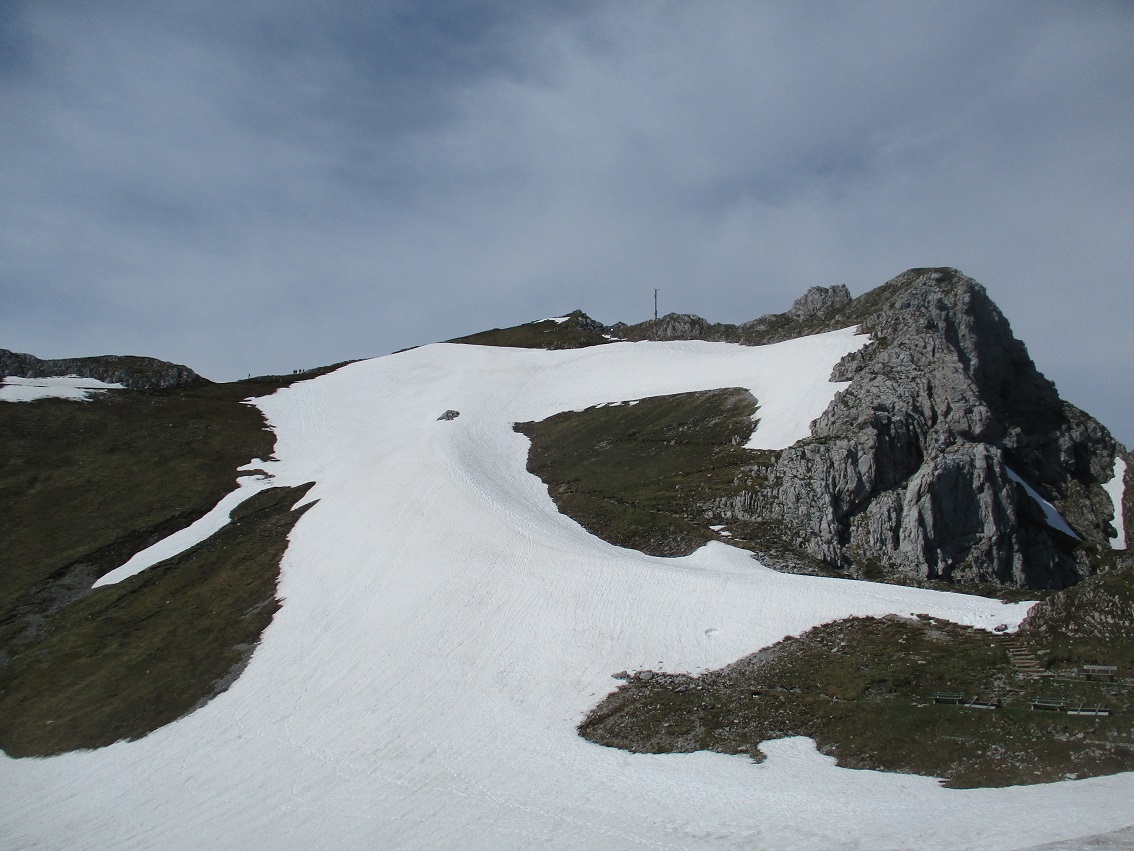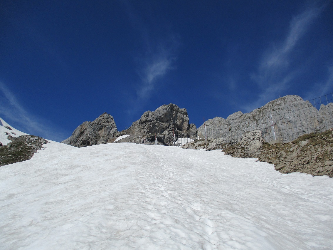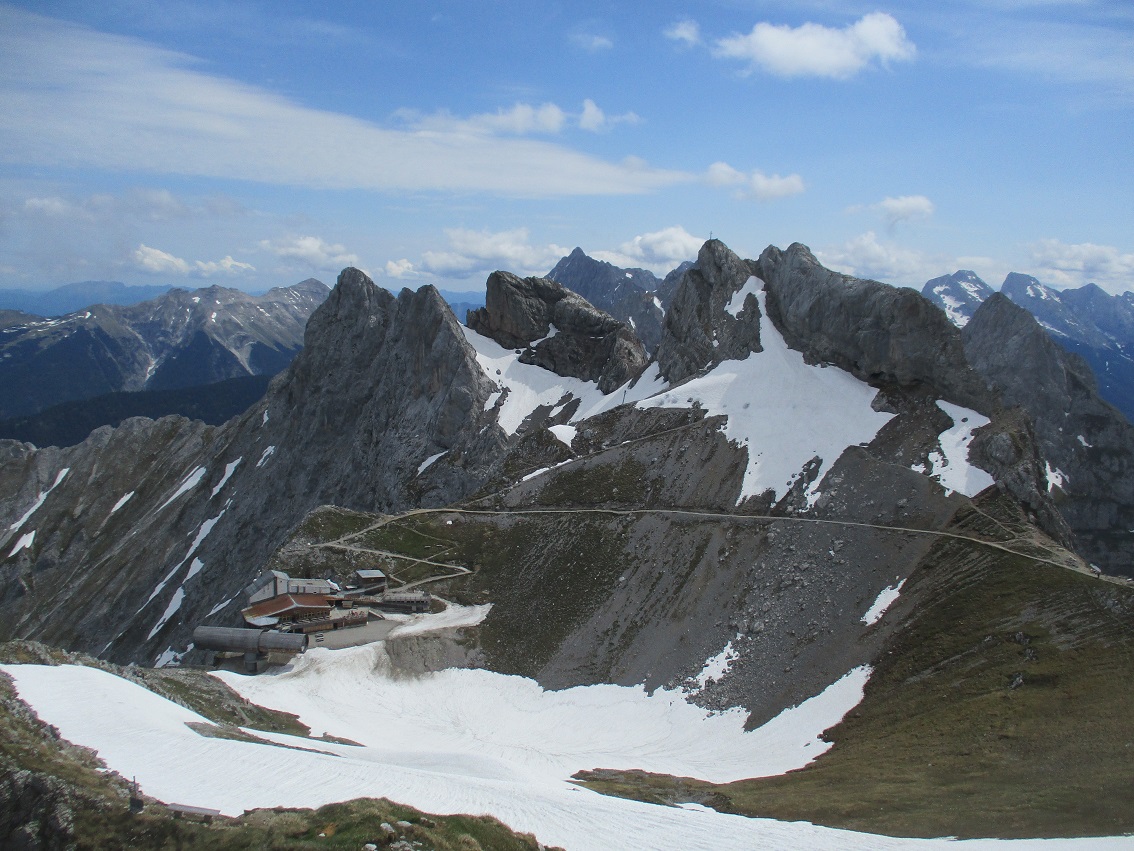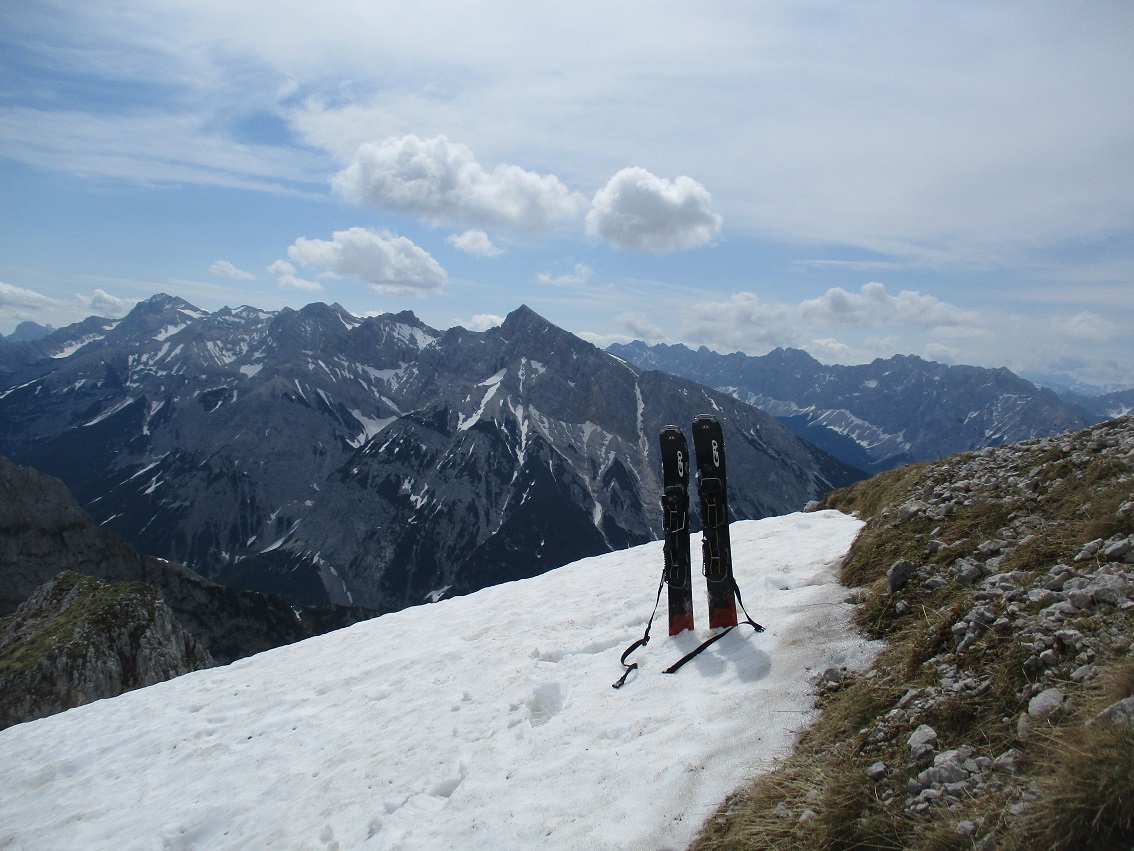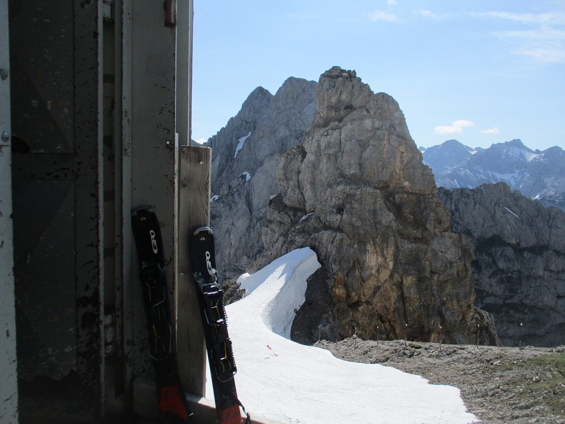 Tourenverhältnisse: für Mitte Juni sehr gut / Radl bis Bankerl / danach 400 Hm zu Fuß zum durchgehenden Schneebeginn / 20 Meter vorm Tunnel aper / ab der Bergstation noch Schnee bis kurz unter den Gipfel der Linderspitze
