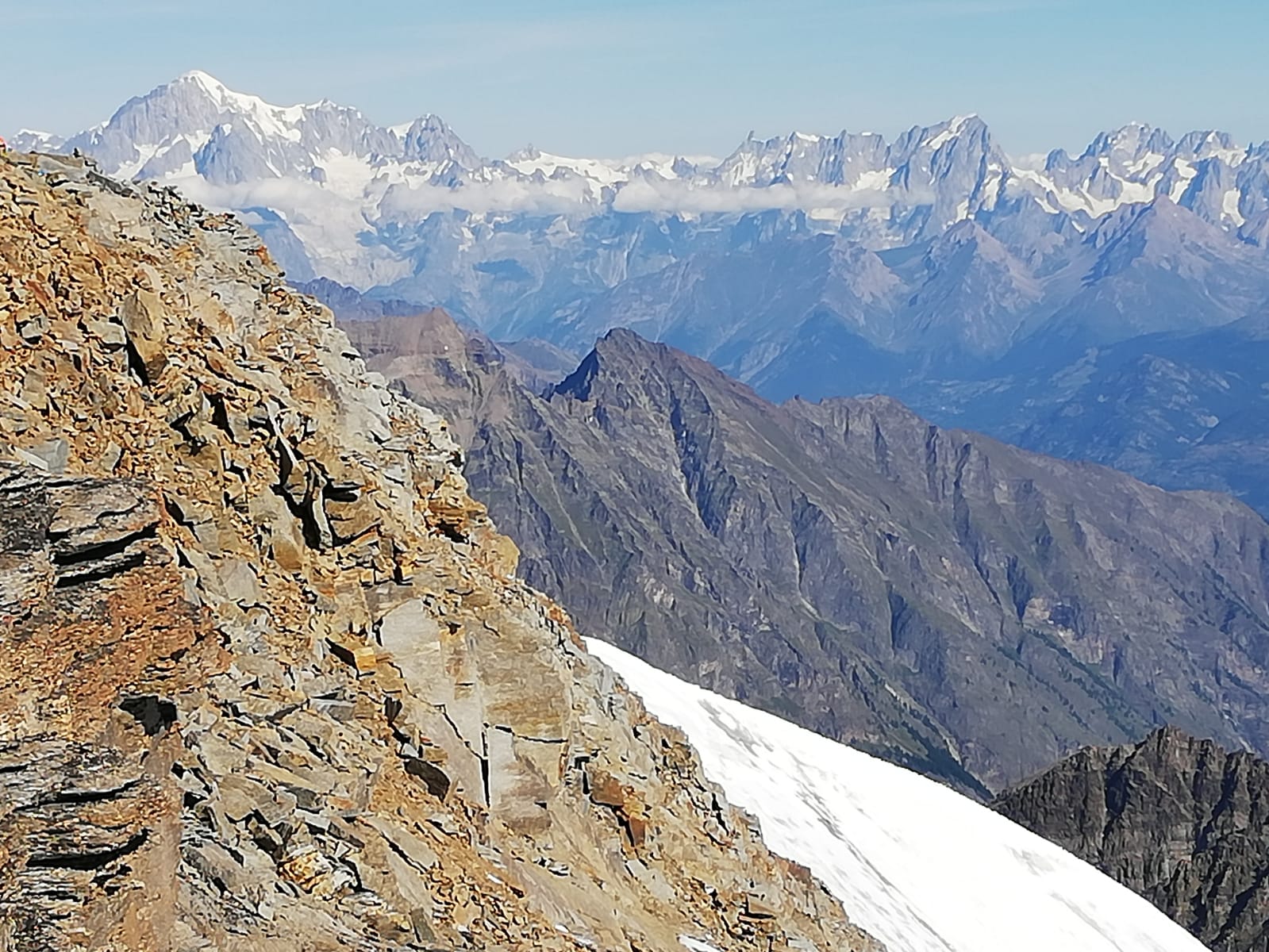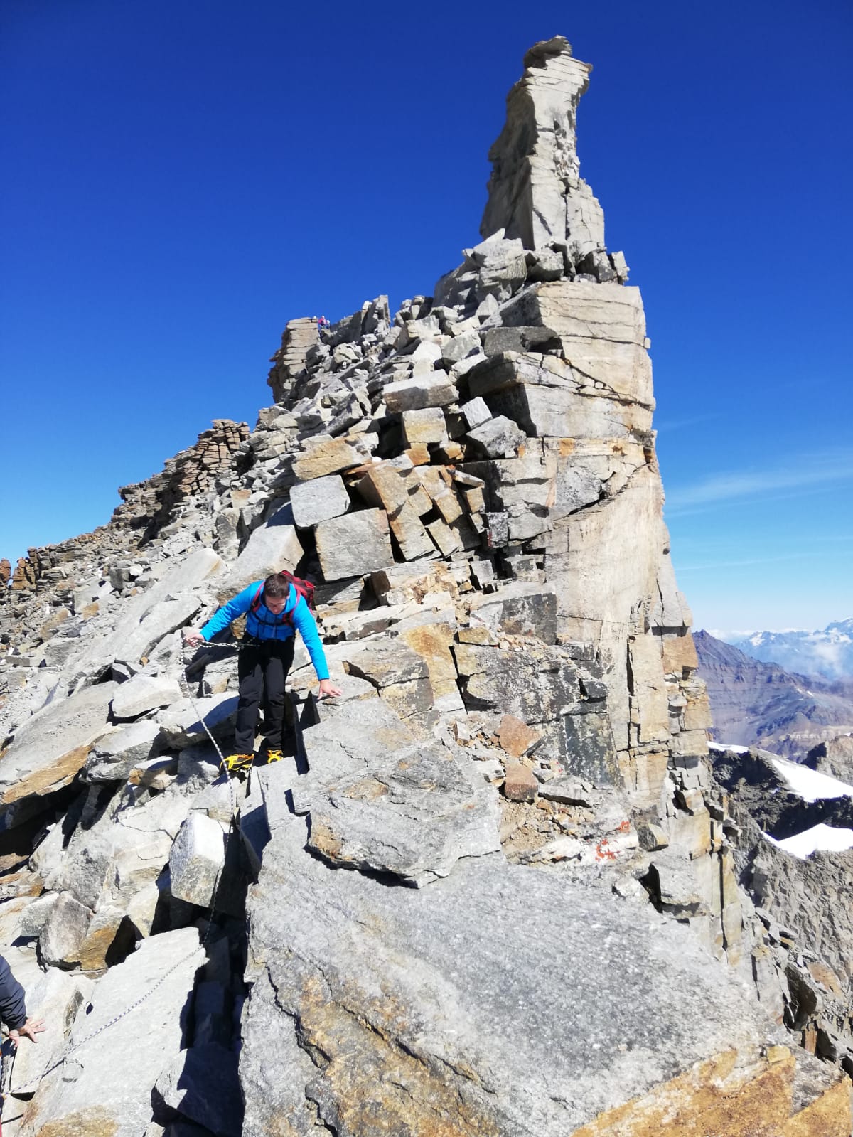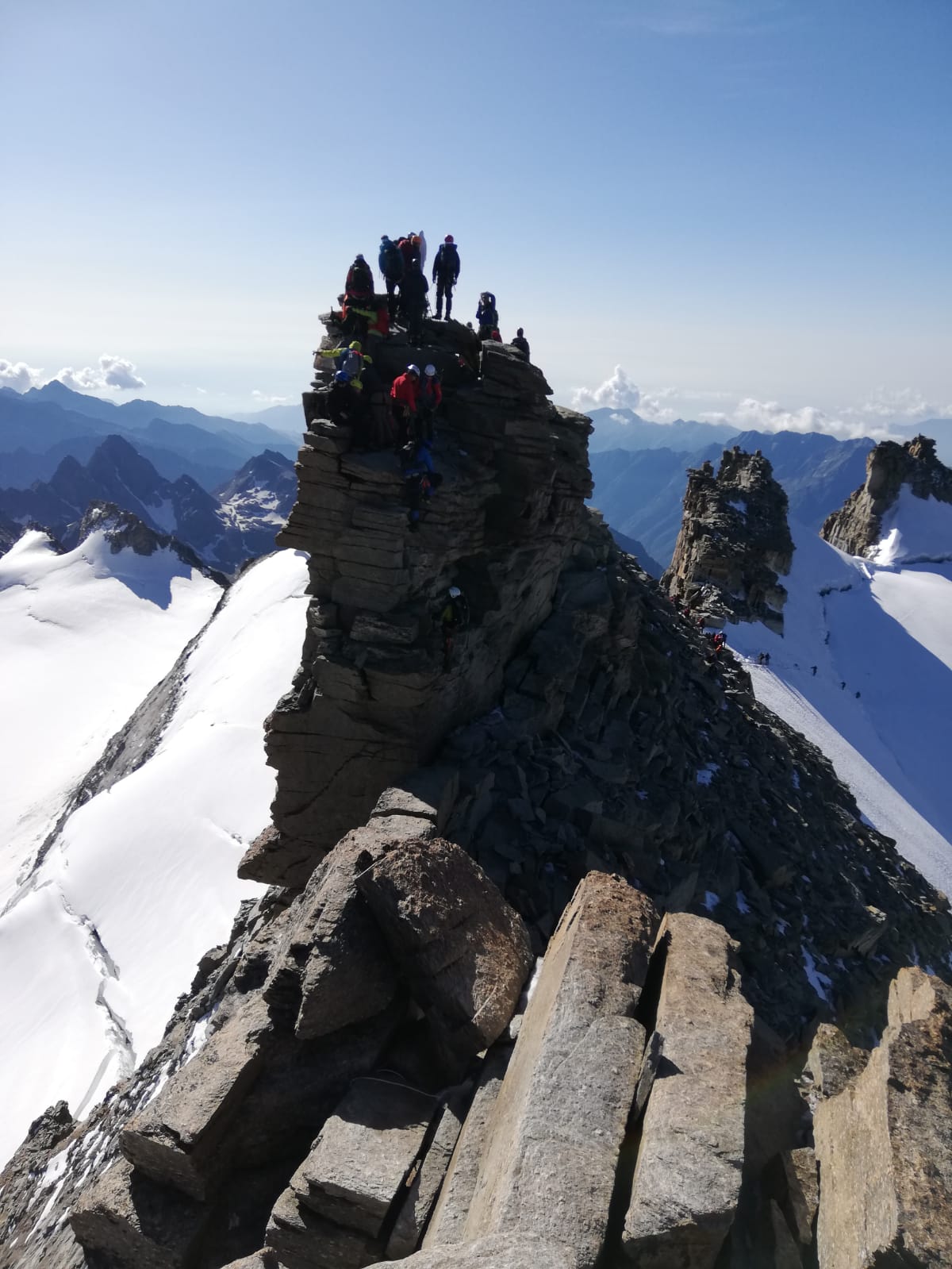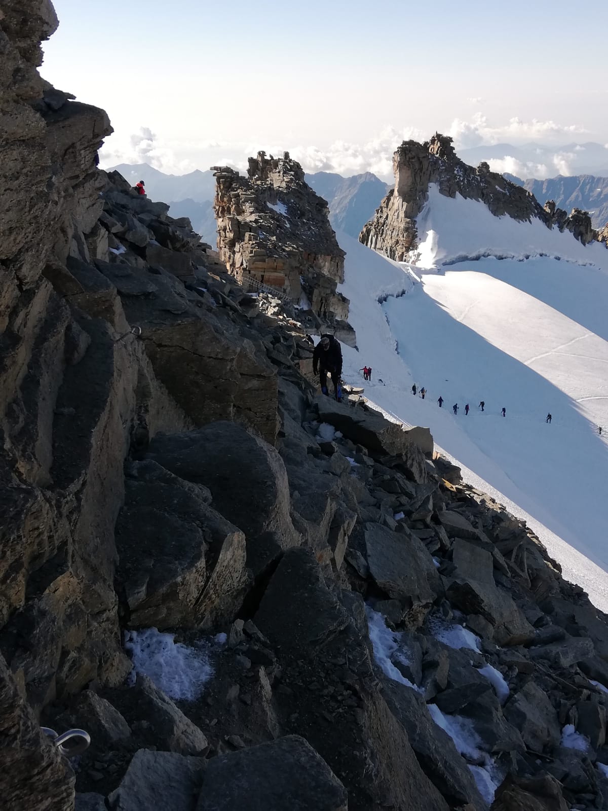 Natürlich nimmt man schon der Fotos wegen dann doch noch den Madonnagipfel mit, anschließend geht es auf dem Aufstiegsweg zur Schulter im Gletscher zurück. Von dort stiegen wir dann den Normalweg zum Rifugio Vittorio Emanuele ab und von dort weiter nach Pont.