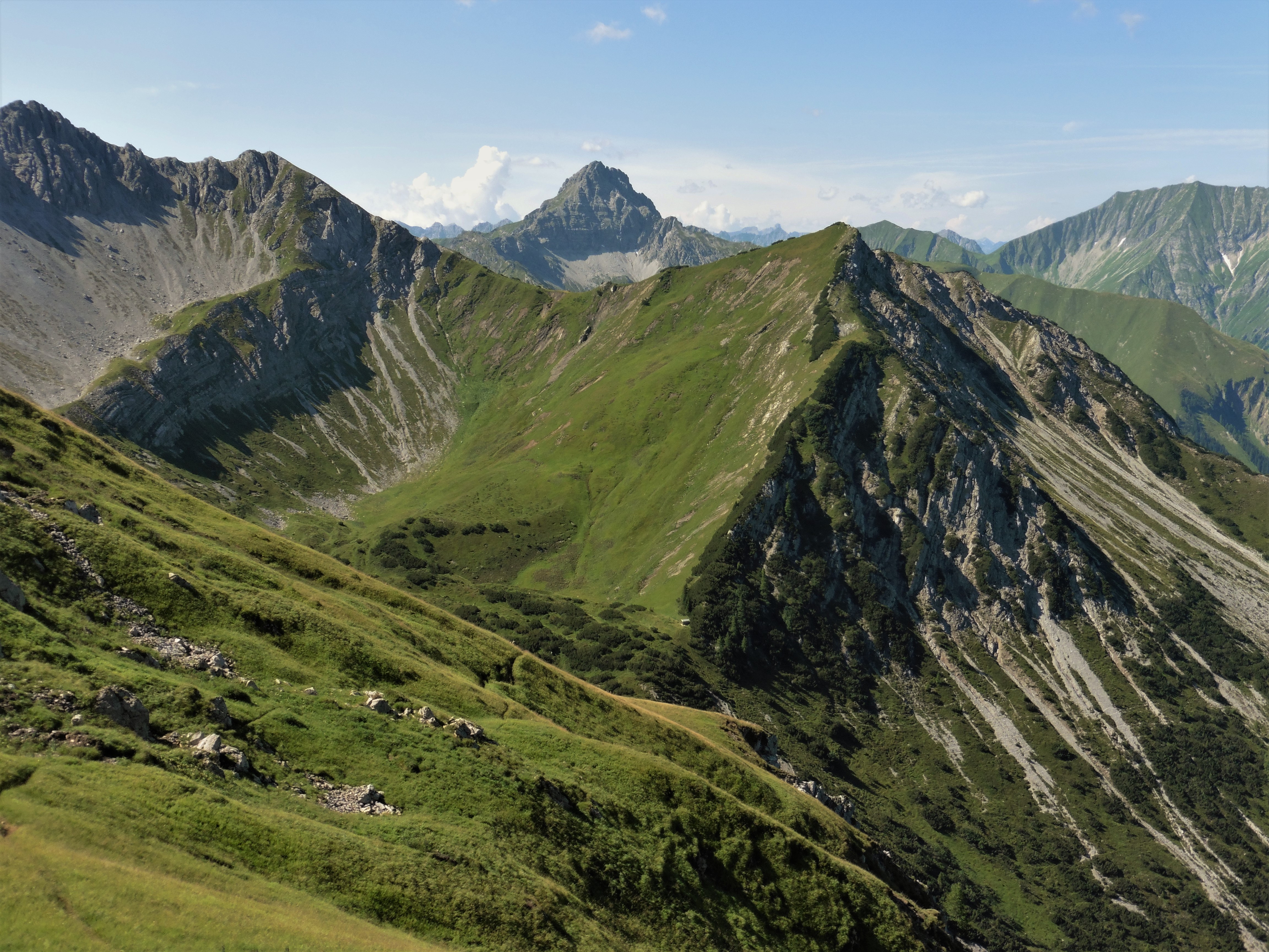 Sonstiges: vom Parkplatz zuerst auf Forststraße ins Rotlechtal bis zu einer Hütte; dem Wegweiser folgend auf Steig durch herrlichem Bergwald zum Grat und auf diesem über einen Vorgipfel auf die Schlierewand; weiter fast eben aufs Sandegg; hier beginnt der Abstieg über steile Rasenhänge ins Kelmer Kar und dann entlang des Karbaches nach Kelmen; der letzte Teil erfolgte entspannt auf dem Rad - immer bergab - zum Parkplatz (ca. 4 km);