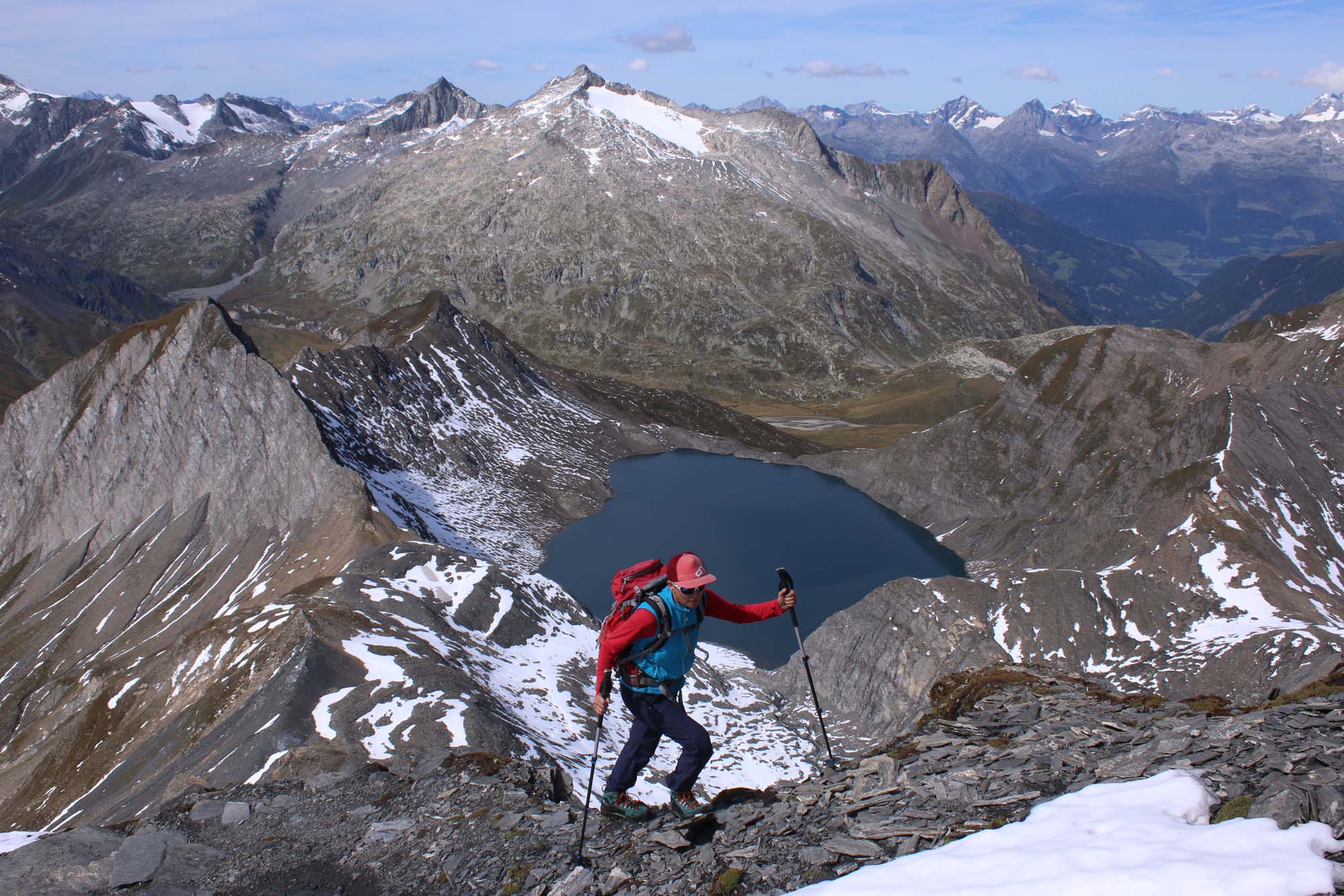 Tourenverhältnisse: Der Anstieg zum Pass Diesrut ist komplett schneefrei. Auf der Südseite des Piz Ner gibt es Schneereste, die man aber gut umgehen kann. Allerdings ist der Anstieg weglos und sehr steil. An der Nordseite des Piz Terri liegt gibt es bereits größere Schneefelder, die aber gespurt waren und mit Teleskopstöcken gut zu gehen lasse. Der Gipfelgrat ist so gut wie schneefrei. Die Südseite des Piz Cristallina ist so gut wie schneefrei. Ab ca 2800 m gibt es im Blockgelände Schneefelder die man gut umgehen kann,.