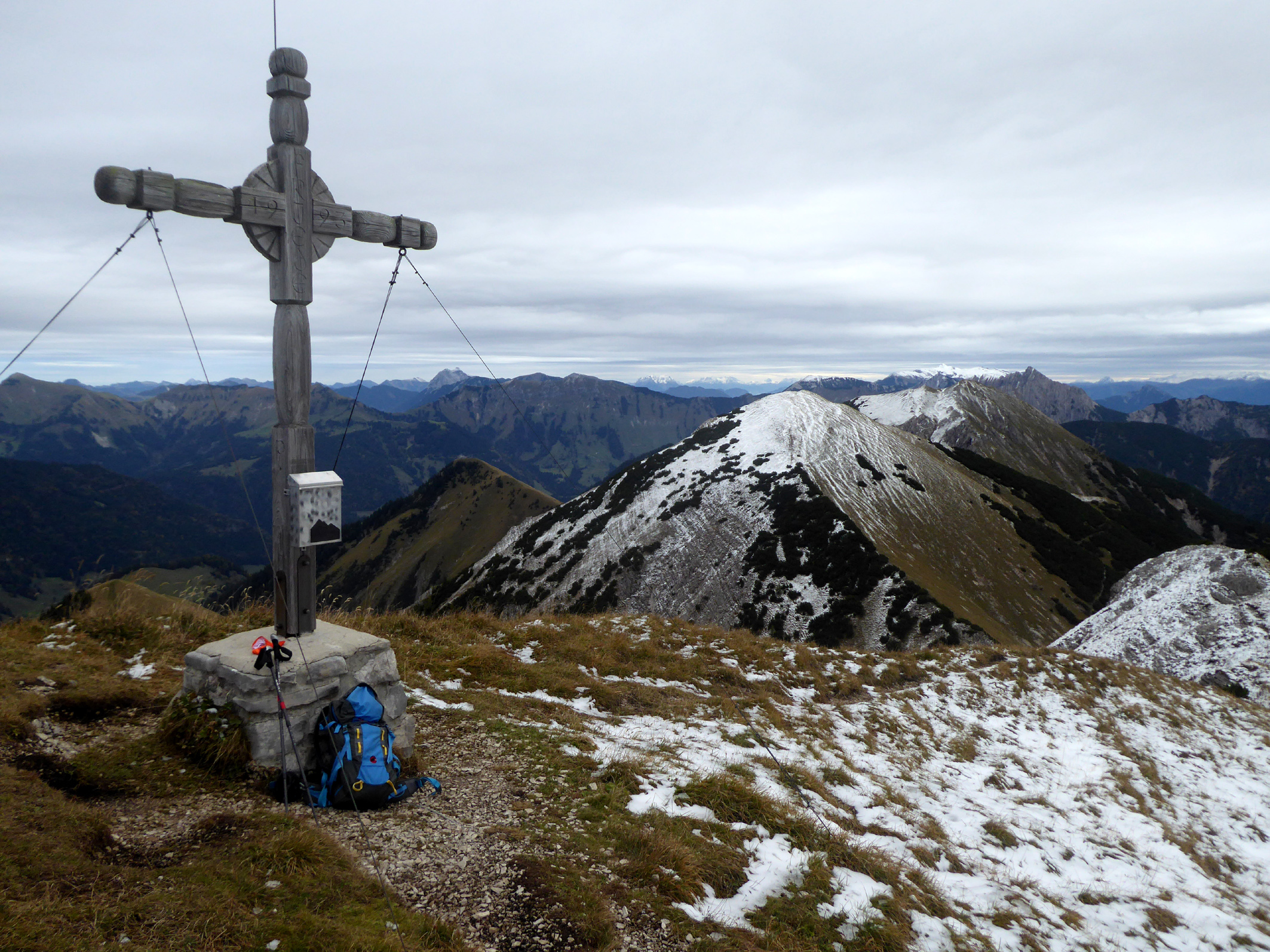 Tourenverhältnisse: Super Herbsttour. Ab 1900 m etwas Schnee, aber kein Problem - bestens begehbar. VGl. https://www.tourentipp.com/de/…schbank-Bergtour_618.html