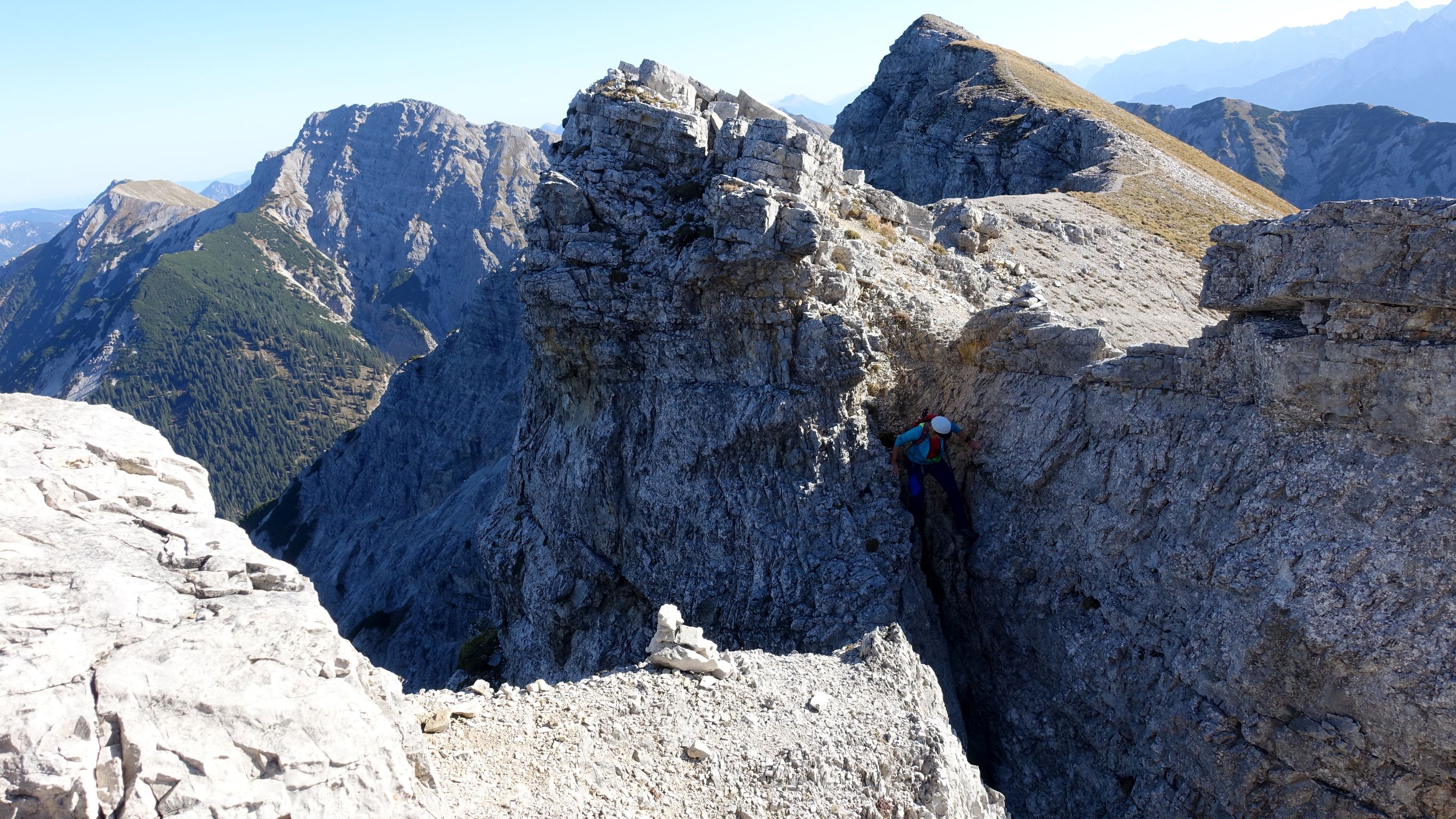 Gefahreneinschätzung: z.T. ausgesetzt, Schrofengelände, Kletterstellen max. II