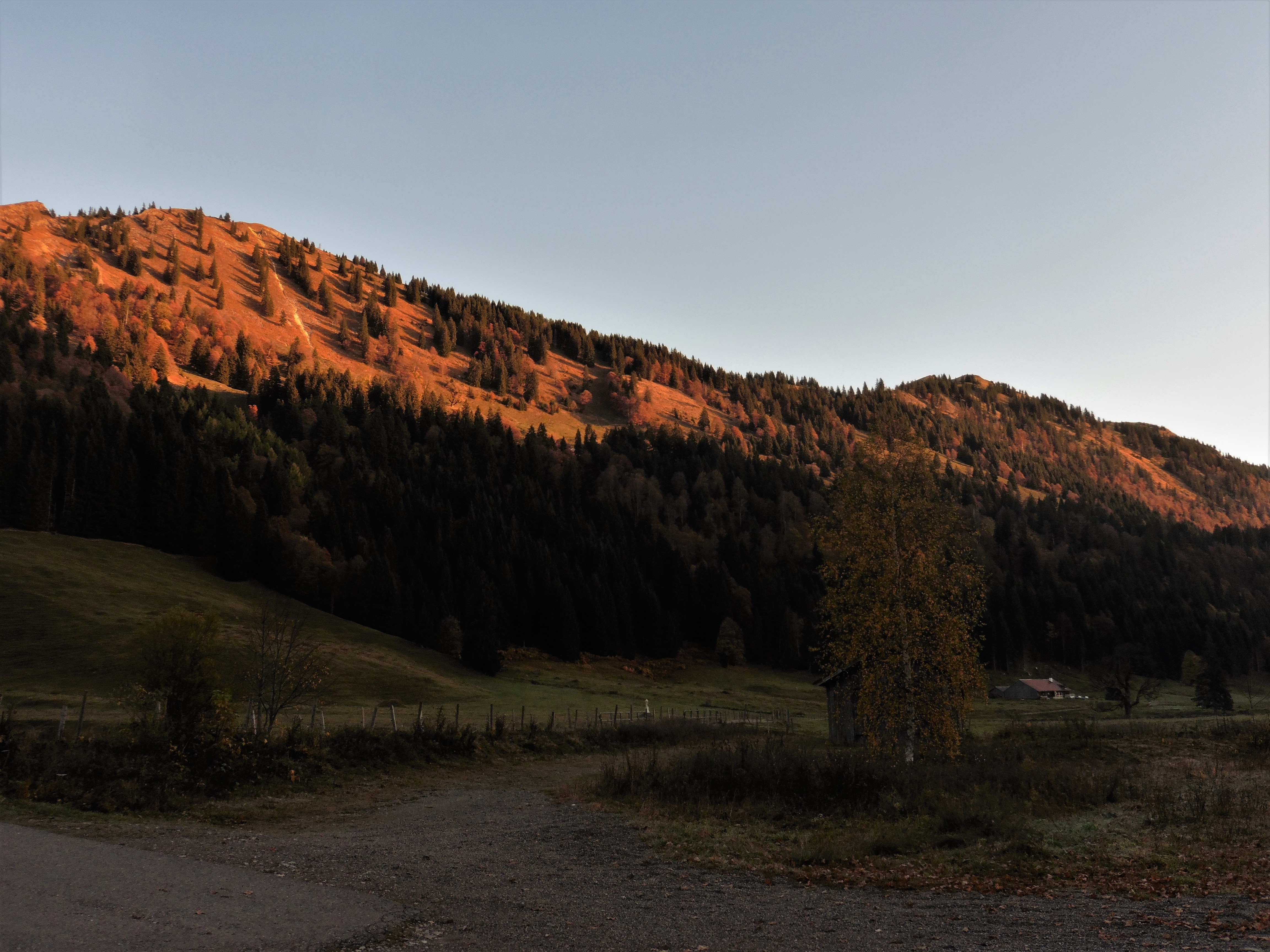 Sonstiges: von der Hinteren Aualpe (großer Parkplatz) immer steil nach oben aufs Rindalphorn; von dort am Grat über den Gelchenwanger Kopf hinunter in die Brunnenauscharte und weiter auf den Hochgrat; vom Hochgrat gibt es einen direkten Abstieg zur Scheidwangalpe im Gunzesriedertal, da auch dieser stark frequentiert war, wählte ich die einsame Variante über die Südliche Lauchalpe hinunter in den Obergelchenwanger Tobel; von dort stieg ich 300 Hm hinauf auf den Leiterberg und dann gings auf einer Forststraße hinunter zur Scheidwangalpe; dort hatte ich am Morgen mein Rad deponiert und konnte so die letzten ca. 260 Hm bergab genießen;