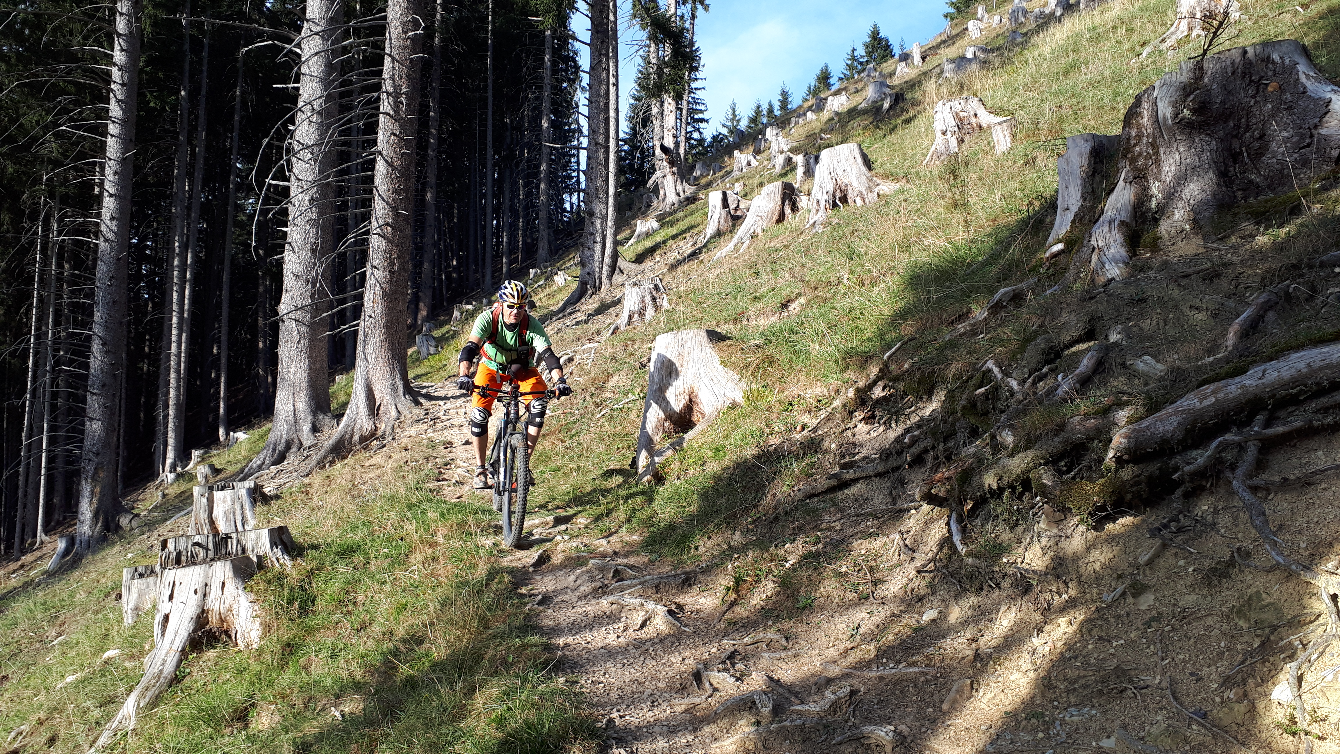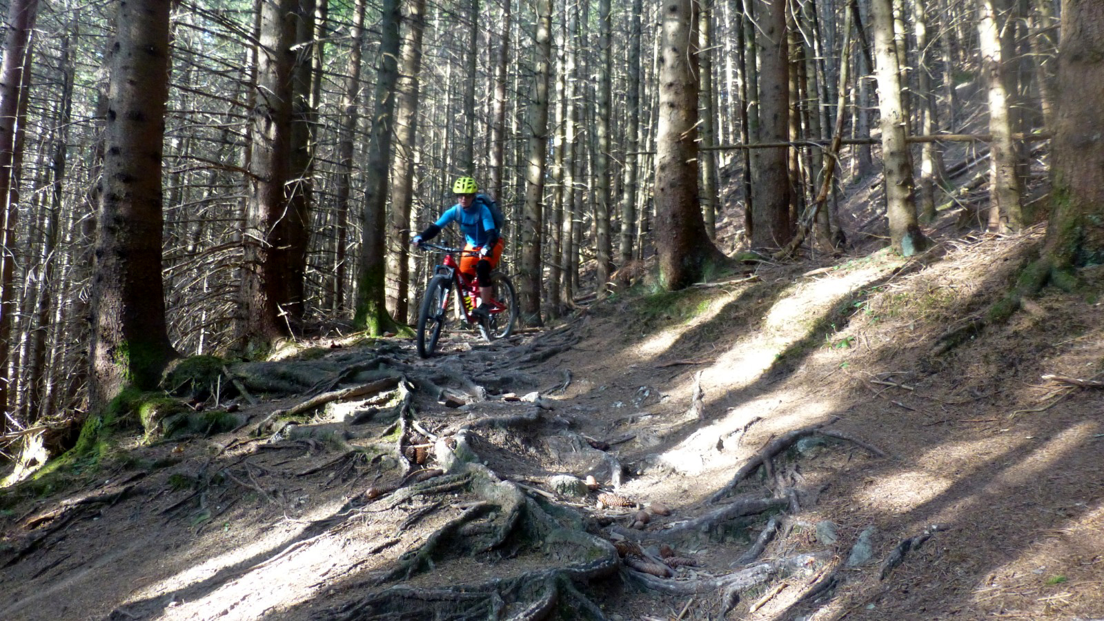 Gefahreneinschätzung: Wurzeltrail bei Nässe vermutlich unangenehm