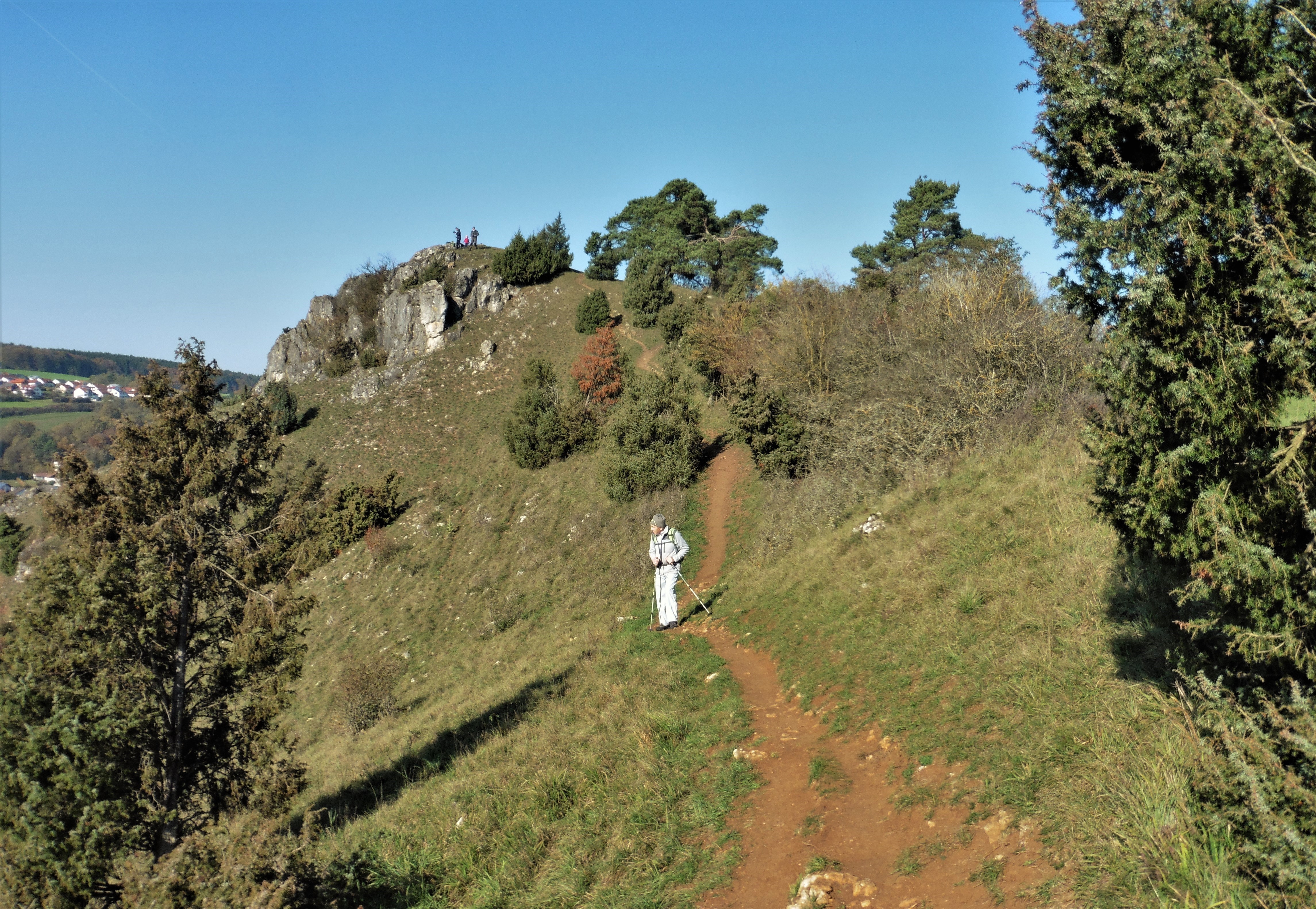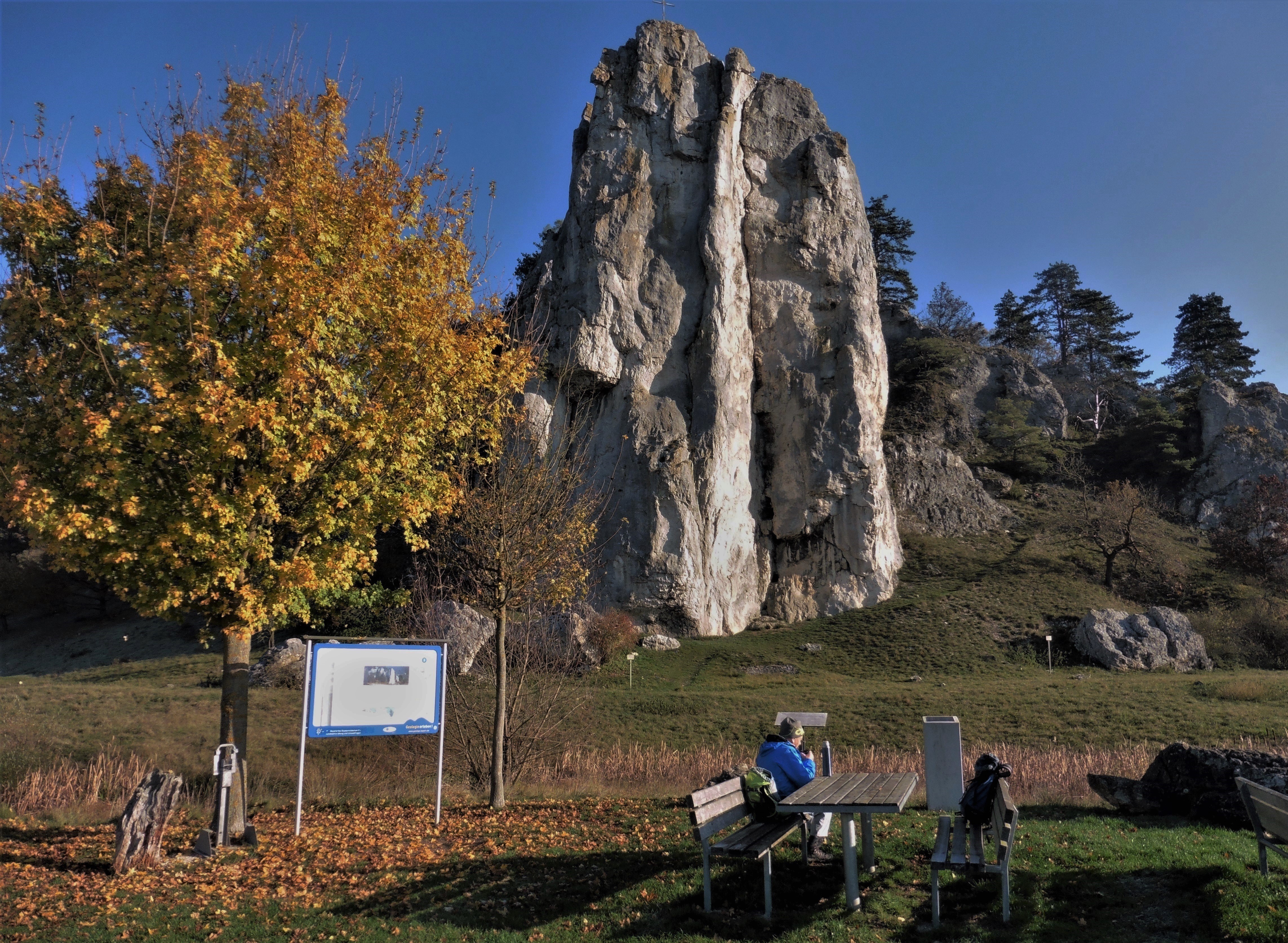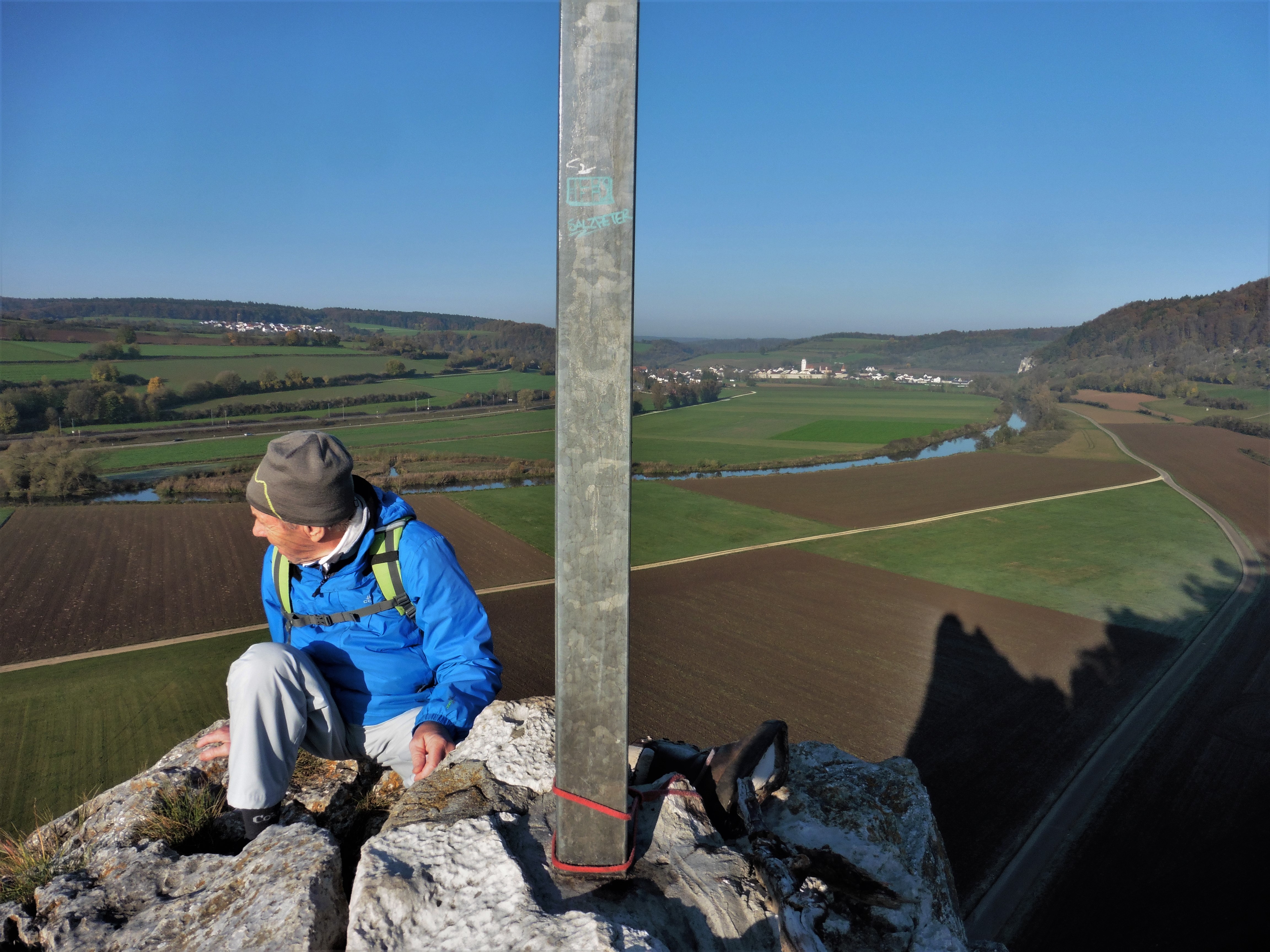 Sonstiges: die Wetterprognose - Regen im Alpenraum, Sonne in der Donau-Alb-Region - hat sich bewahrheitet; nach der Besteigung des Burgsteins wanderten wir von Dollnstein über Konstein, Wellheim und Aicha im steten Auf- und Ab zurück nach Dollnstein; landschaftlich schöne Wanderung im Urdonautal mit teils mediterranem Flair;