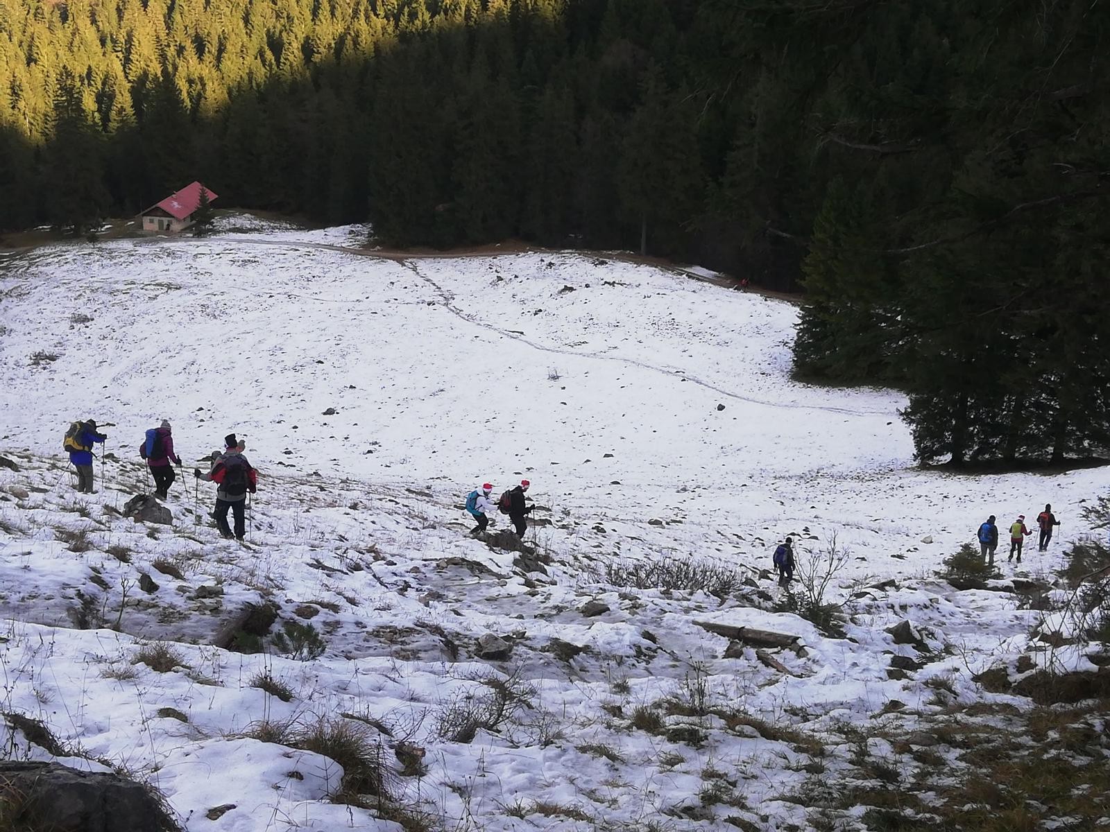 Sonstiges: Von Pessenbach auf dem Weg 454 zur Orterer Alm und weiter zur Pessenbacher Schneid (= Sattel zwischen Rabenkopf und Glaswand). Auf dem Weg deutlich weniger Eis als auf der Forststraße, die oberhalb der beiden Schlepplifte durch die Nordhänge hochführt. Zwischen Alm und Sattel oft eisiger Steig. Mann kann dem Eis aber meist im Schnee oder auf dünnen aperen Streifen ausweichen. Auf dem Sattel leichter Südwind, sonnig und angenehm warm.