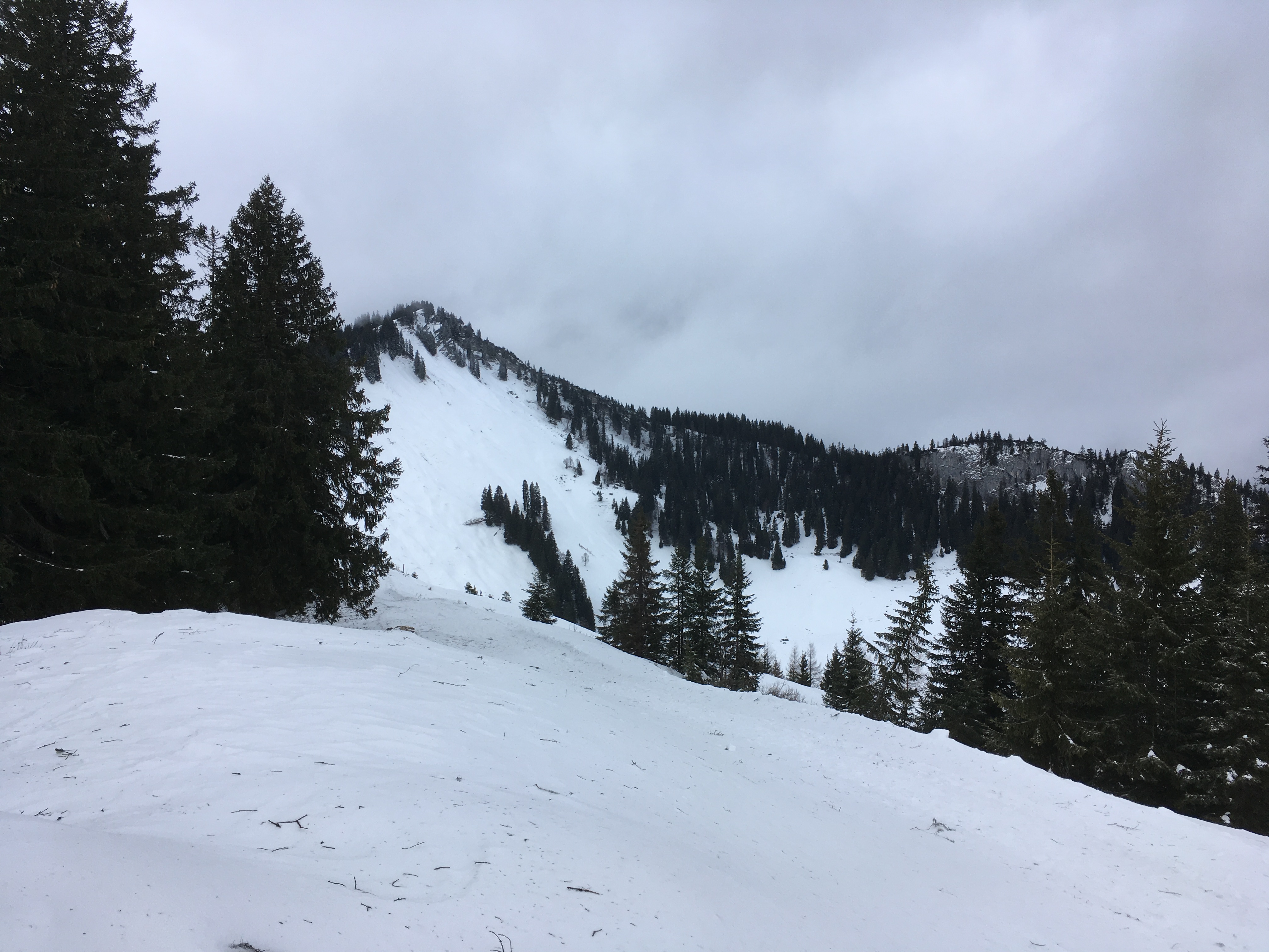 Tourenverhältnisse: auf der Piste natürlich genug Schnee von unten weg, im freien Gelände ist es sehr unterschiedlich (starker Windeinfluss) und der Schnee unten durch den Regen auch recht nass; Zwischenabfahrt Kurvenlift ging