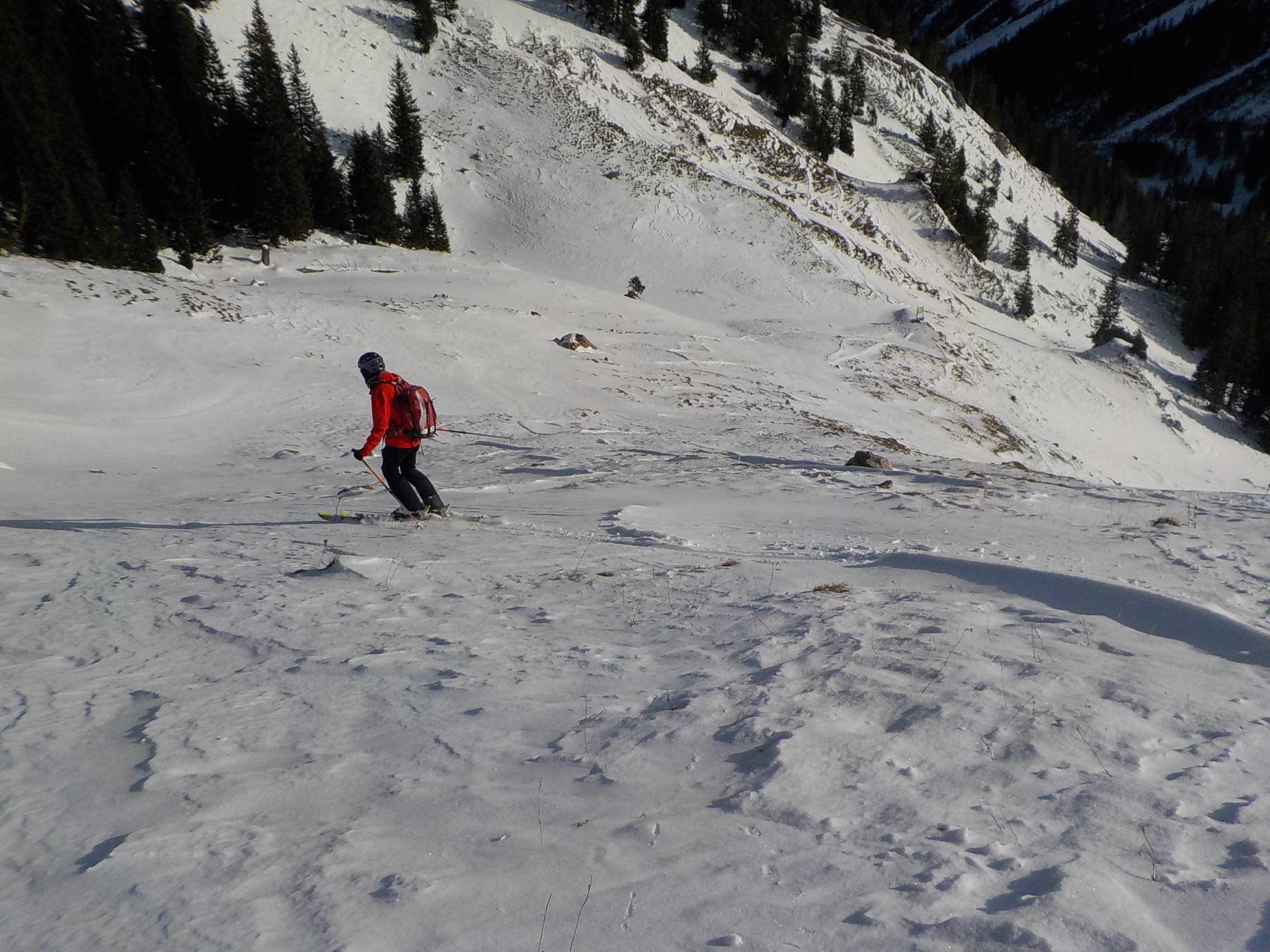 Tourenverhältnisse: Wie Bernhard Admin es beschreibt, ist der Lochgraben halbwegs gehbar. Wir waren am Tanzeck und sind dann eine Rinne zur Krottentaler Alm abgefahren. Die übliche Hauptabfahrt dorthin geht nicht. Weiter unten geht es ganz gut. Der Schnee wechselt oft zwischen windgepresst und weich. Weiter dann zur Taubensteinbahn Bergstation. Die Abfahrt über den oberen Lochgraben ging erstaunlich gut. Im unteren Lochgraben muß man sich runter mogeln.