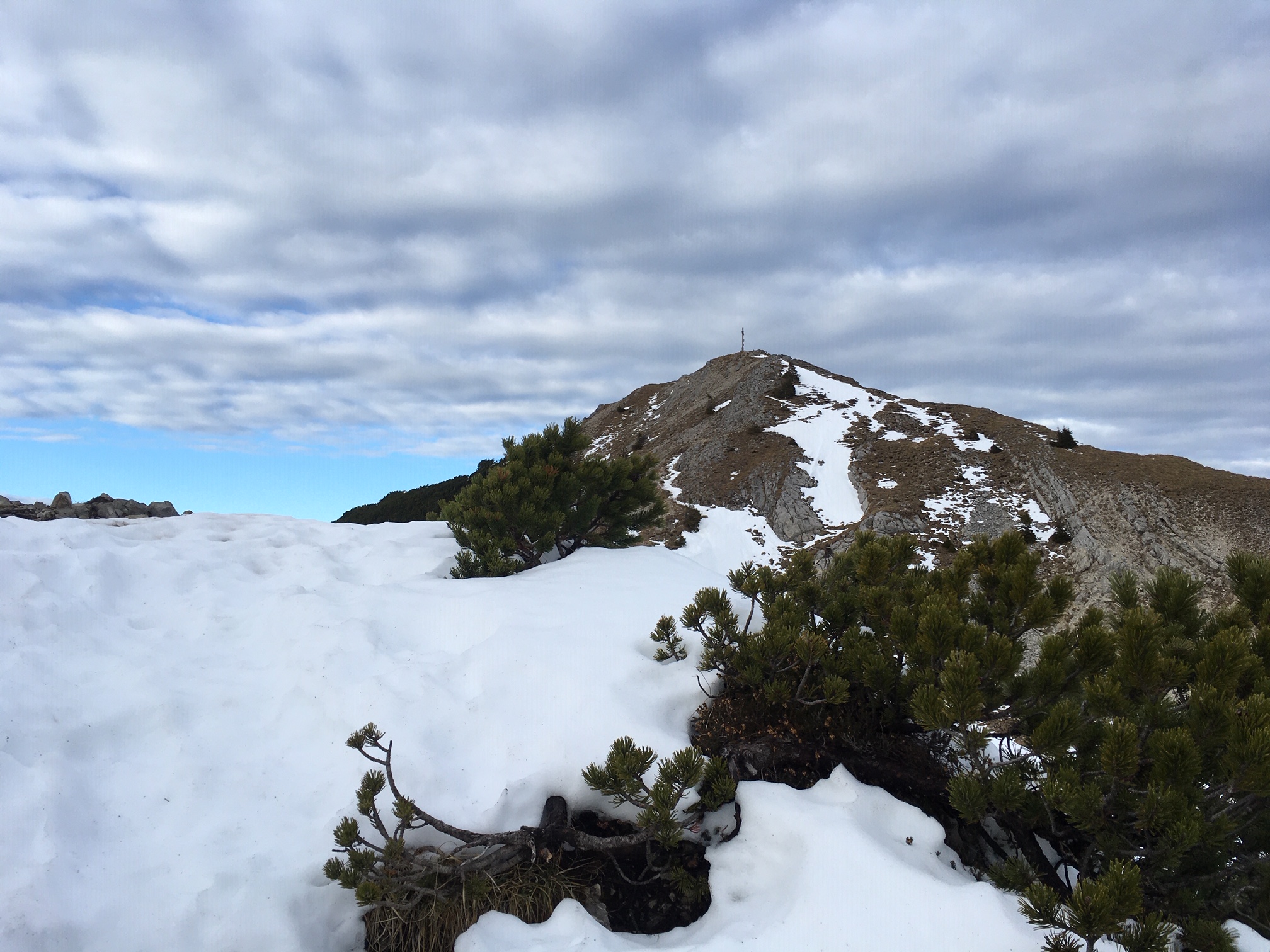Tourenverhältnisse: Schneefrei innerhalb des Waldes, danach gespurter weicher Schnee. Bis auf den vierbeinigen Kameraden war niemand unterwegs. Sofern es nicht schneit, nur zu Fuß möglich.