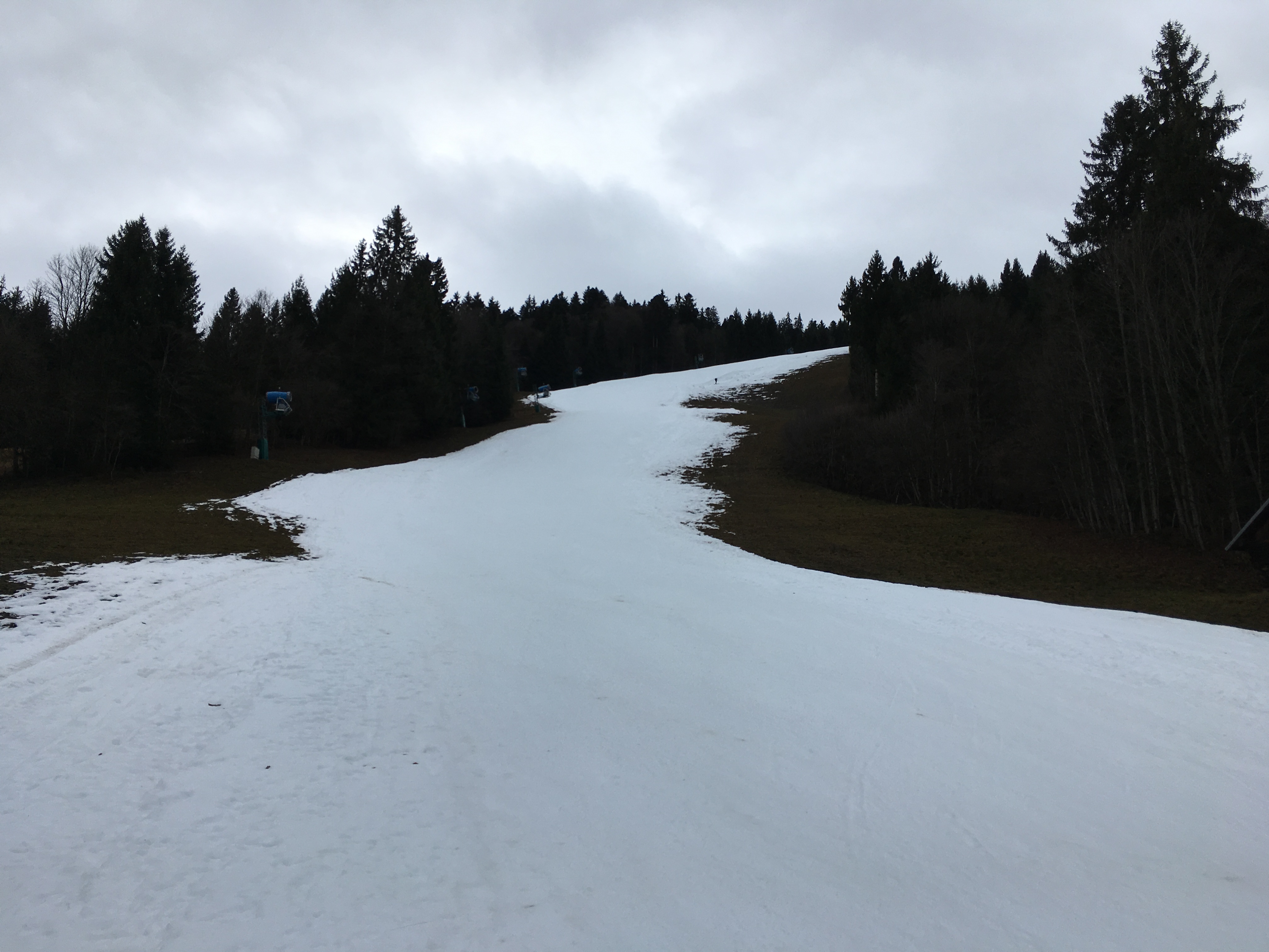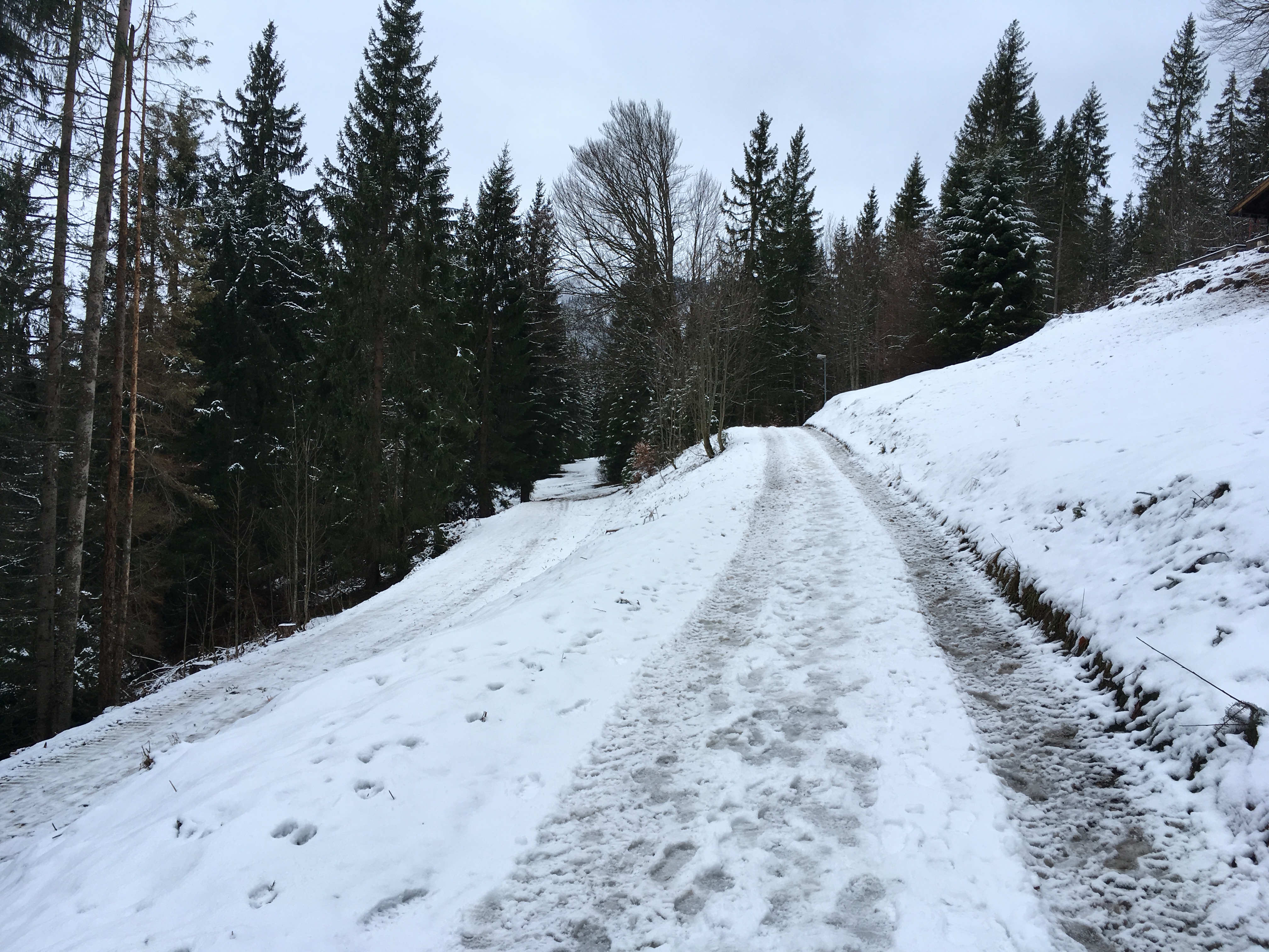 Bei der Variante über das Bayernhaus im Wald sehr wenig Schnee: