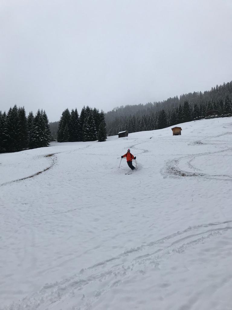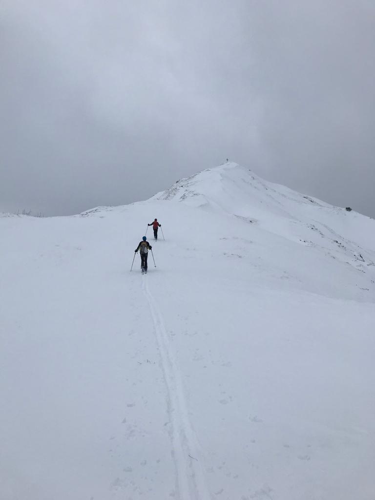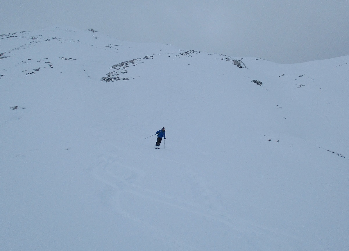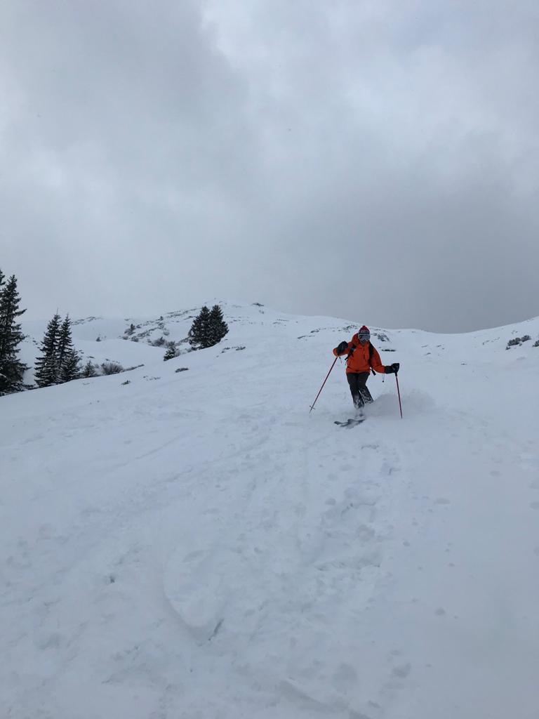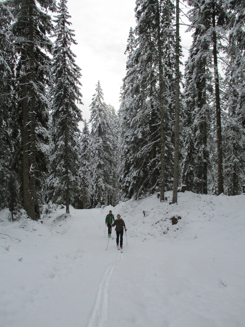 Tourenverhältnisse: Na ja .. bis .. gut / Etwas Neuschnee von 5 cm im Tal bis 20cm am Berg / Aufstieg teils auf Fortsweg bis Raazalpe / Gipfelgrat teils abgeblasen teils verwechtet / Abfahrt bis Ehenbichler Alpe ganz fein : Pulver auf tragendem Altschnee / danach über Forstweg / drunten ging der leichte Schneefall in Regen über und vernichtet wieder die Neuschneeauflage !
