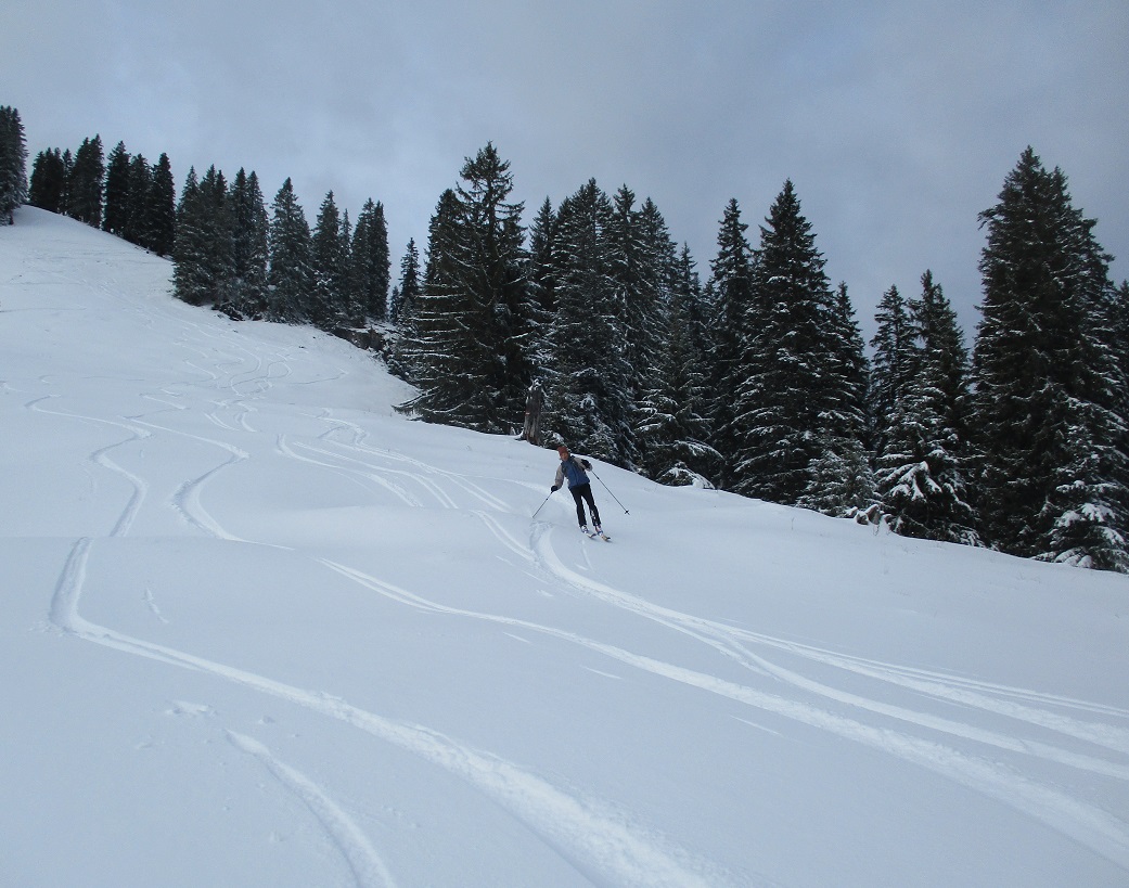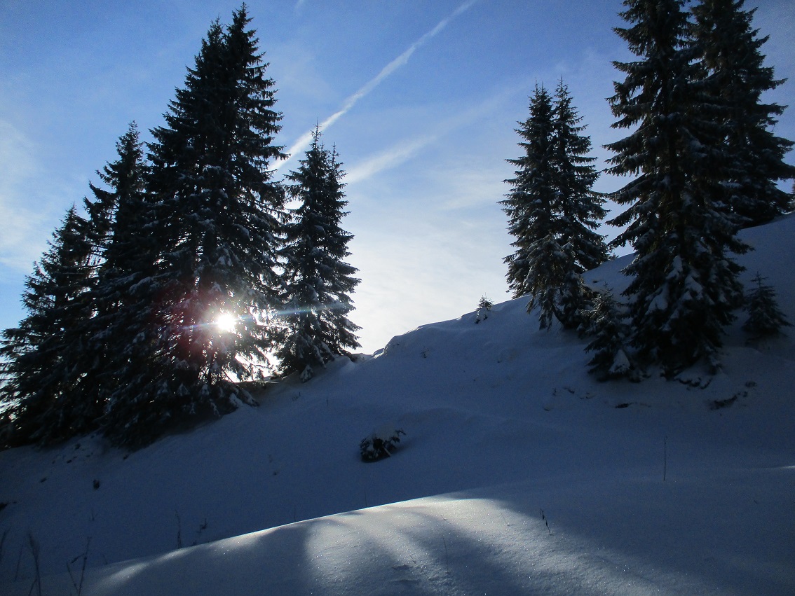 Tourenverhältnisse: Gut / ab 1200 m pulvriger Neuschnee ca. 20 cm / ab Haushamer Alm Spurarbeit / Einsam war's heut / Skitourengeherauflauf am Roßkopf / Abfahrt über freies Skigelände bis auf das unterste Stückerl