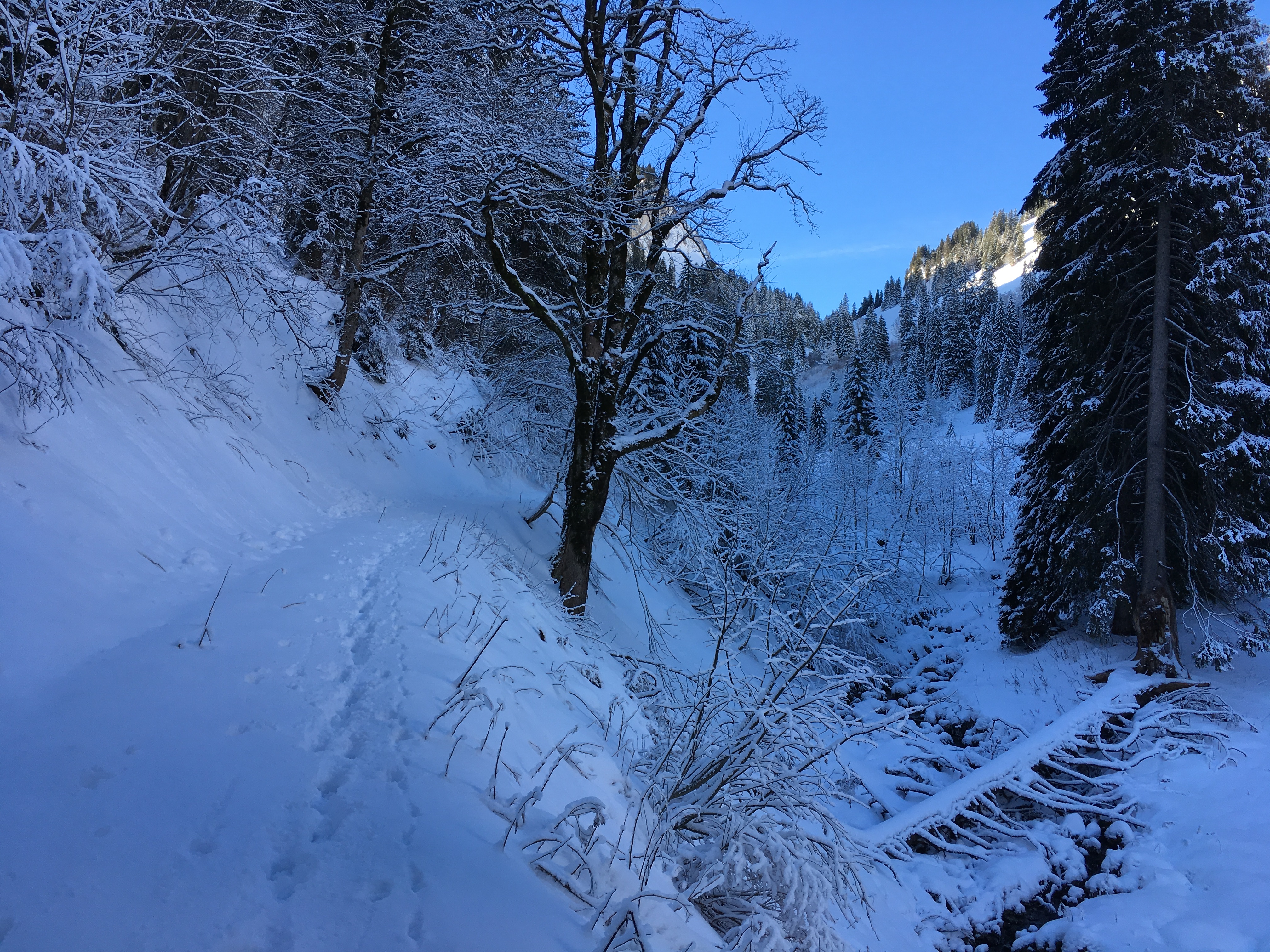 Auf dem Weg kurz vor der ehemaligen Bäcken-Alm - hier gute Schneelage: