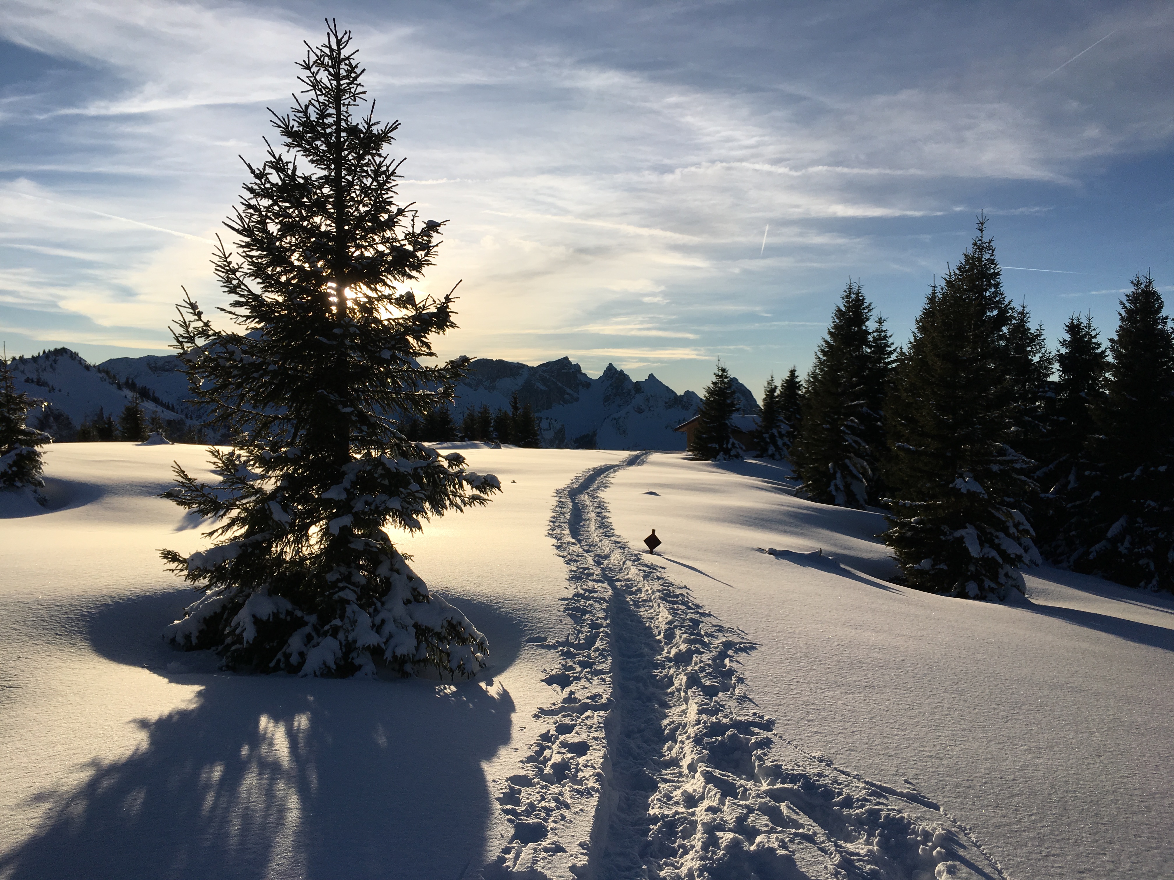 Tourenverhältnisse: Ganz unten max. 2 cm Schnee, zum Glück zusammengefahren. Auf der Forststraße nimmt es bis auf ca. 10 cm zu. Die Waldpassage nach Ende der Forststraße geht teilweise nur im Aufstieg mit Skiern (min. ein Mal abschnallen; war zudem am Nachmittag recht ausgefahren). Ab der ehemaligen Bäcken-Alm sehr gute Verhältnisse. Die Steilstufe gleich nach dem Bäckenalmsattel fordert dann noch mal (im Aufstieg wie der Abfahrt, da bruchharschig). Oberhalb landschaftlich ein Traum. Beide Gipfel gehen mit Skiern. Sägertal muss man ordentlich anschieben.