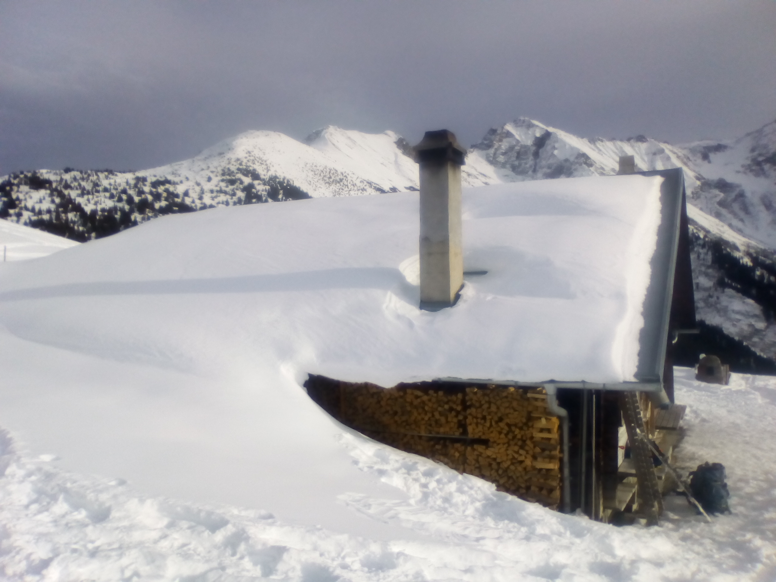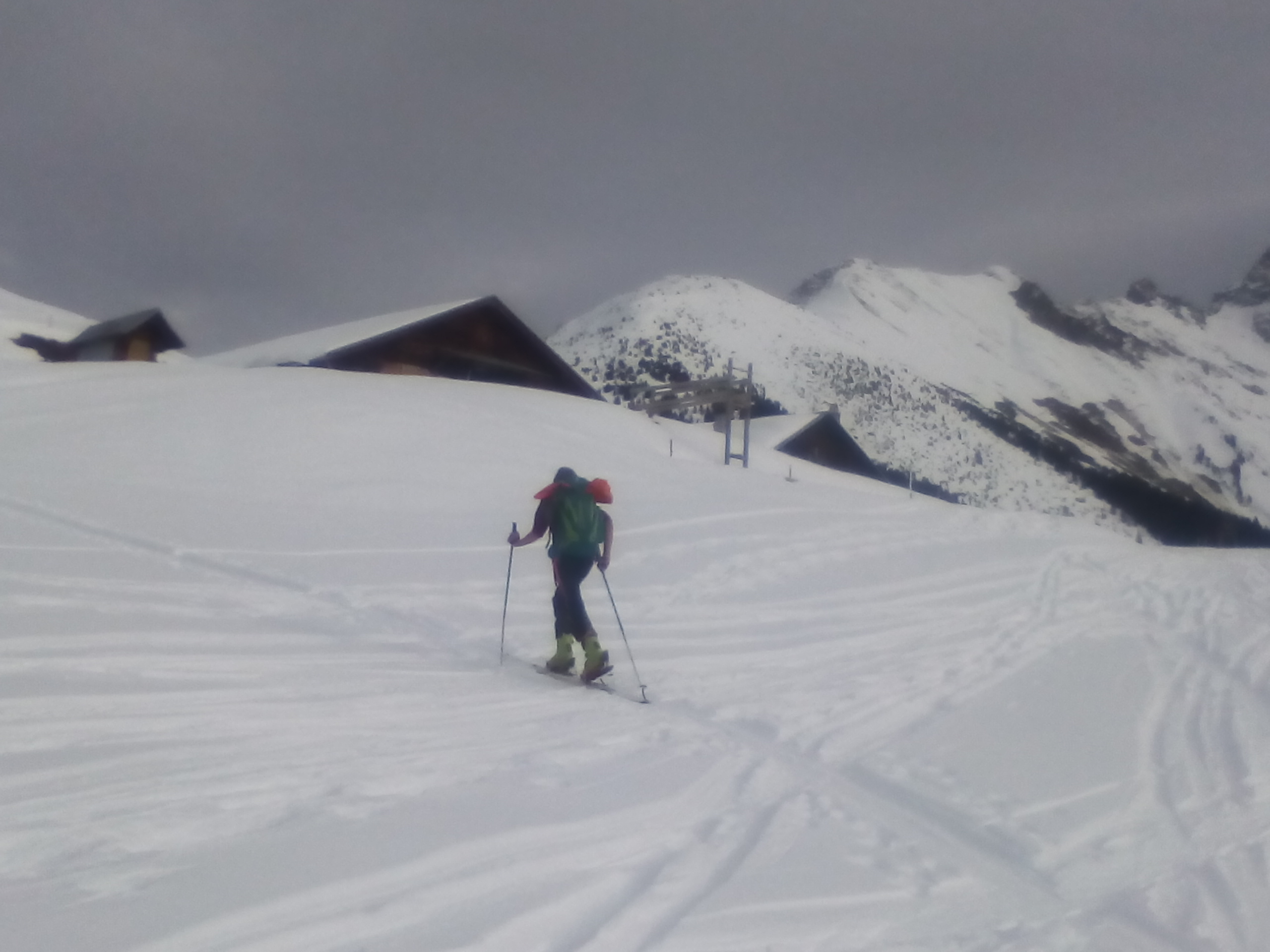 Tourenverhältnisse: Am Ausgangspunkt liegt gerade noch genug Schnee, dass man bis zum Parkplatz abfahren konnte. Ab ca 1400 m dann ausreichend Schneeunterlage. Ab ca 1500 m gesetzter Pulverschnee, darunter Bruchharsch