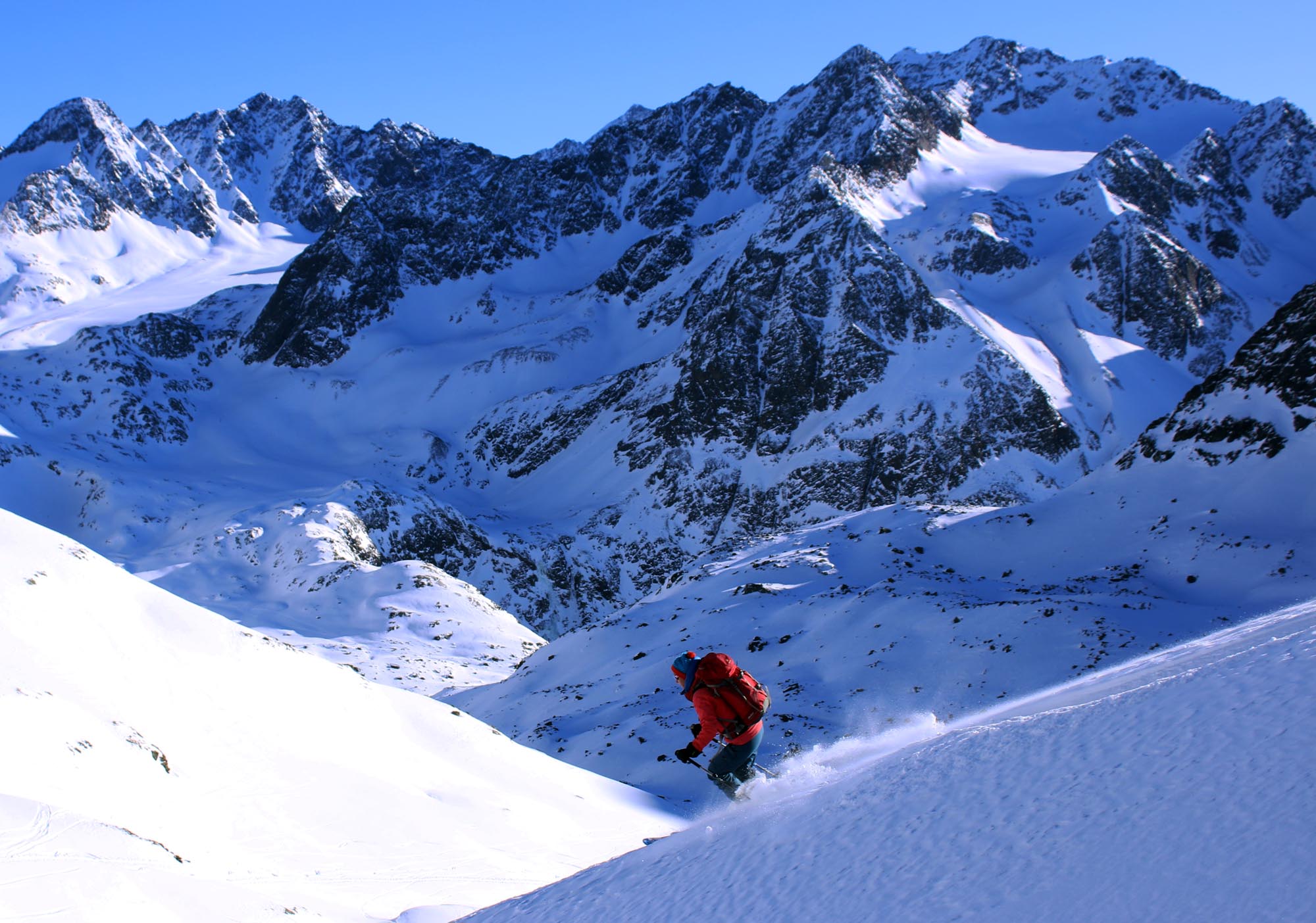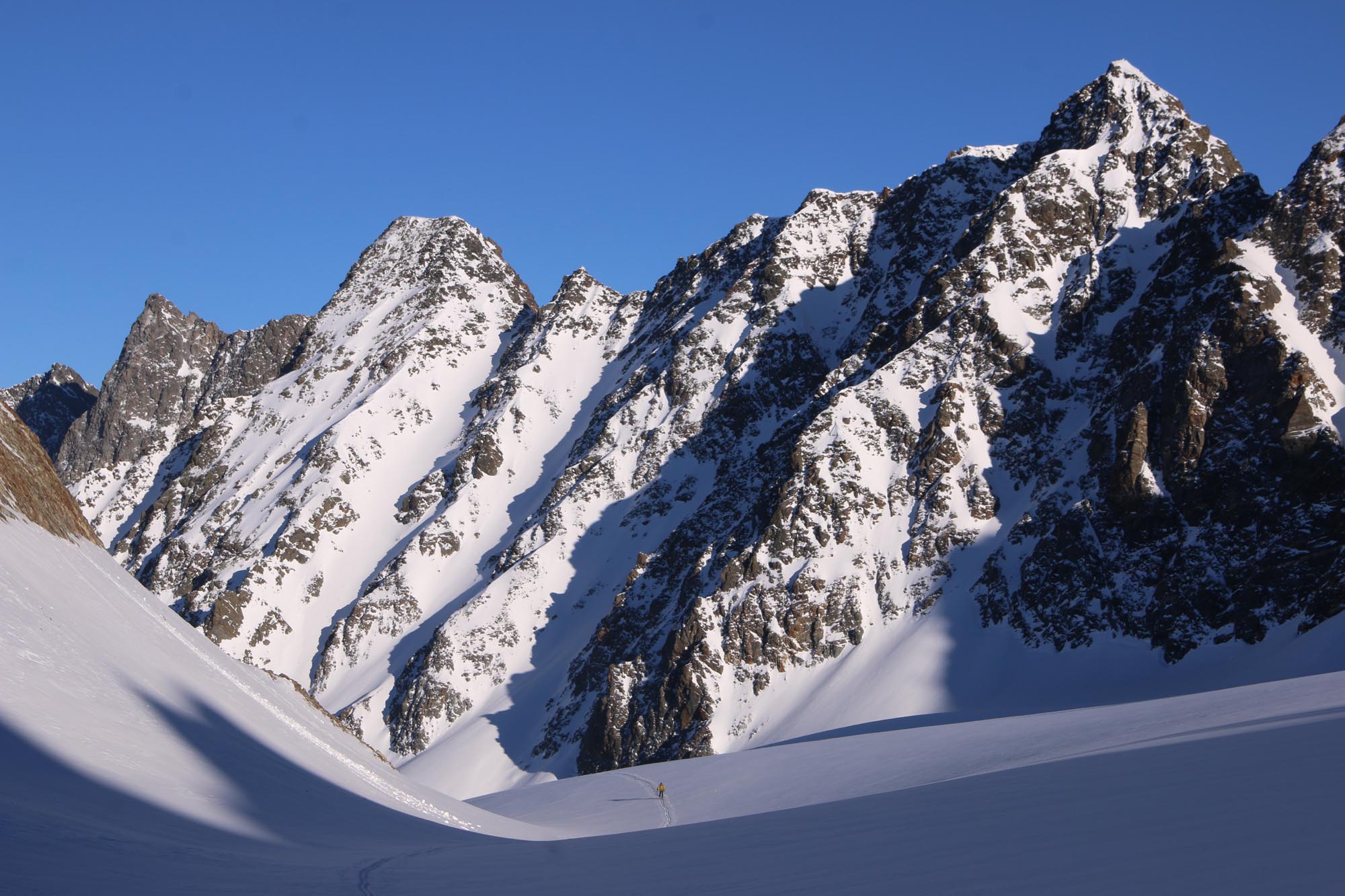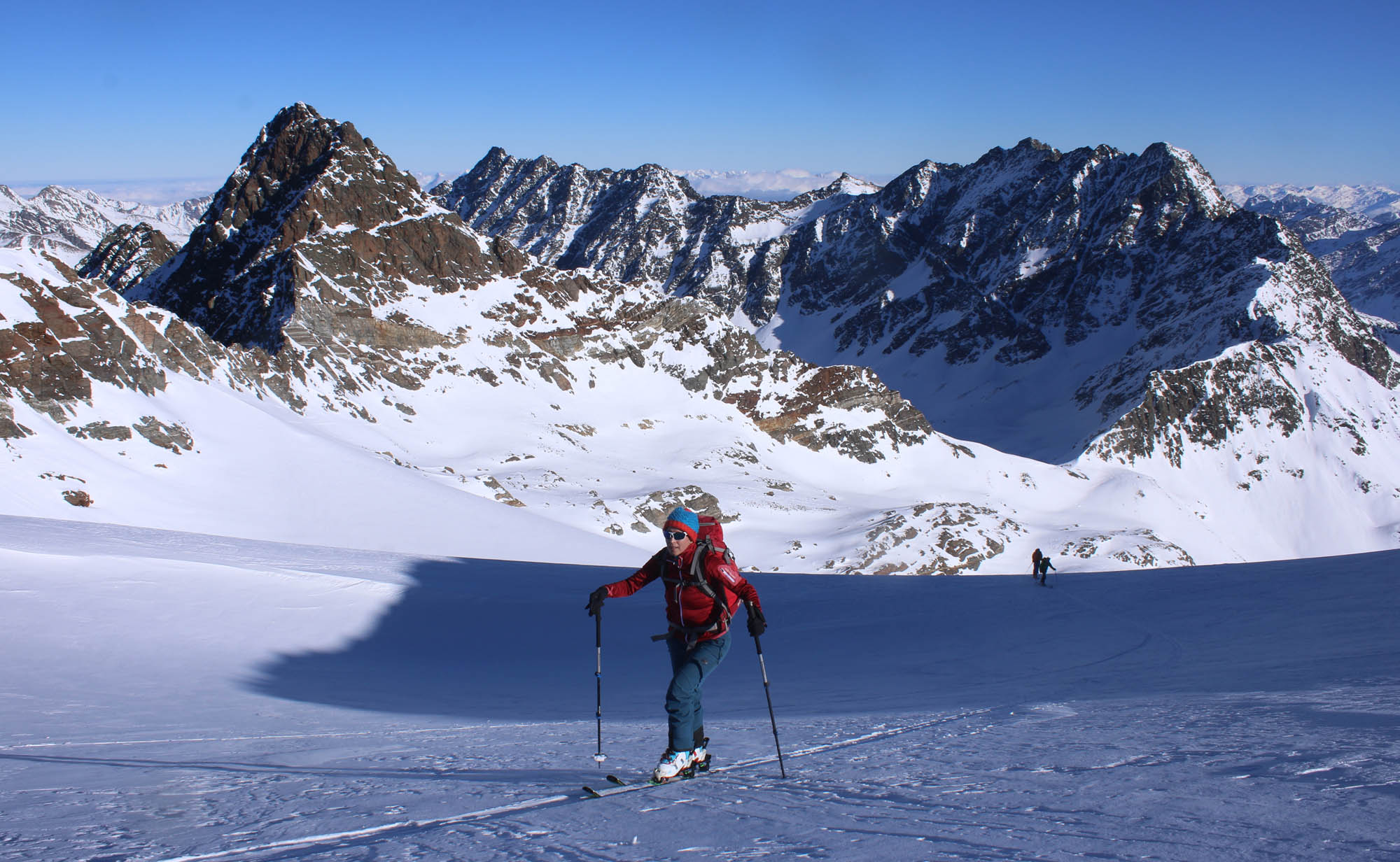 Tourenverhältnisse: Beim südseitigen Zustieg zur Winnebachseehütte hat auf dem schmalen Fahrweg zu Beginn gerade noch genug Schnee. Ab 1850 m ist die Schneealge dann ausreichend. Auch oberhalb der Winnebachseehütte ist die Schneelage zwar nicht üppig aber ausreichend. Der Bachfallenferner ist gut eingeschneit. Man muss jedoch schon im Blockgelände auf unter der Schneedecke "lauernde" Felsen achten. Nordseitig gibt es noch gesetzten Pulverschnee.Ähnliche Verhältnisse auch einen Tag später am Breiten Grieskogel. Hier ist der Gipfelkamm recht hart, da vom Wind geprägt.