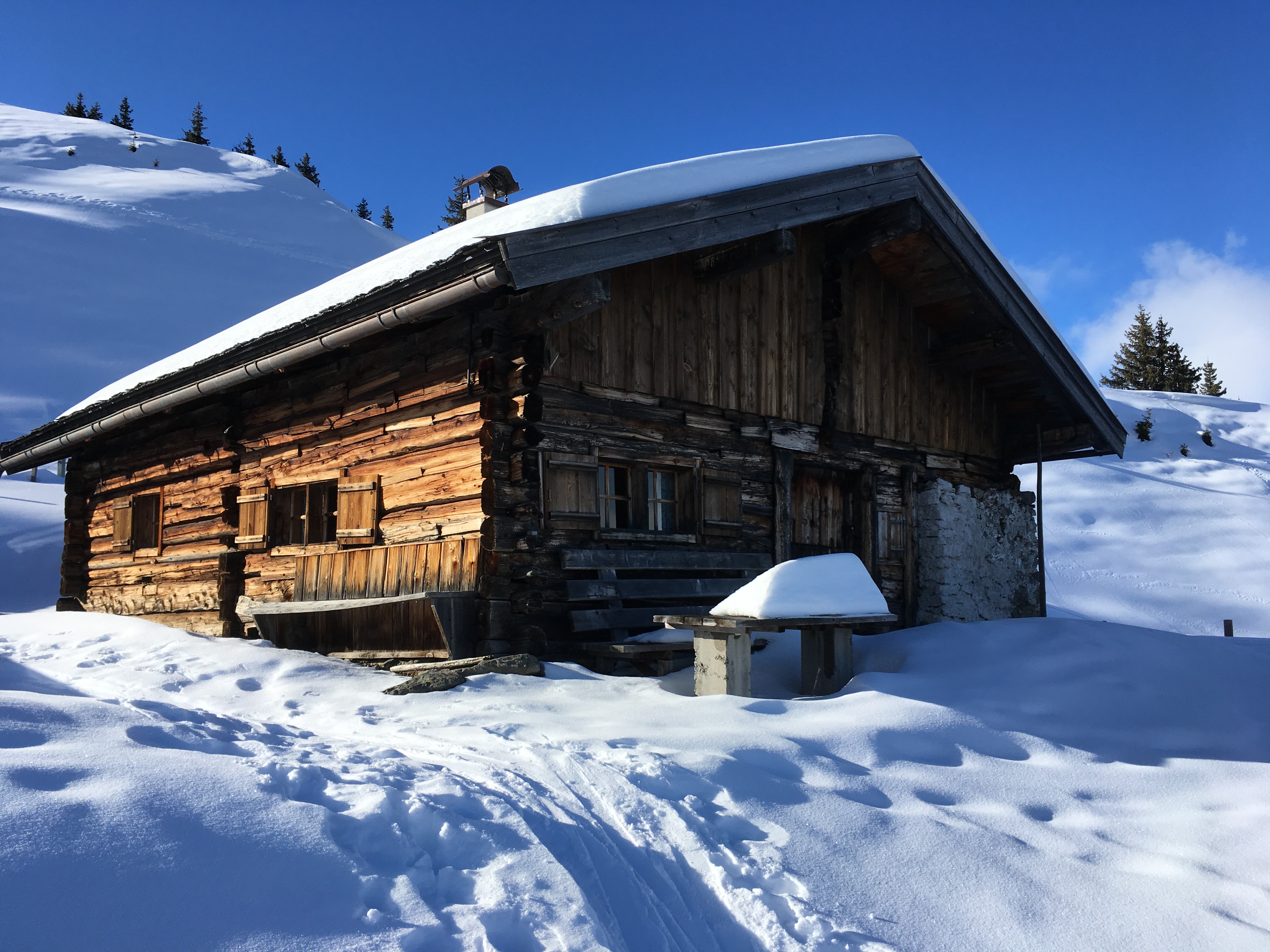 Schöne Almhütte am Wegesrand: