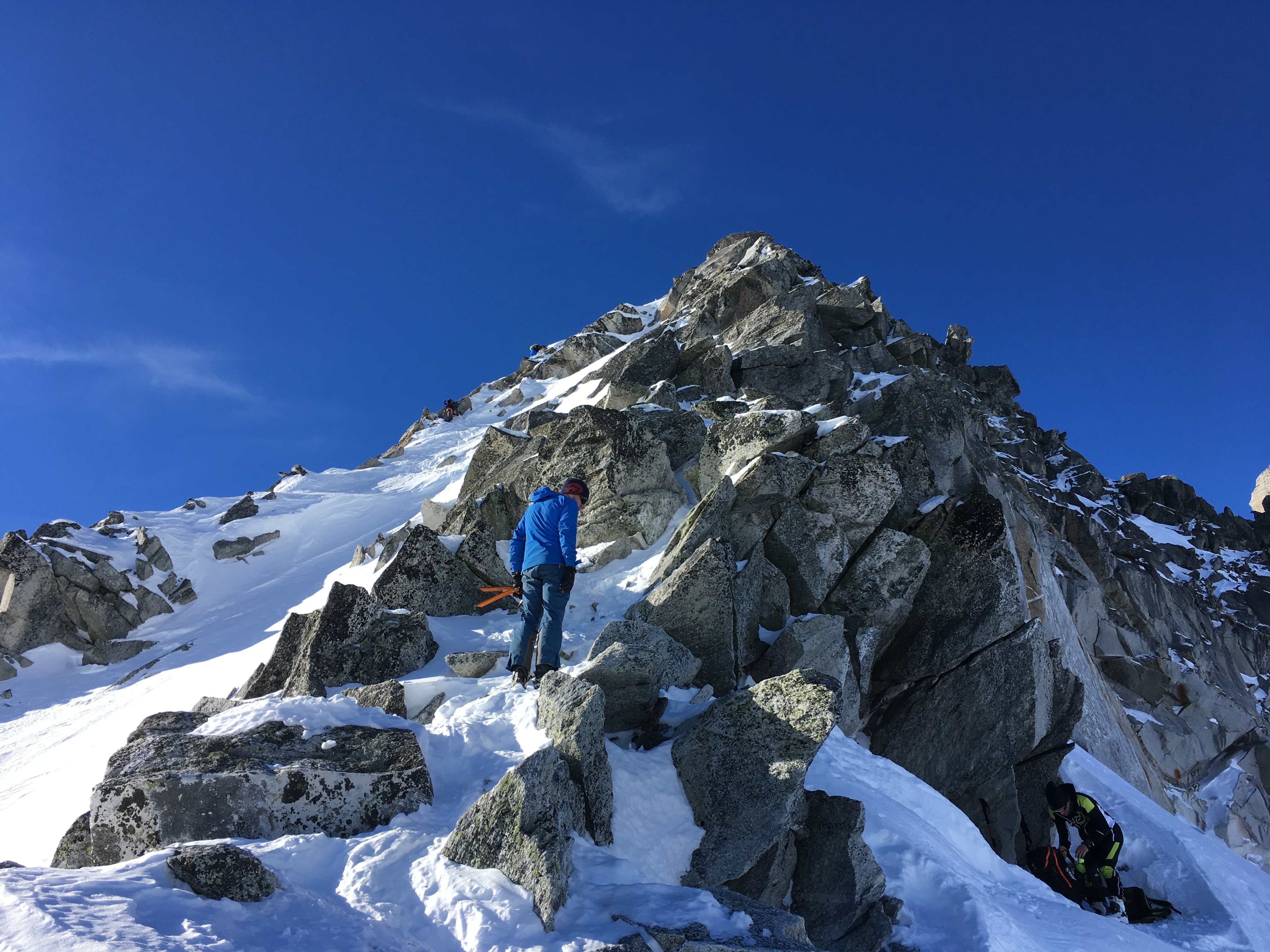 Gefahreneinschätzung: Absturzgefahr beim Gipfelanstieg - für diesen unbedingt Stahl-Steigeisen (keine Leichtsteigeisen) mitnehmen und Pickel; eine Stelle fand ich etwas unangenehm