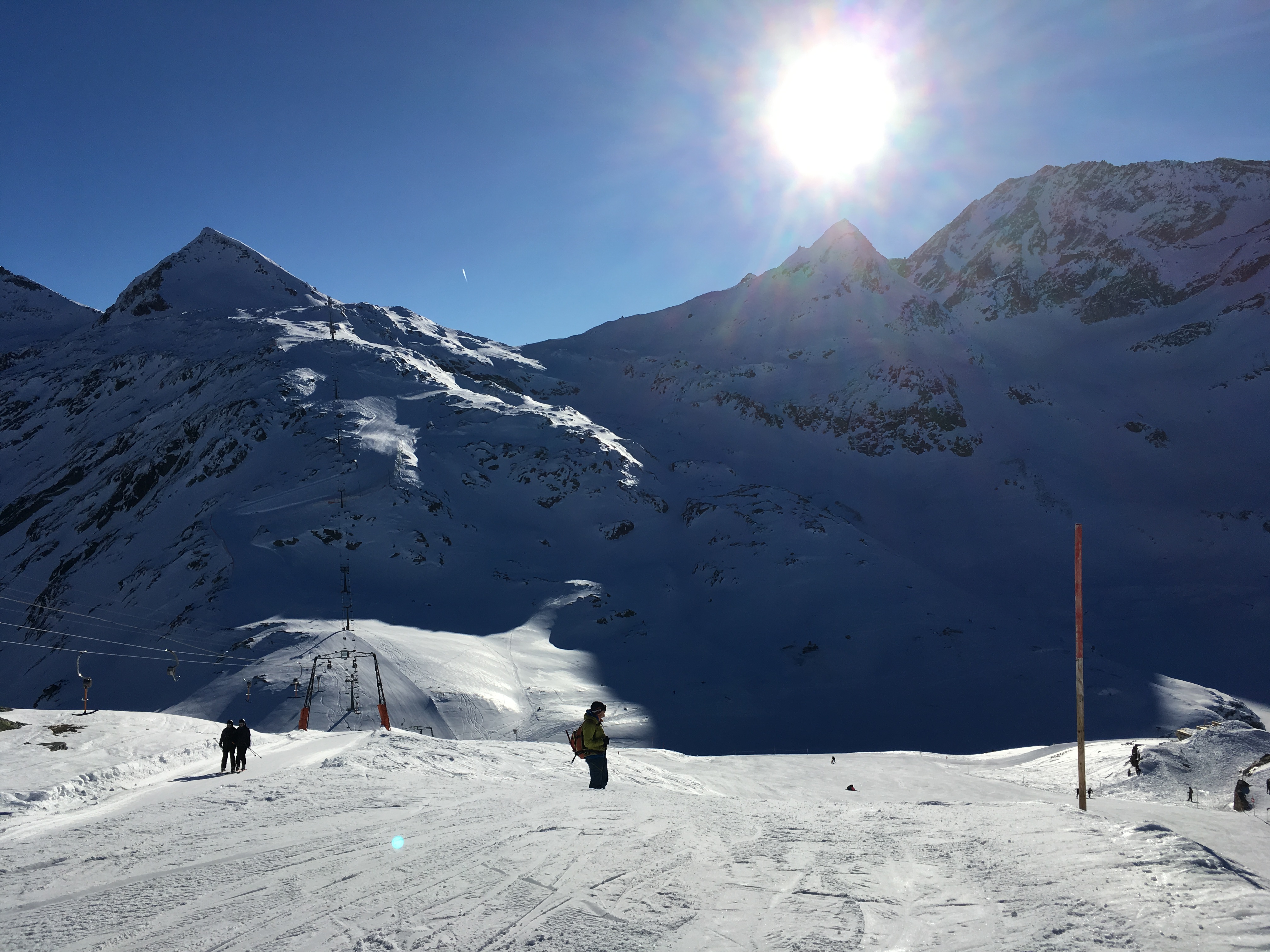 Sonstiges: In der Kolonne ging es ab der Rudolfshütte bzw. dem Weißsee hoch. Die meisten sind zum Stubacher Sonnblick gegangen, dieser ist aber oben erheblich freigeblasen - m.E. zur Zeit nicht so lohnend. Der Gipfelanstieg auf die Granatspitze ist halt nicht ganz ohne, daher hier weniger Betrieb. Für die Abfahrt haben wir eine Variante gewählt über das ehemalige Kalser Tauernkess (steile Einfahrt, ist nur bei sicheren Lawinenverhältnissen vertretbar). Dann mindestens 150 Hm Gegenanstieg zur Bergstation der Medelzkopf-SB. Medelzkopf selber ist oben abgeblasen, wurde aber auch gemacht (Skier müssten teilweise abgeschnallt werden).