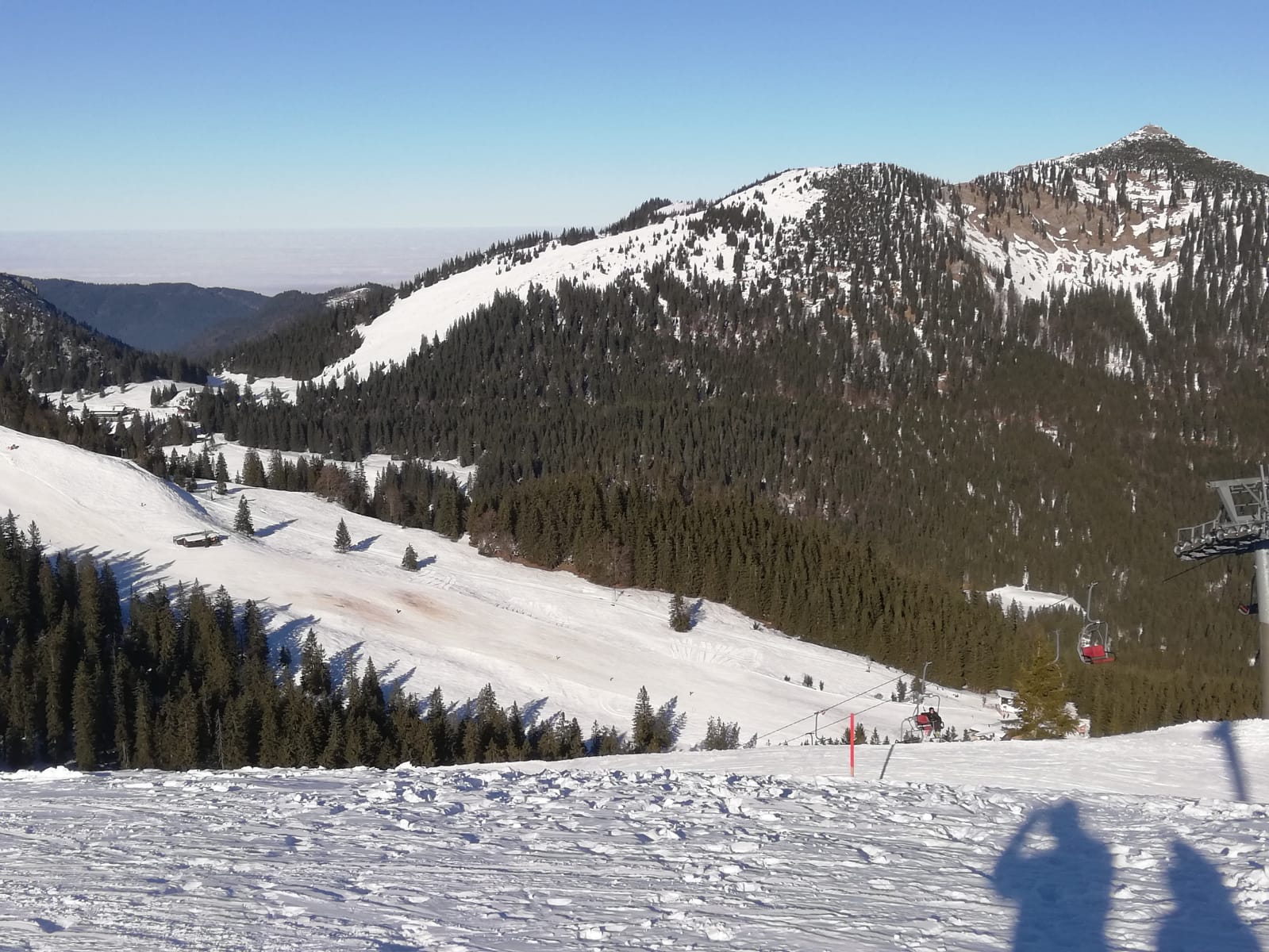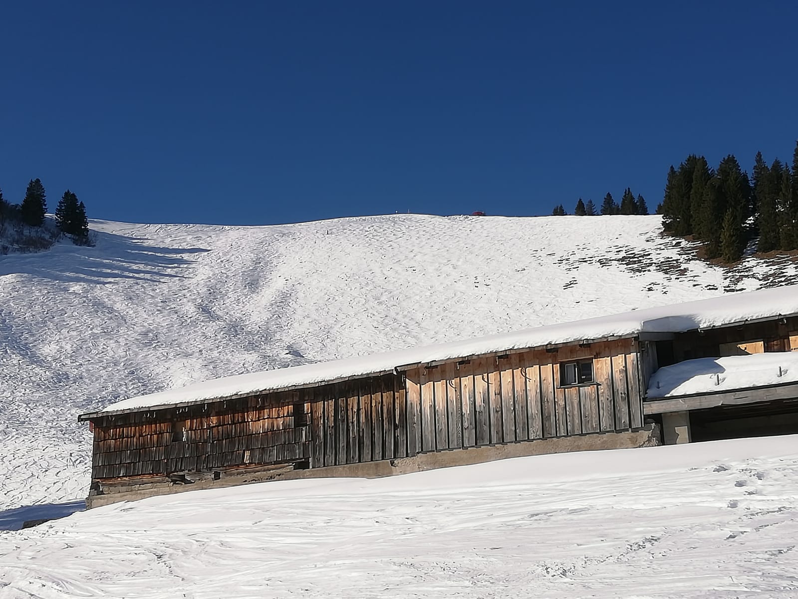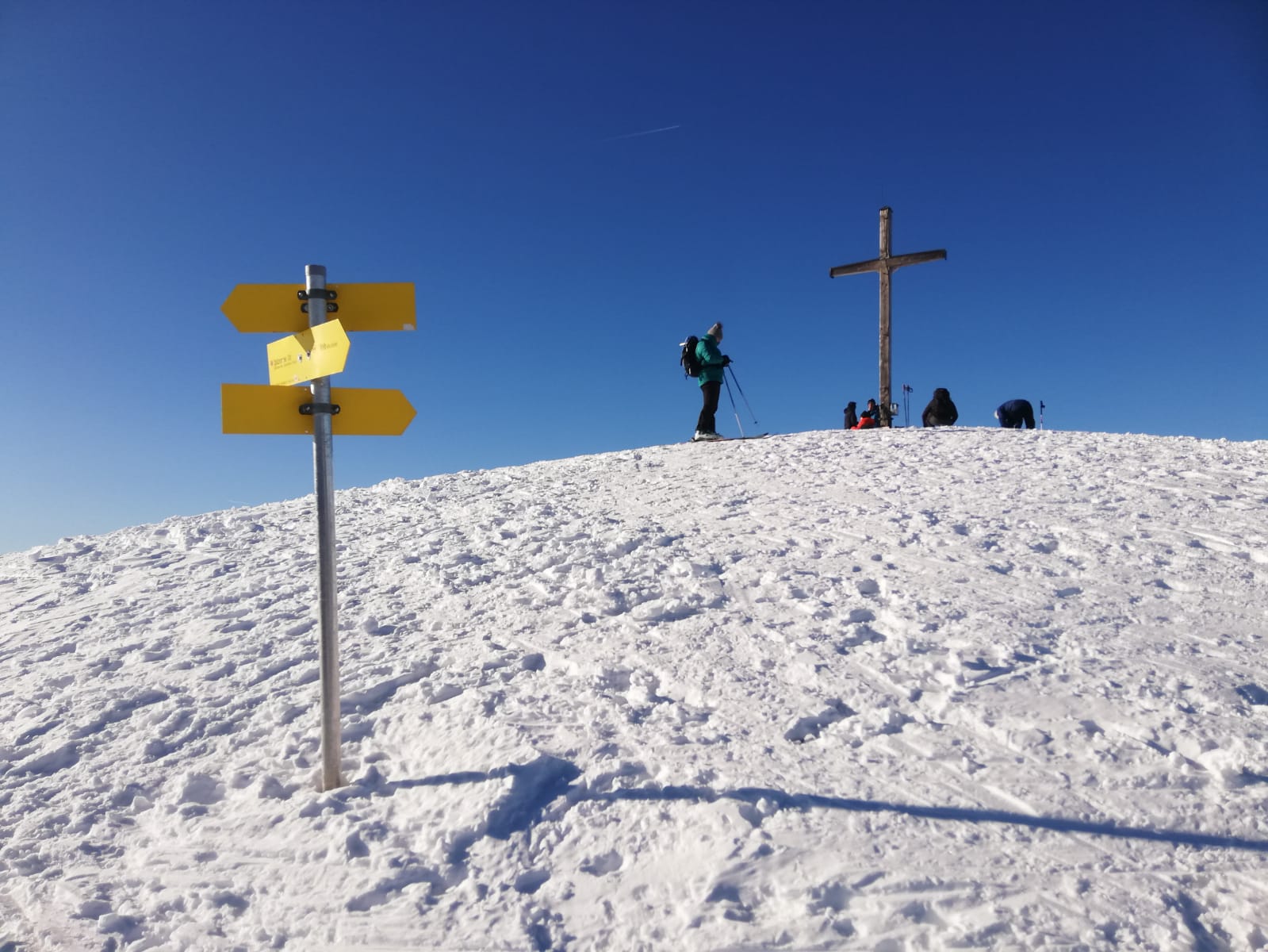 Tourenverhältnisse: Ordentlich. Aufgrund des abschreckende Berichts zum Hirschberg wählten wir wieder Mal das schneesichere Spitzinggebiet. An ein paar Stellen schauen Dreck oder Steine raus, diese sind aber gut zu erkennen. Fast Pisten mäßig eingefahren. Schnee am frühen Nachmittag sonnseitig weich, gut zu fahren. Im untersten Teil der Abfahrt einige eisige Stellen.
