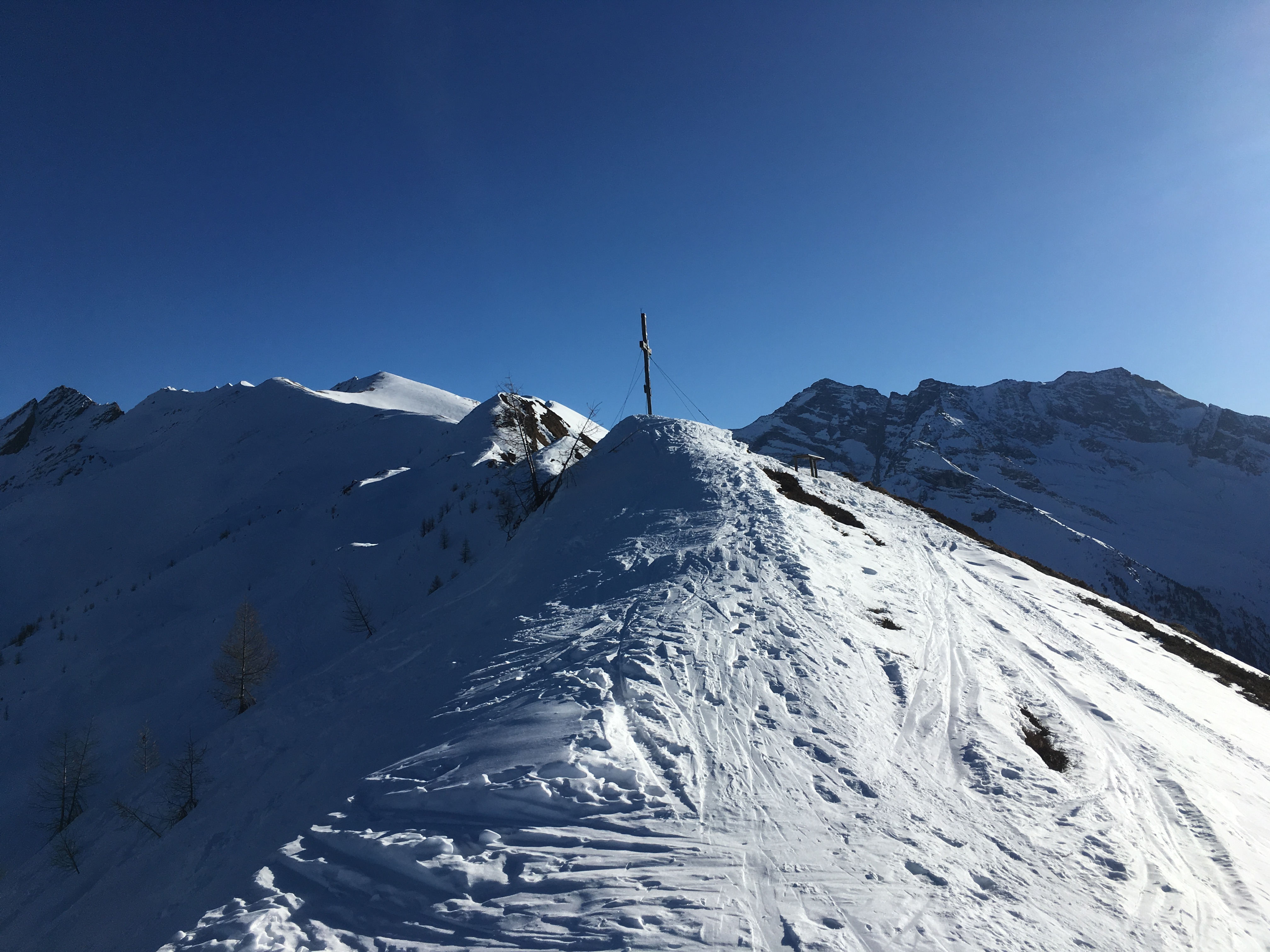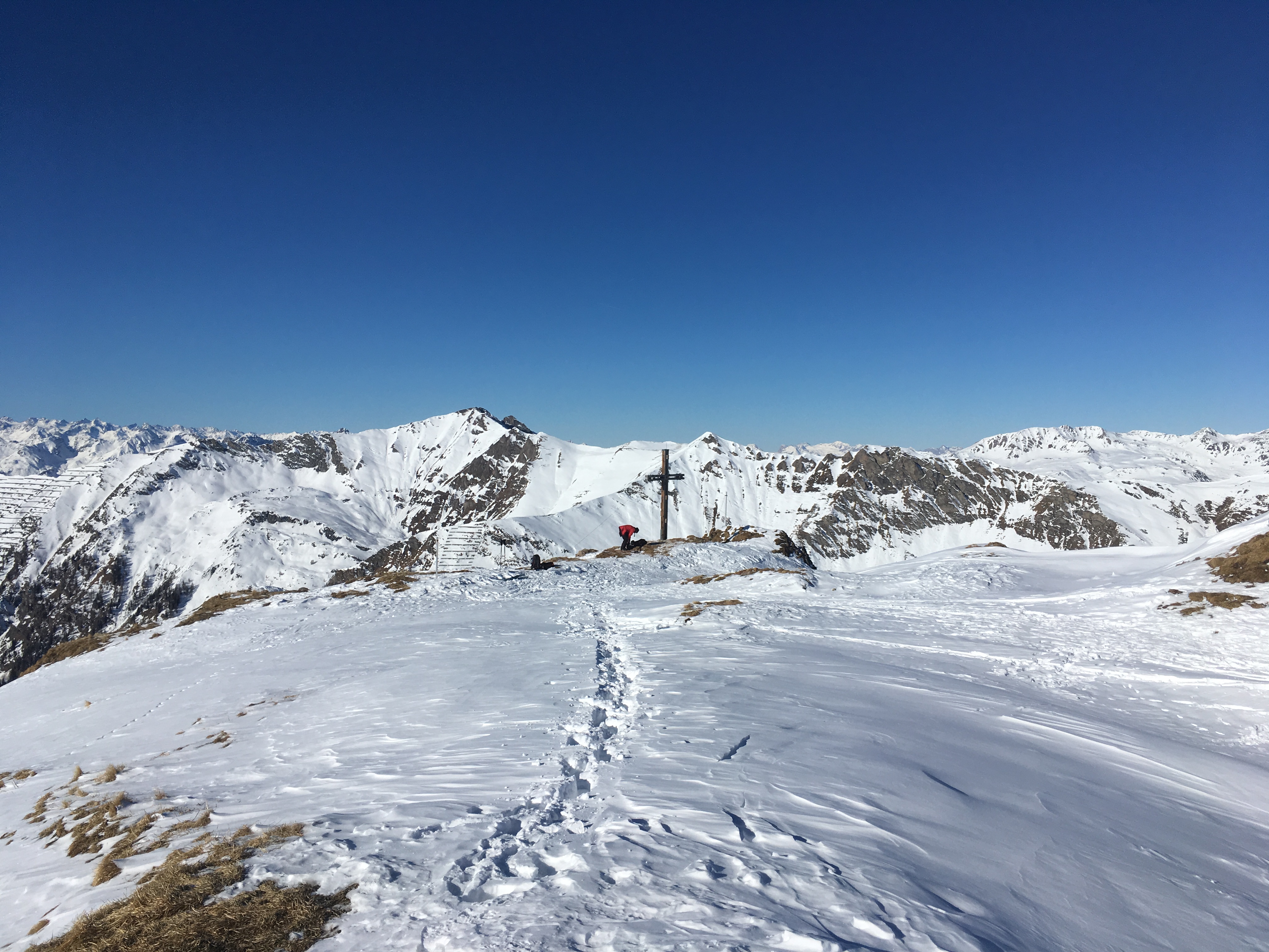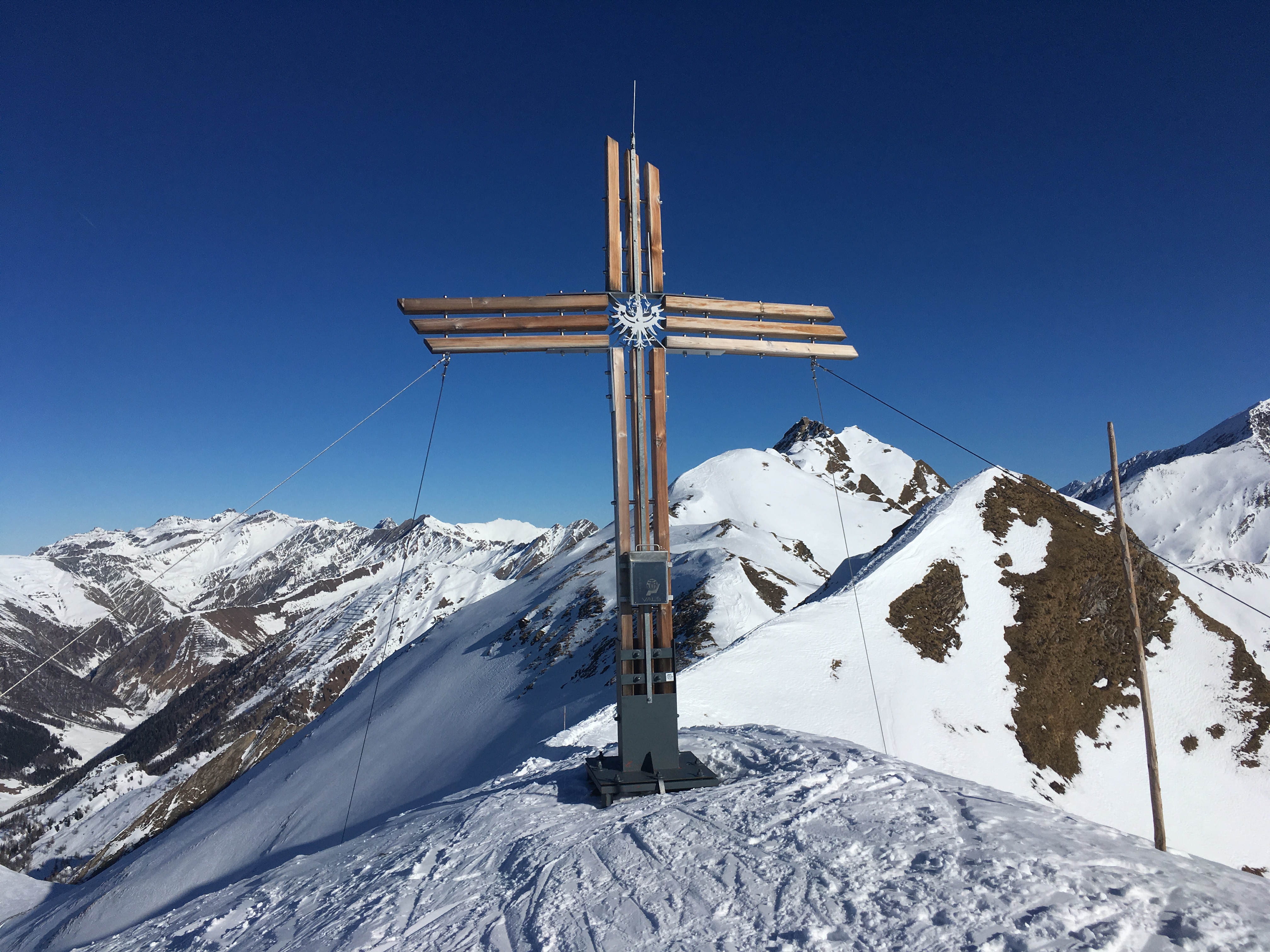 Gipfelkreuz Ottenspitze mit den weiteren Skizielen im Hintergrund: