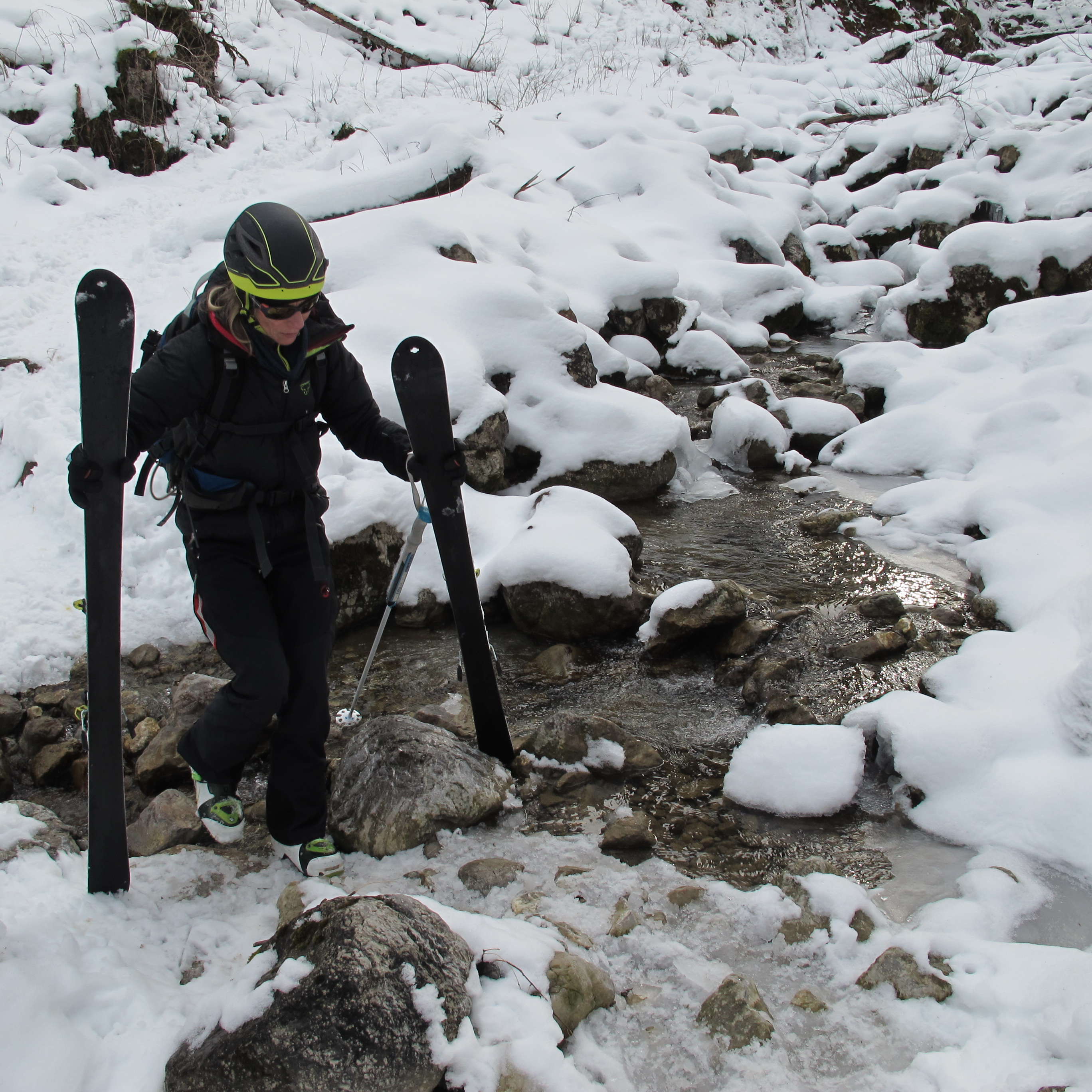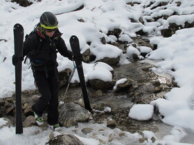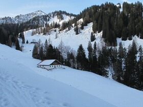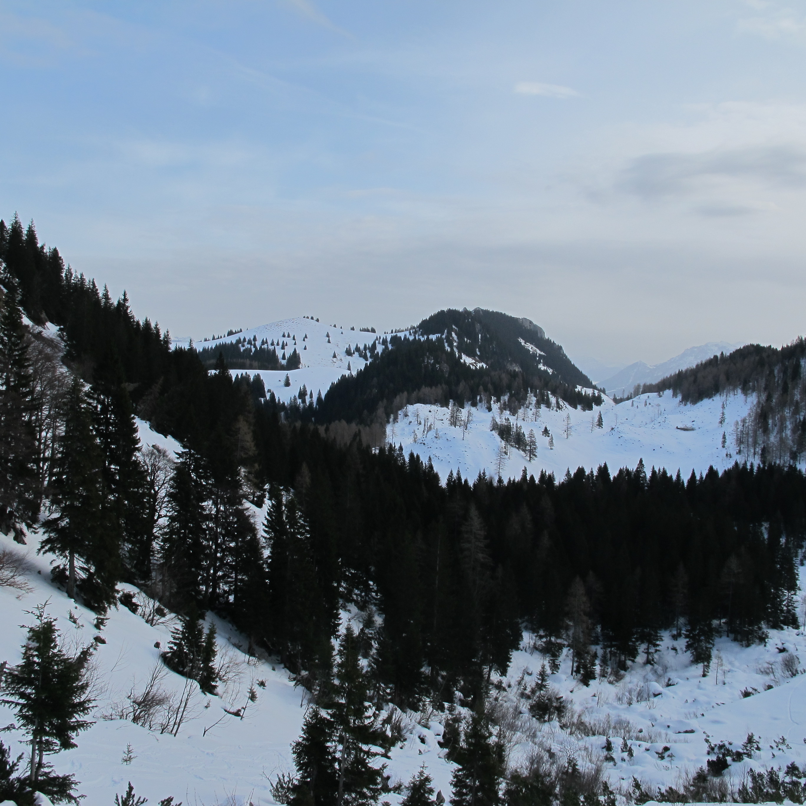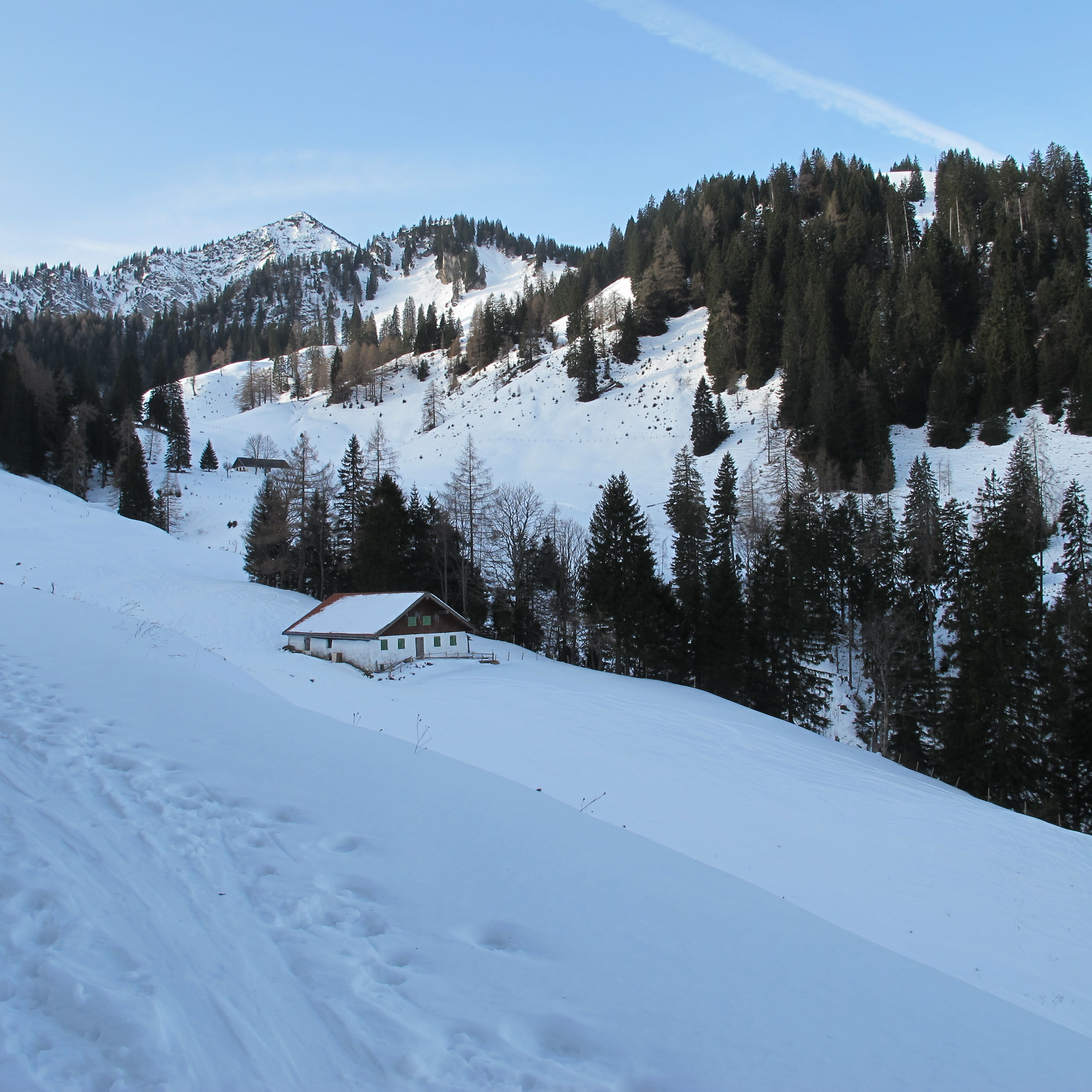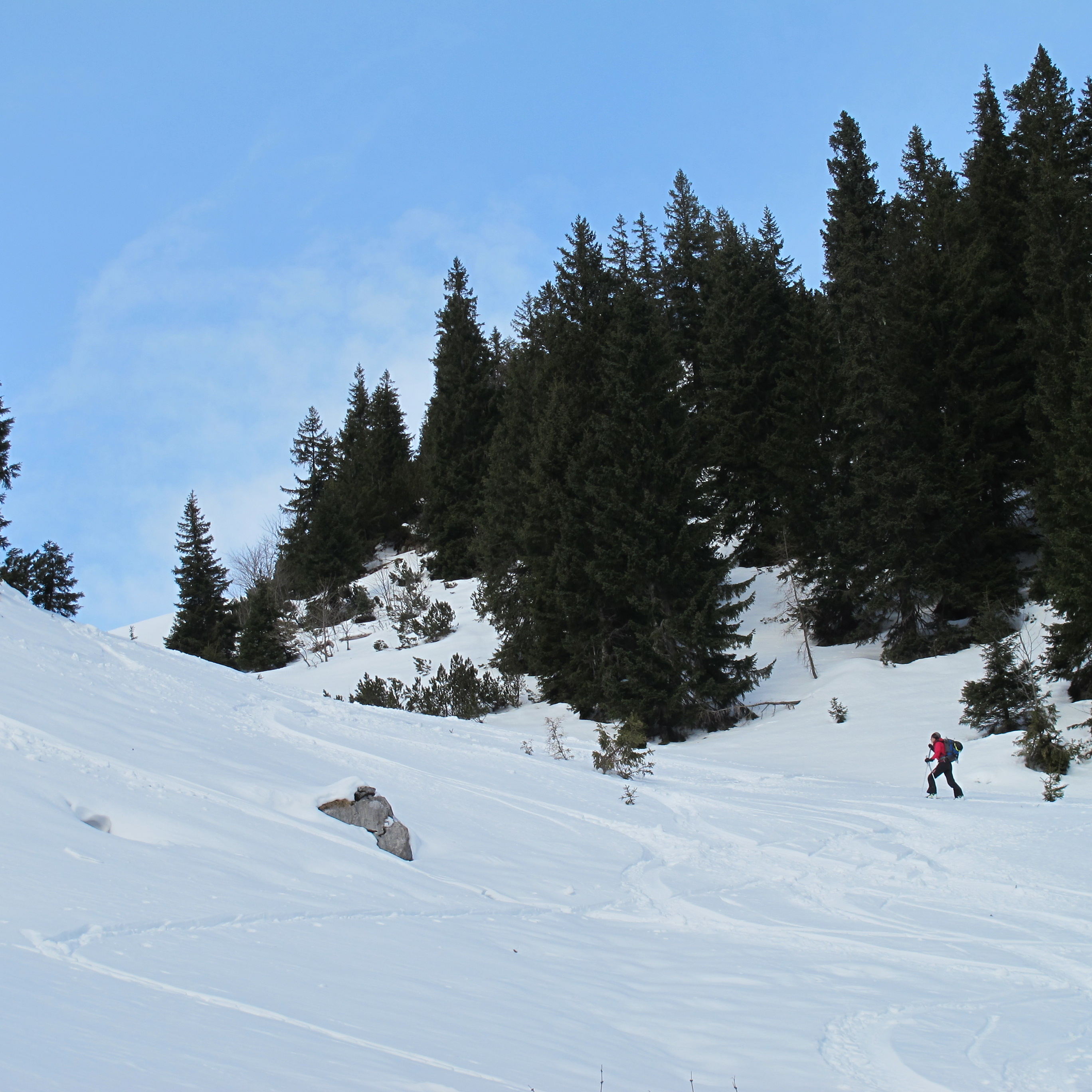 Abfahrt Nordseitig, mit kurzem Gegenanstieg wieder zur Aufstiegsspur und über Seonalm und Baumoosalm zurück zum PP.