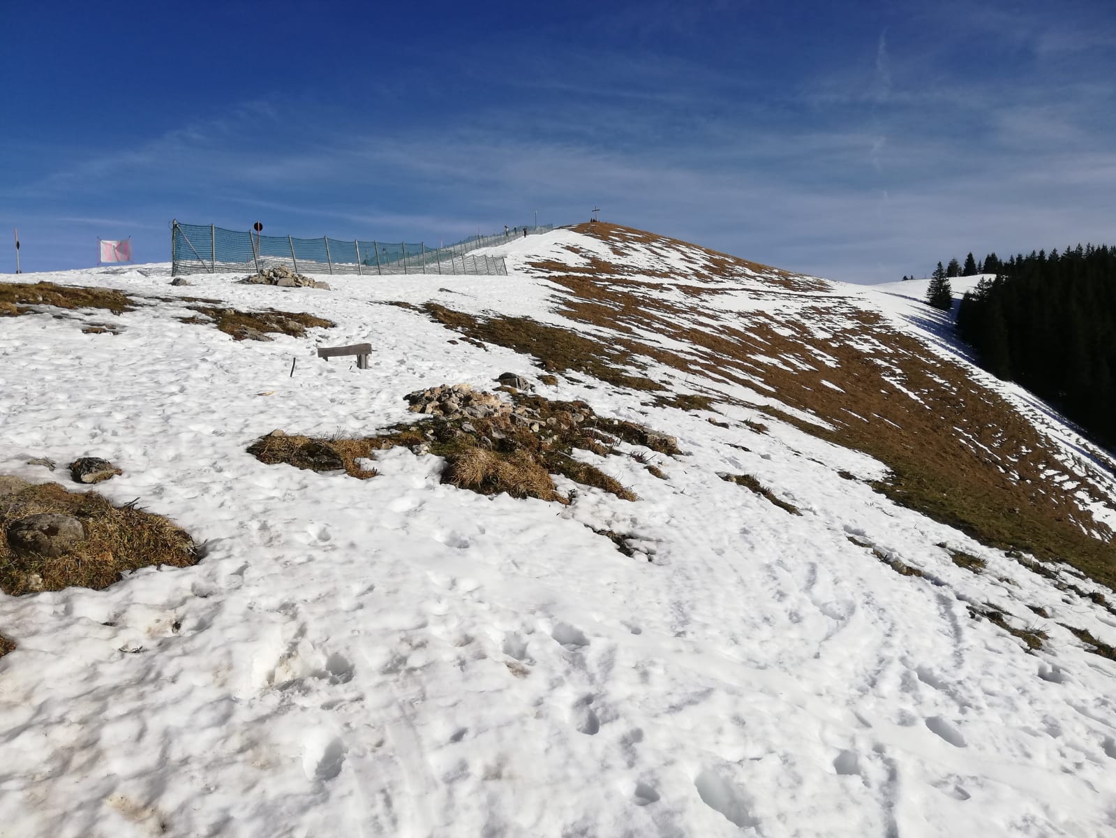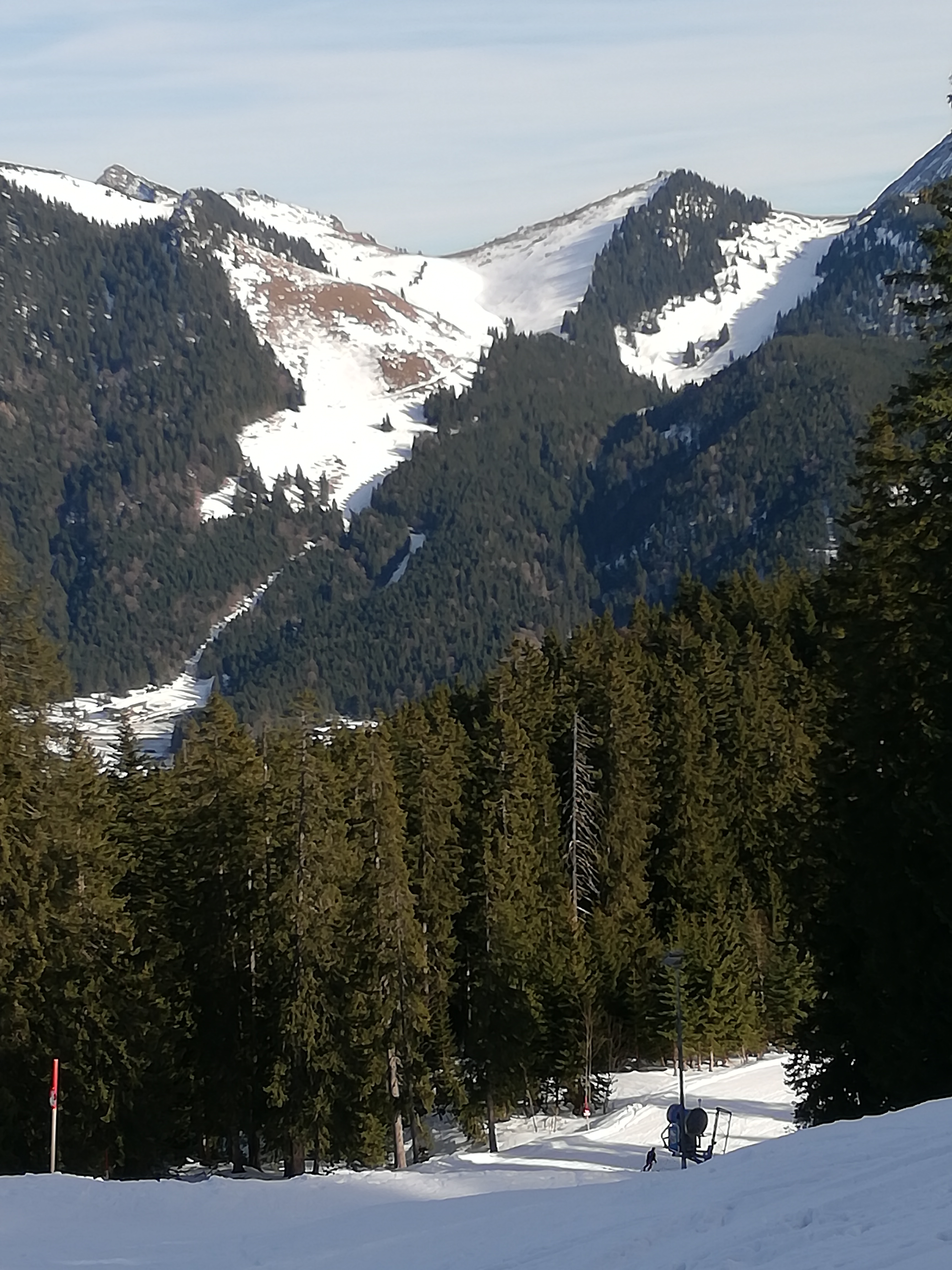 Tourenverhältnisse:Frühlingshaft. Vom P auf Forststraße und entlang der Piste zur Unteren Suttenalm und dann in der Lifttrasse hoch. Hier geht man zwar allein, hat aber halt die Bahn über sich. Geht aber ordentlich, nur die letzten 20-30Hm im Wald sind etwas hakelig. Zum Schluß über die Piste zum Gipfel. Abfahrt auf der Piste gut, sulzig. Abseits absolut nicht zu empfehlen.