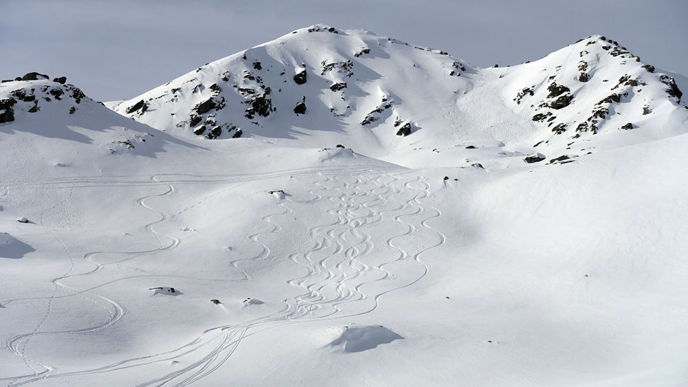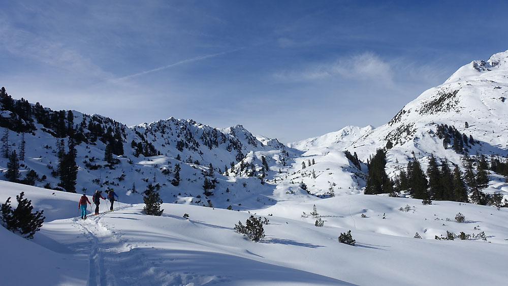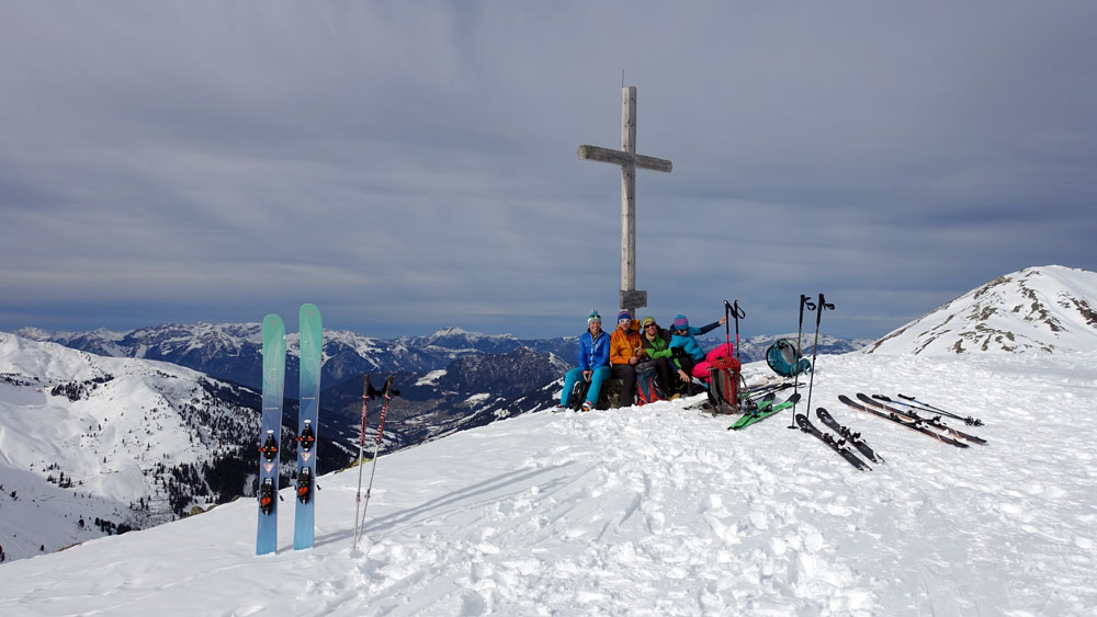 Tourenverhältnisse: vormittags noch Pulver, im Tagesverlauf zunehmend durchfeuchtet